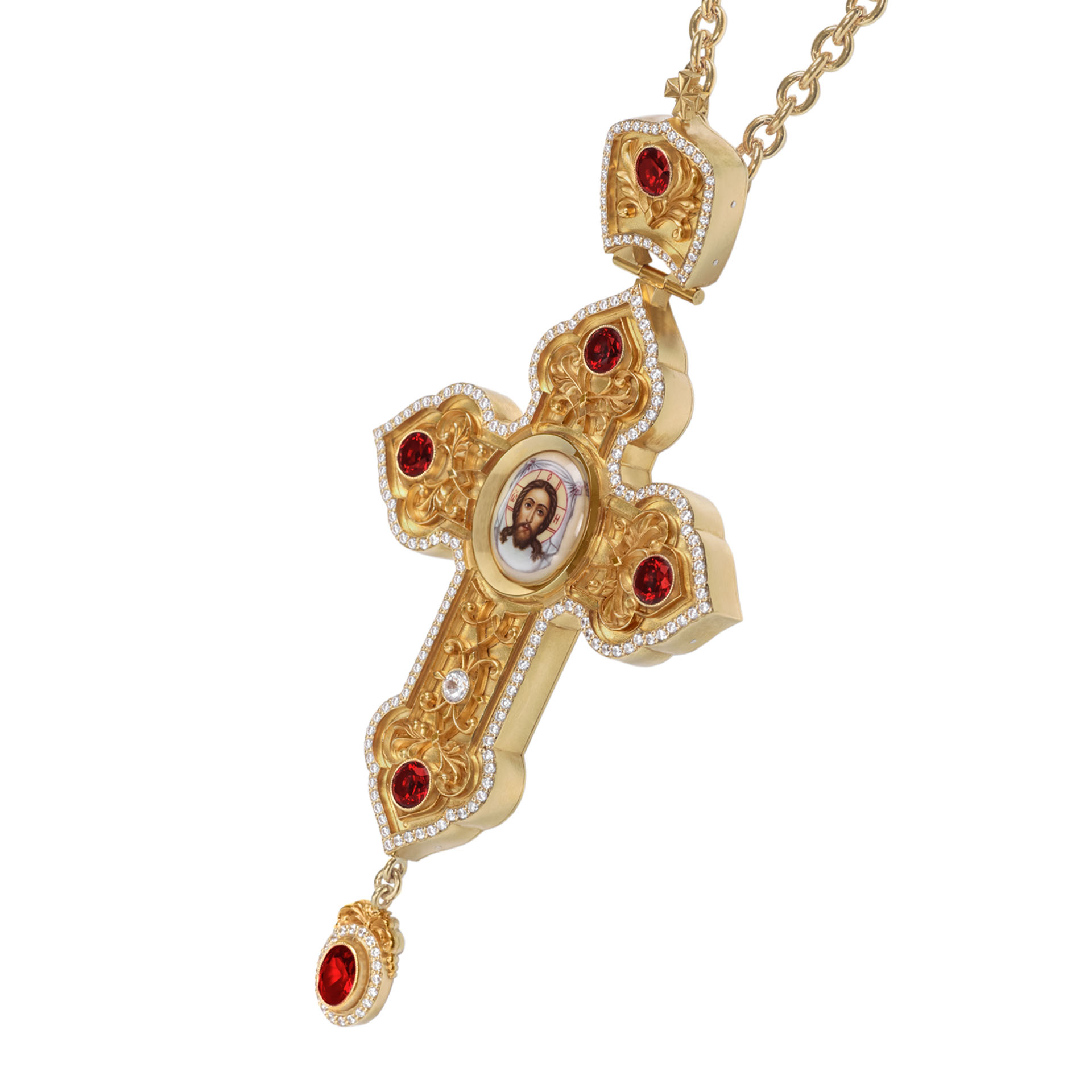 Крест архиерейский №1524 / Фианиты / золочение / серебро финифть (УИН)