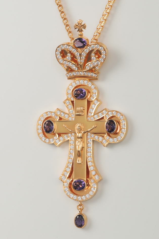 Крест наперсный №1535 литьевое распятие / золочение / серебро (УИН)