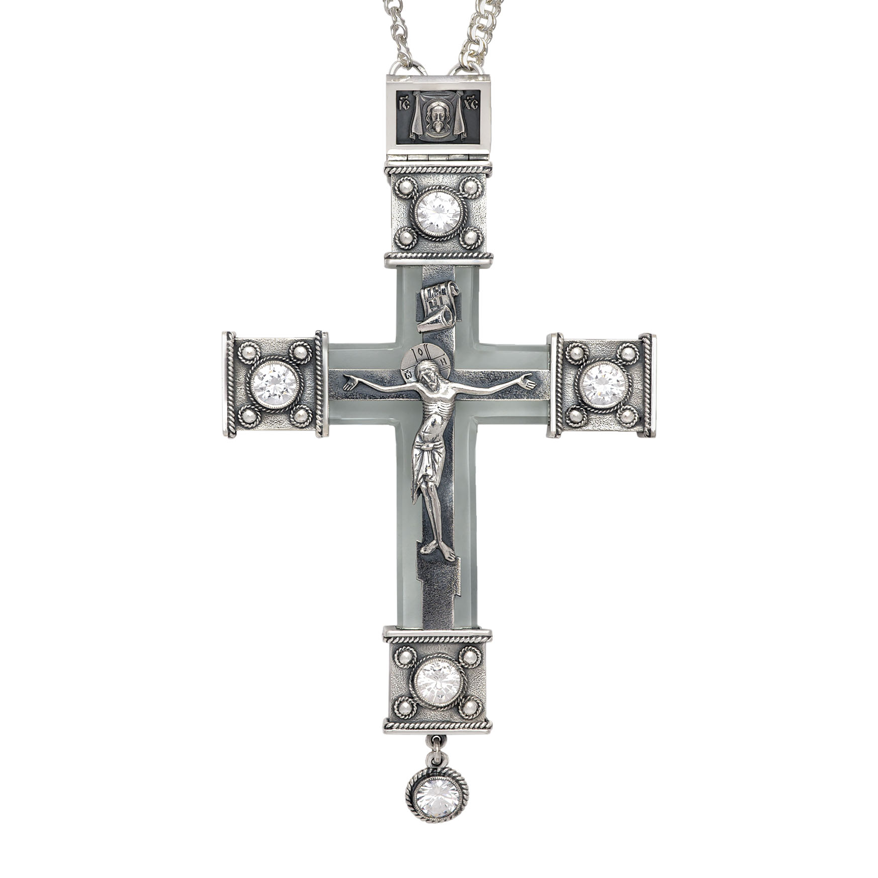Крест архиерейский №1542 / Фианиты литьевое распятие серебро (УИН)
