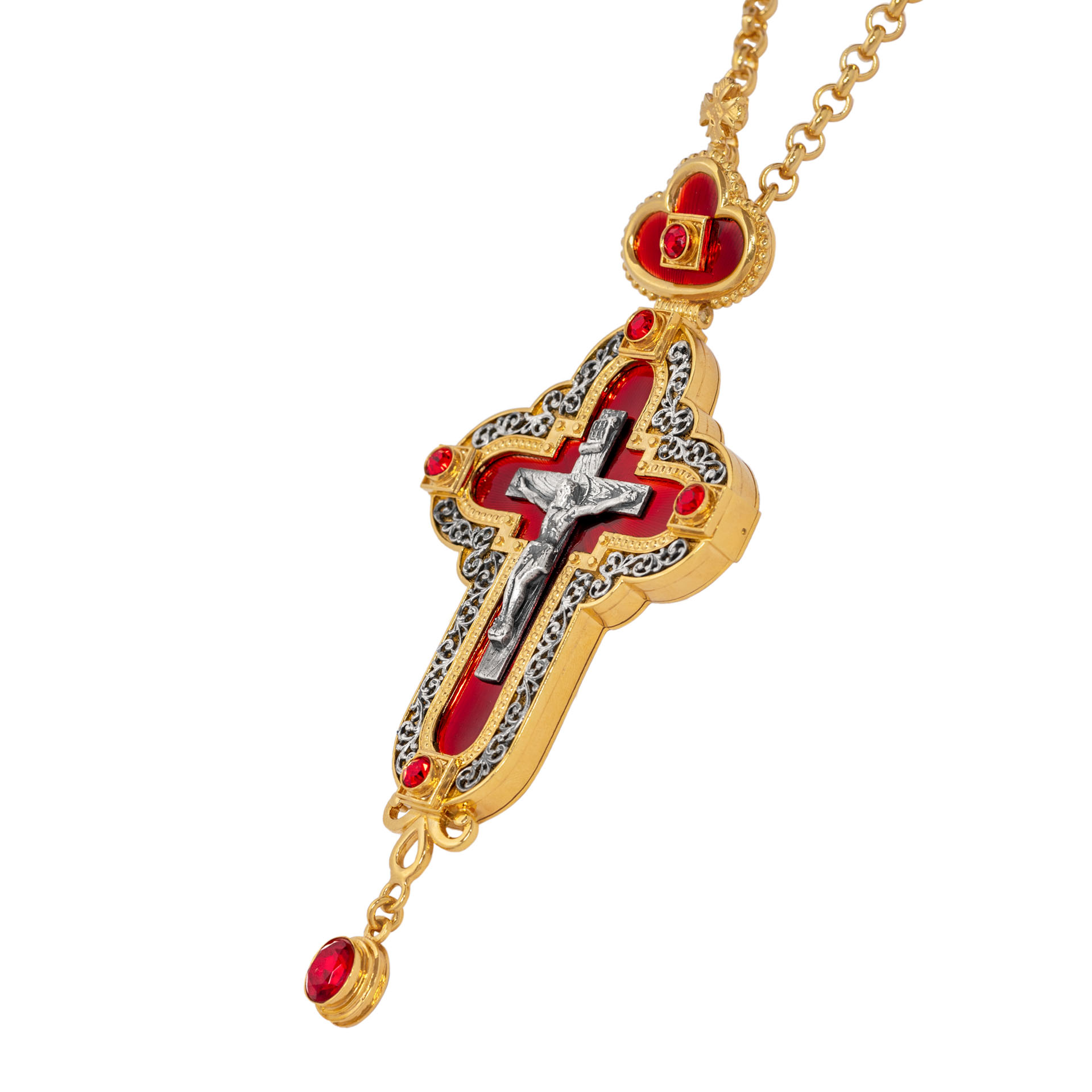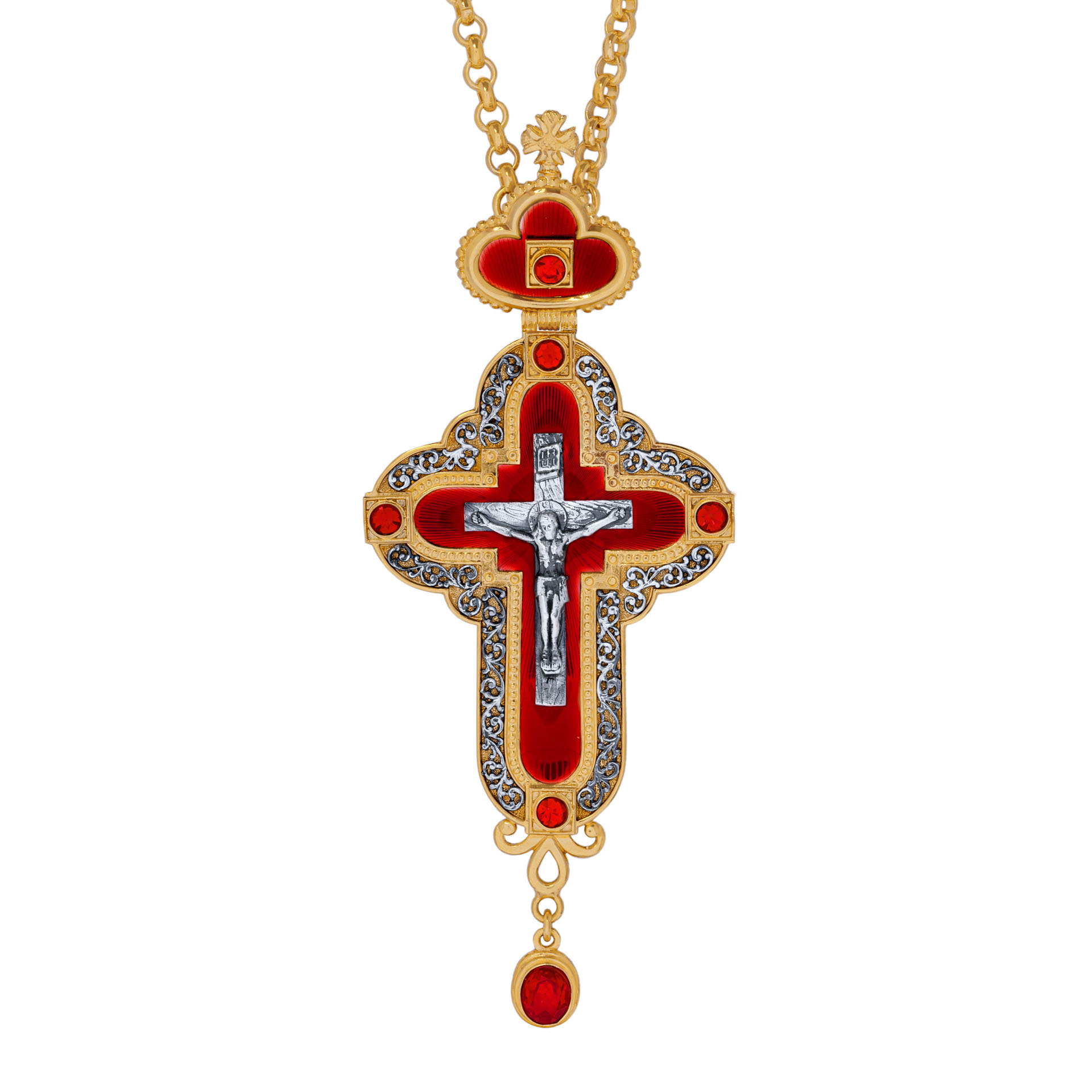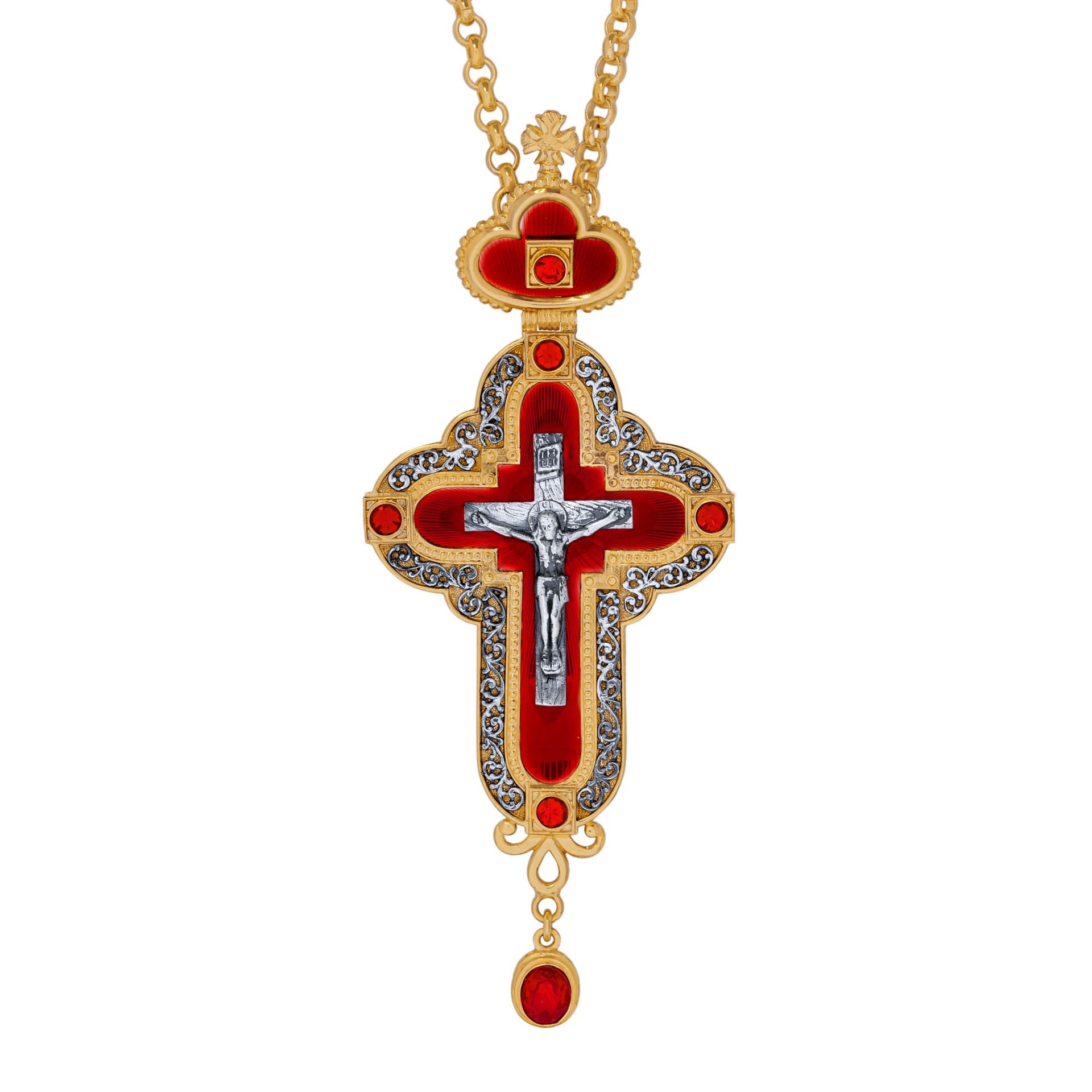 Крест наперсный №155 гильяш, эмаль / золочение, серебрение
