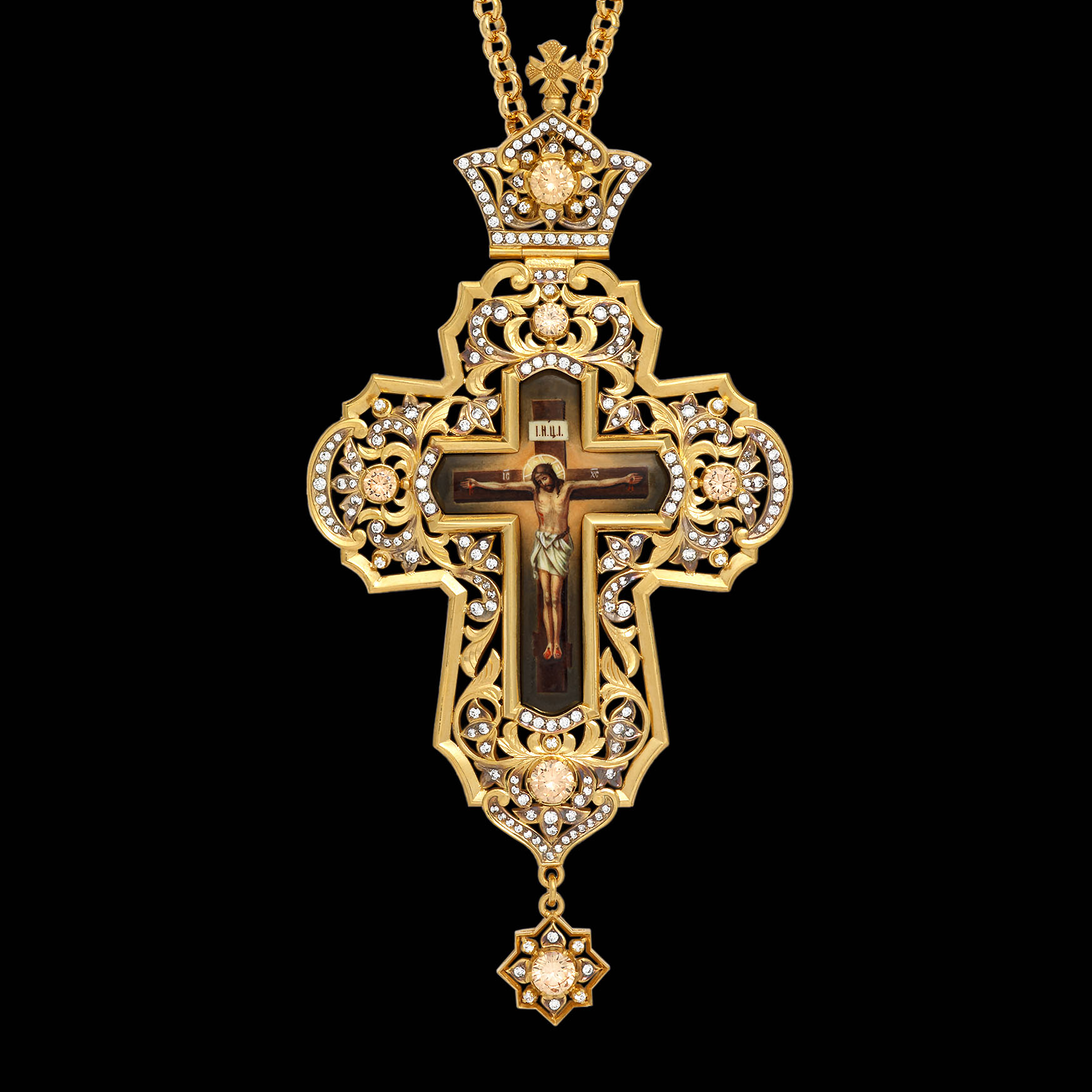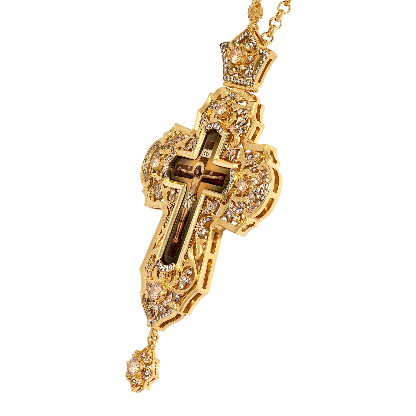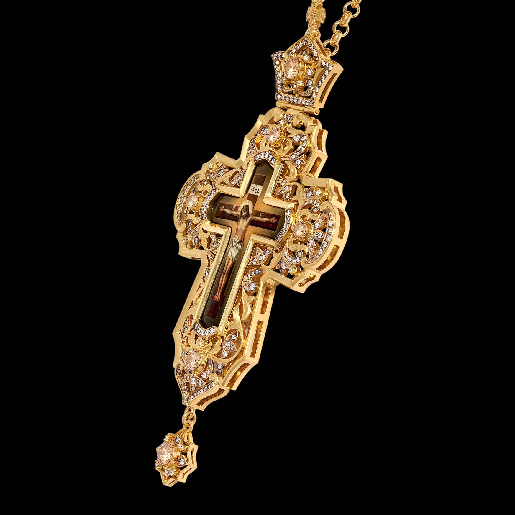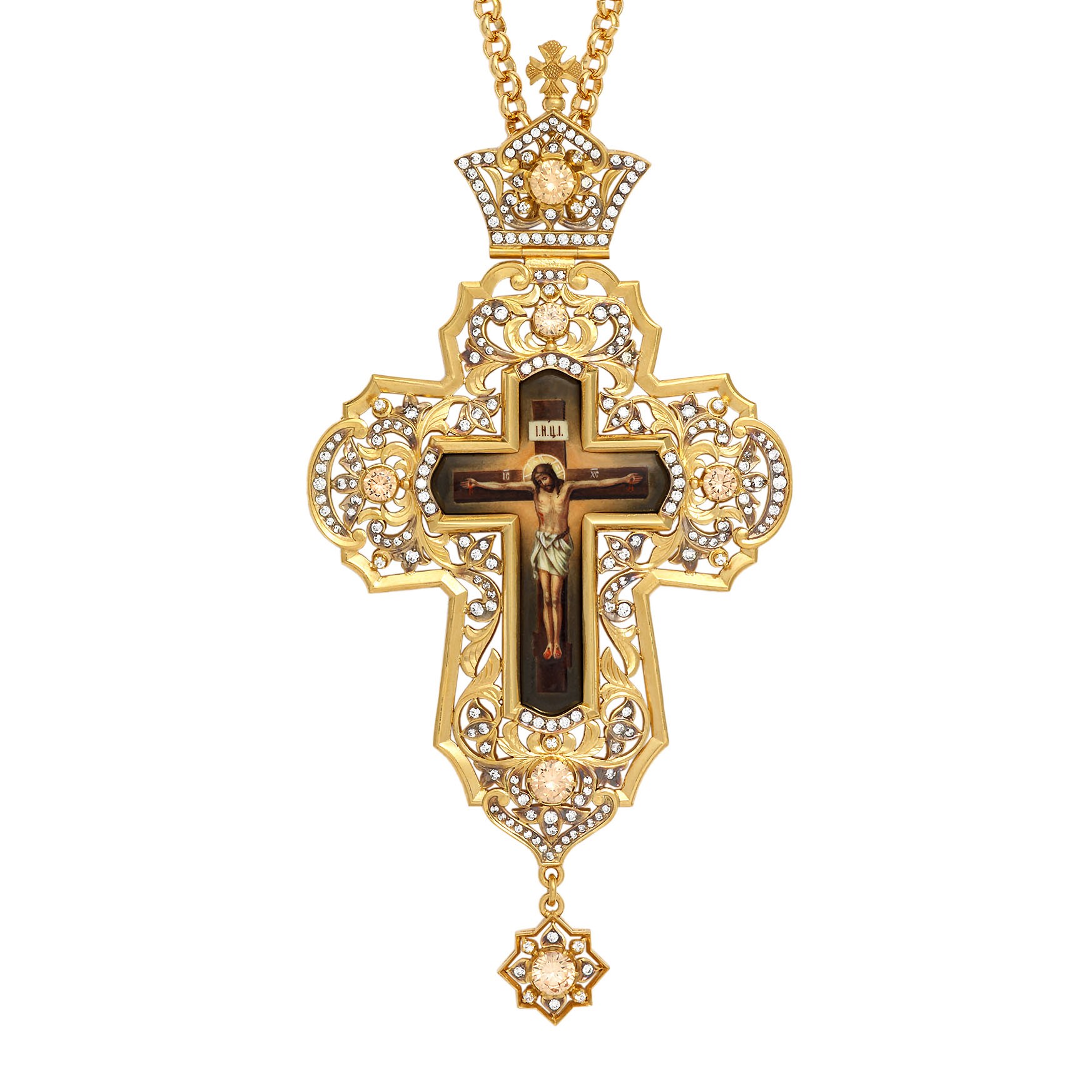 Крест наперсный №1559 / Фианиты деколь / золочение / серебро (УИН)