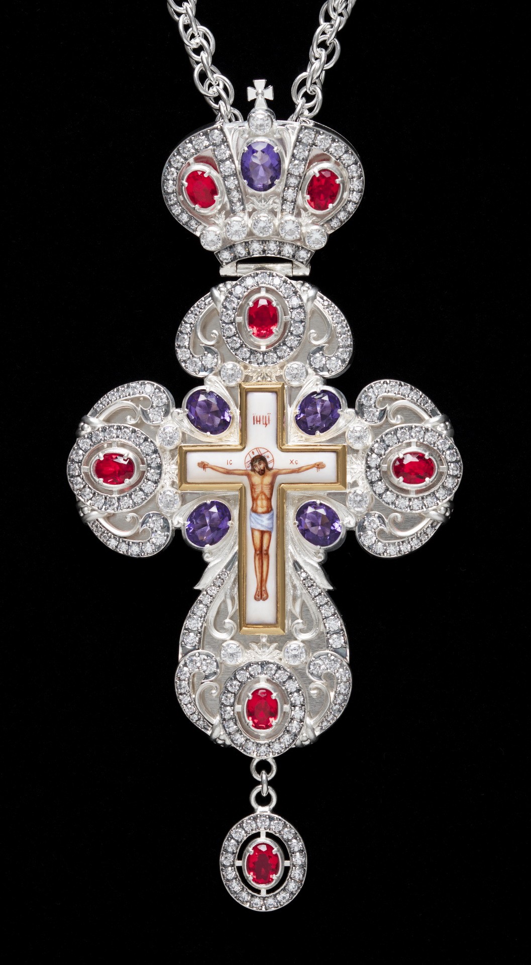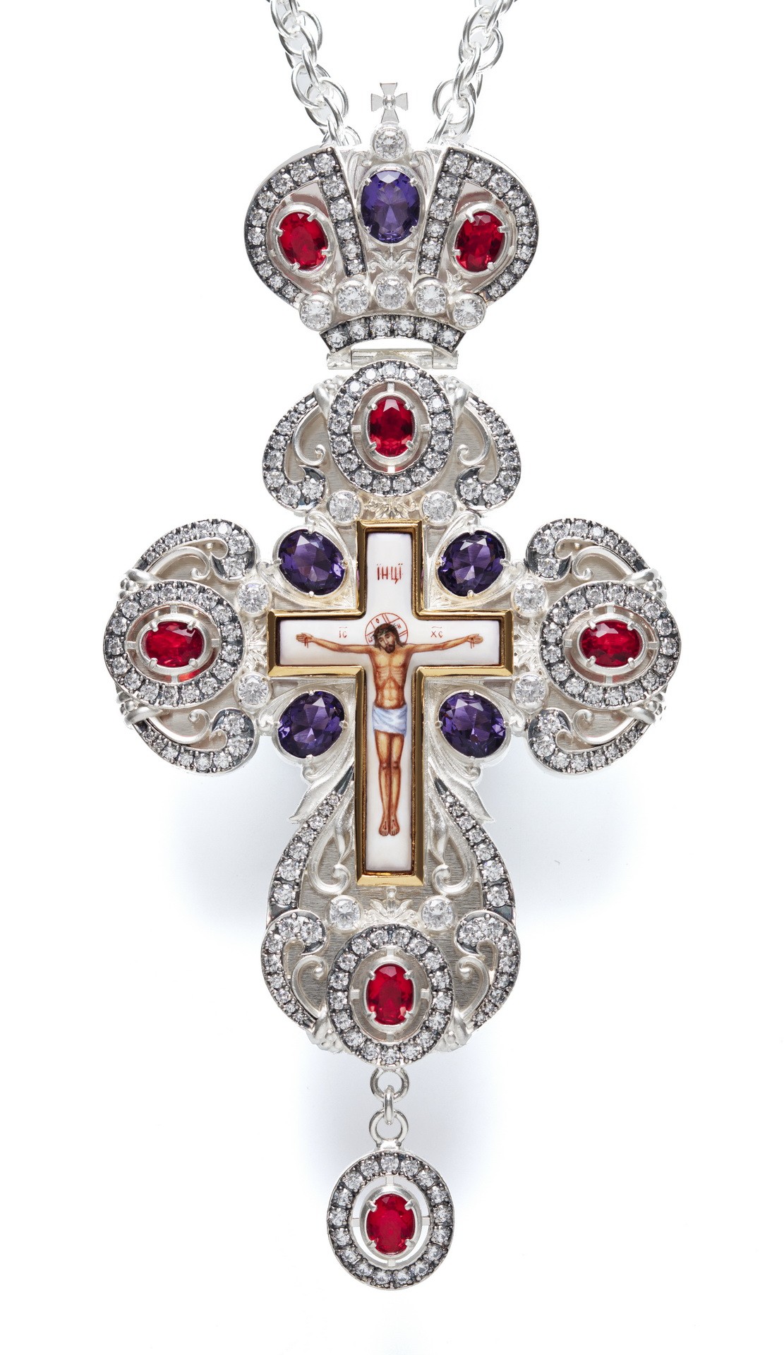 Крест наперсный №158 / Фианиты / серебрение, золочение