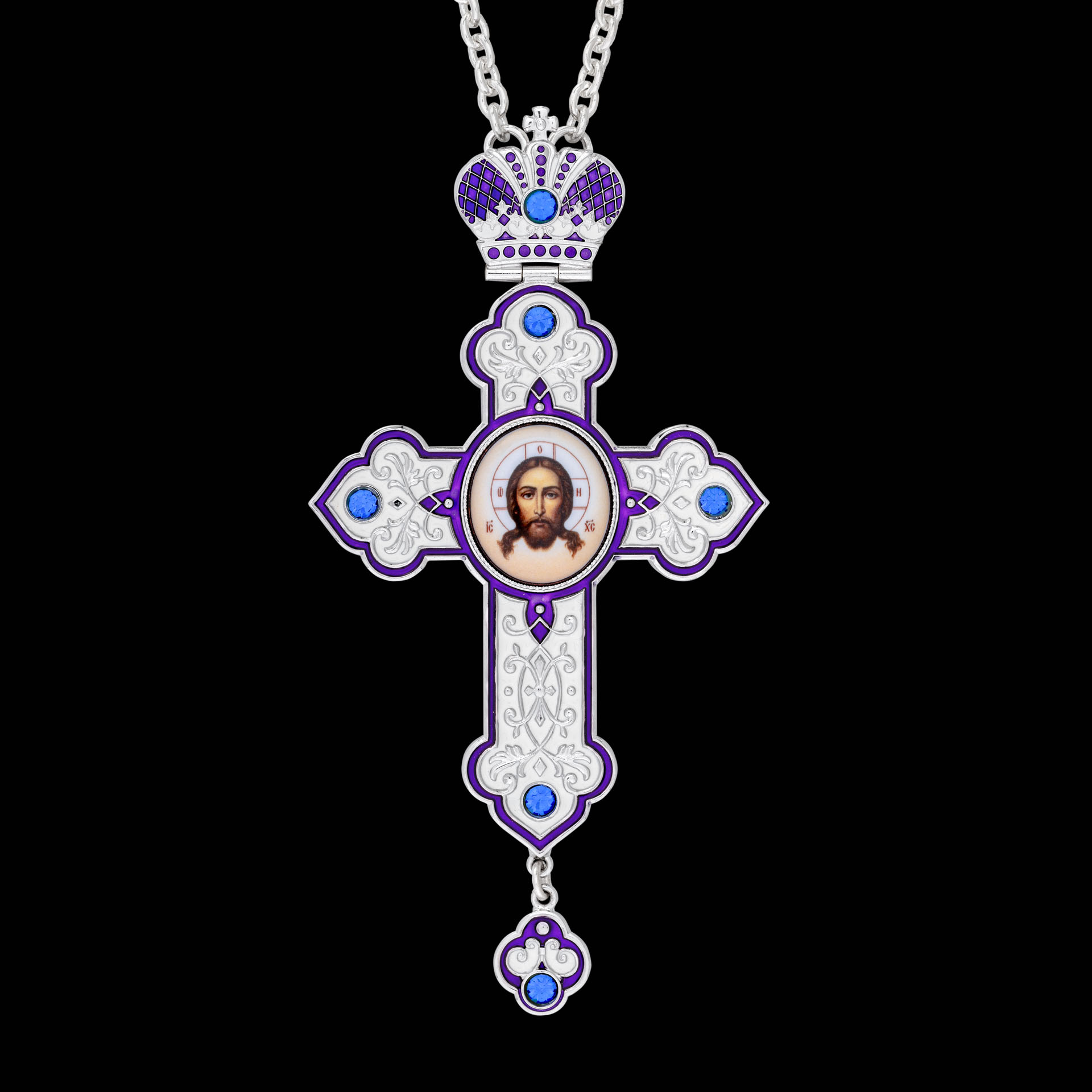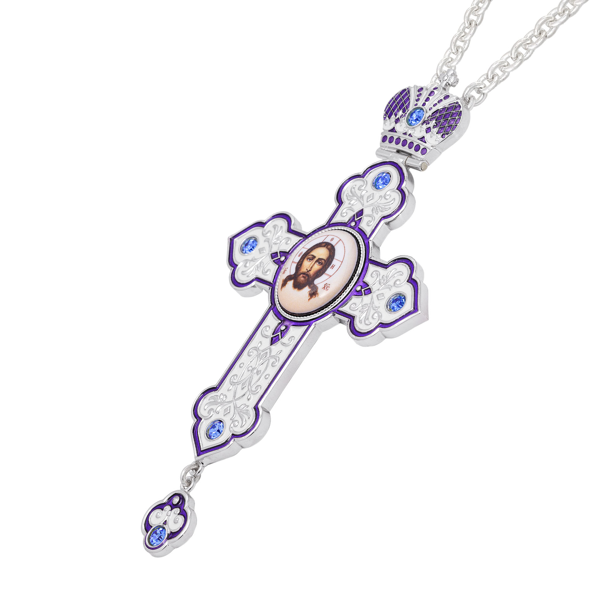 Крест архиерейский №187 штампованный, эмаль, деколь / серебрение