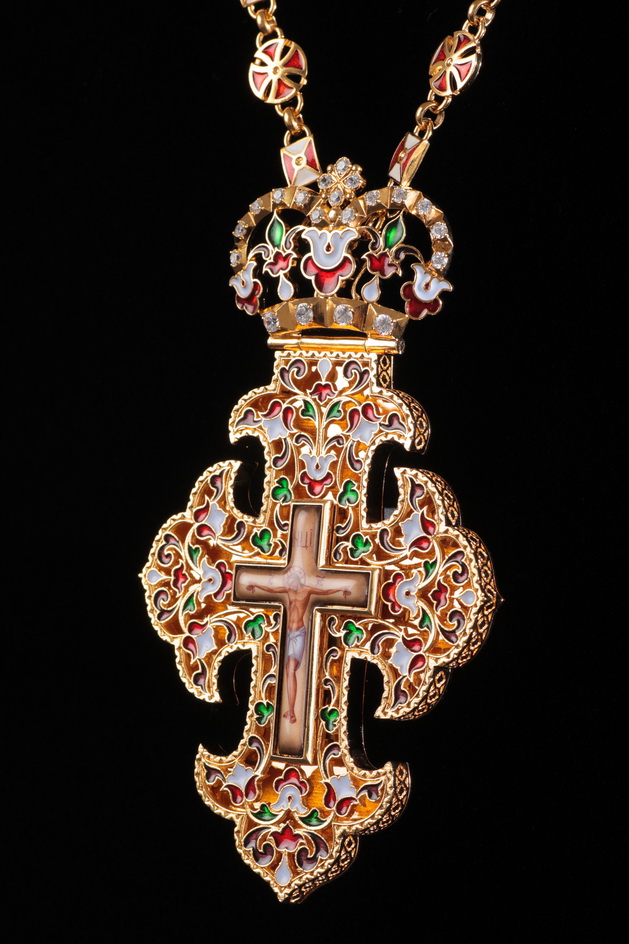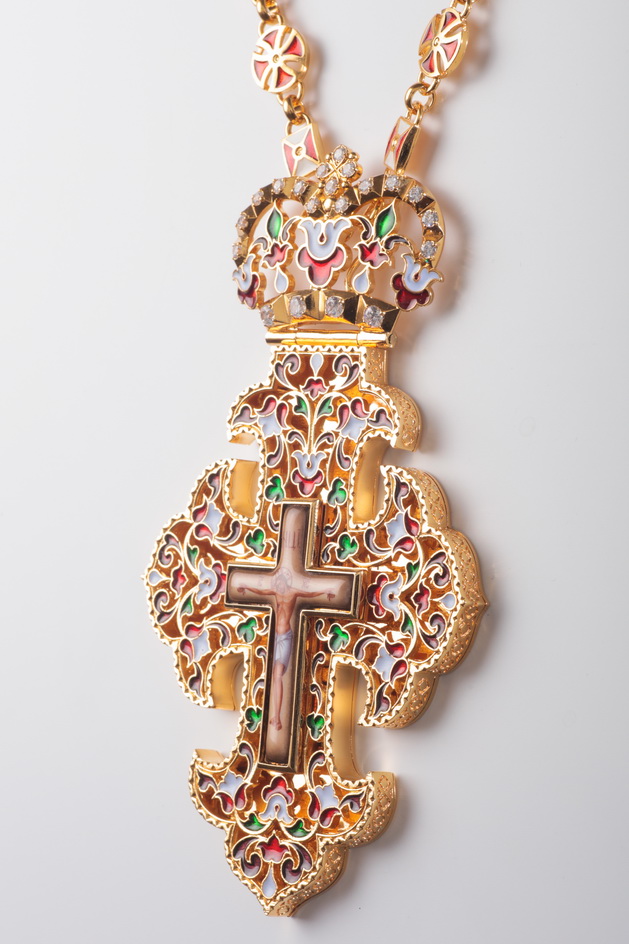 Крест архиерейский №190 / Фианиты эмаль / золочение