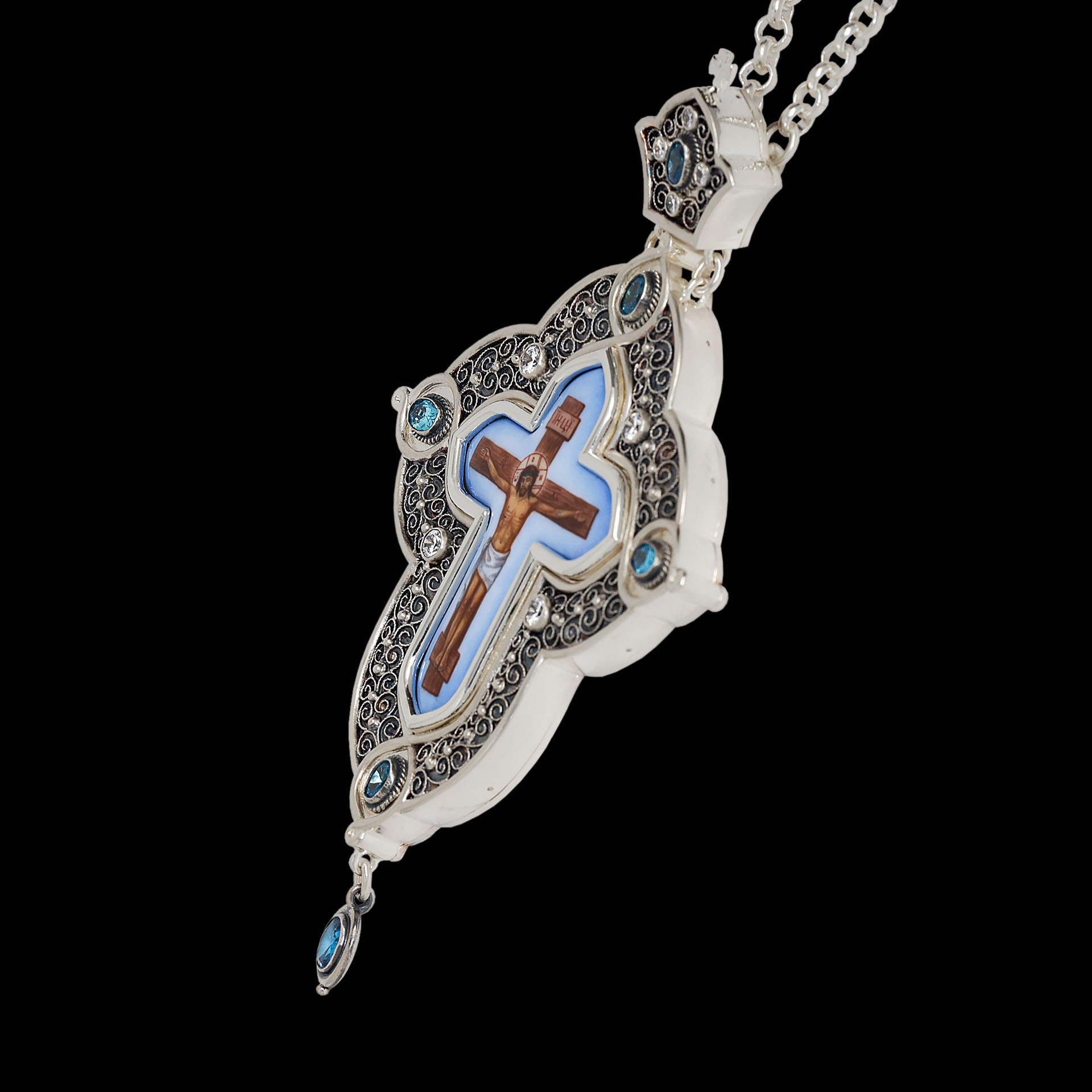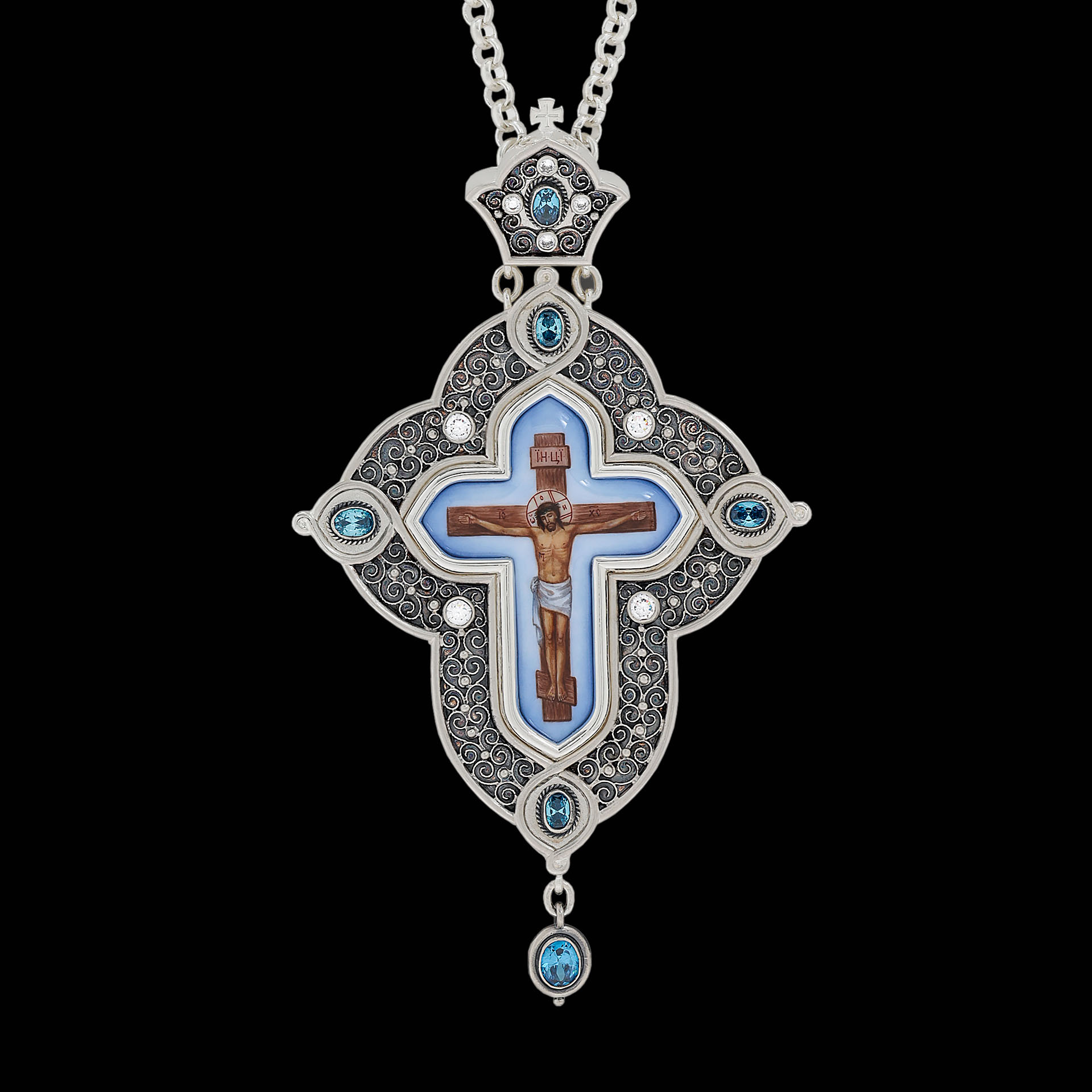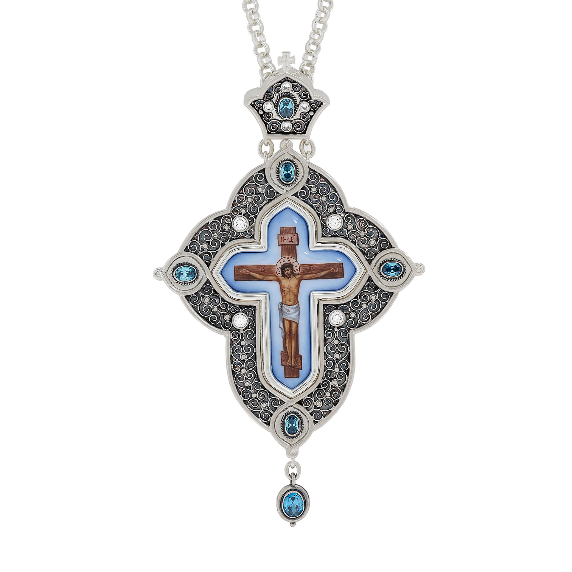 Крест архиерейский №197 / Фианиты / серебрение