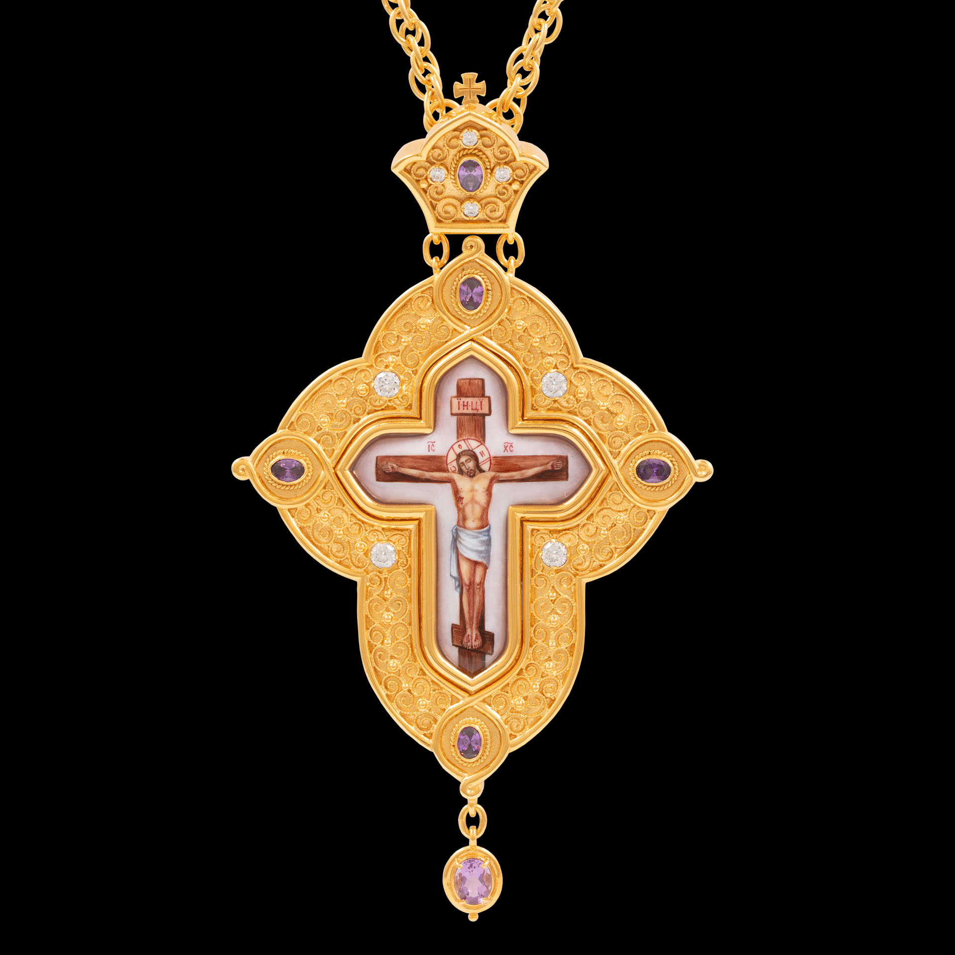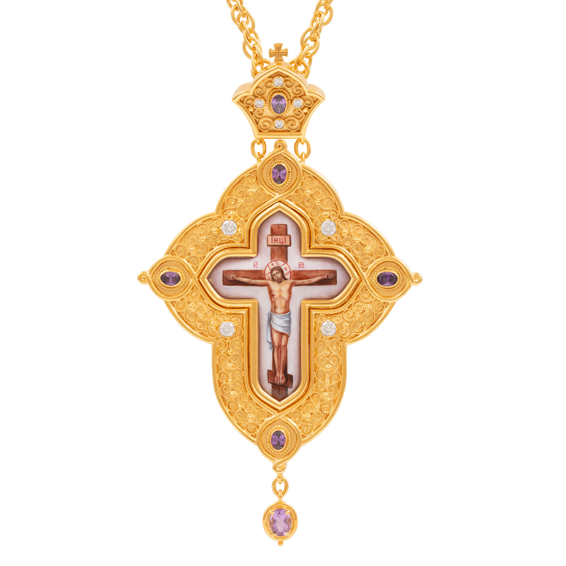 Крест наперсный №197 / Фианиты / золочение / серебро (УИН)