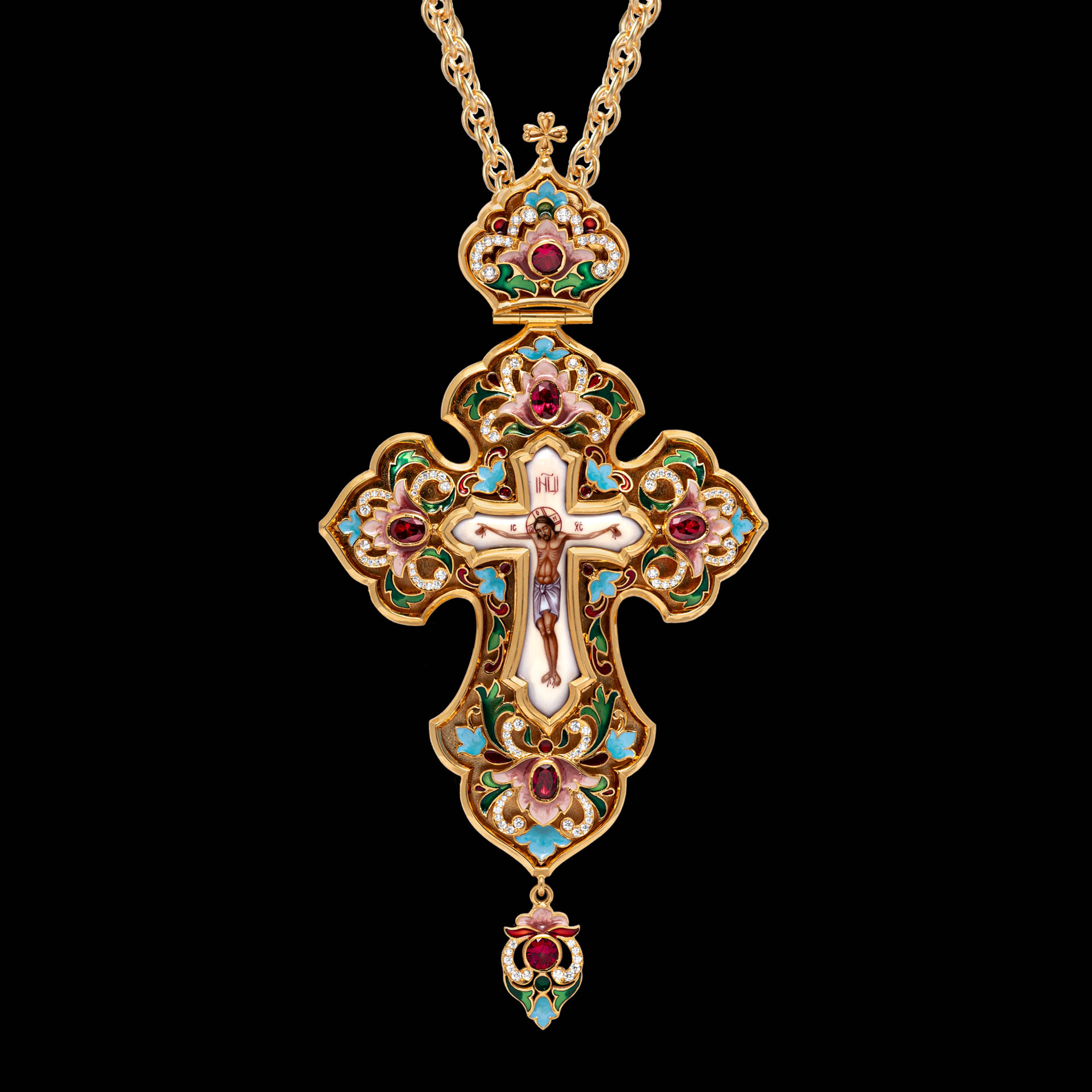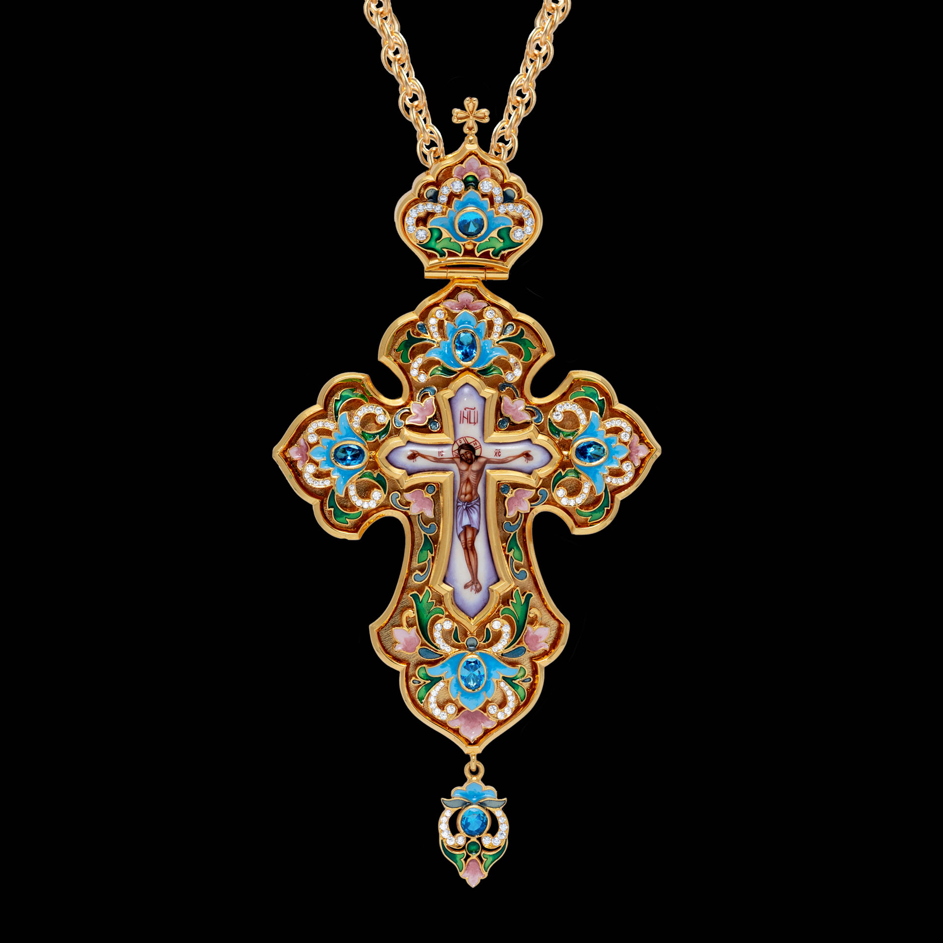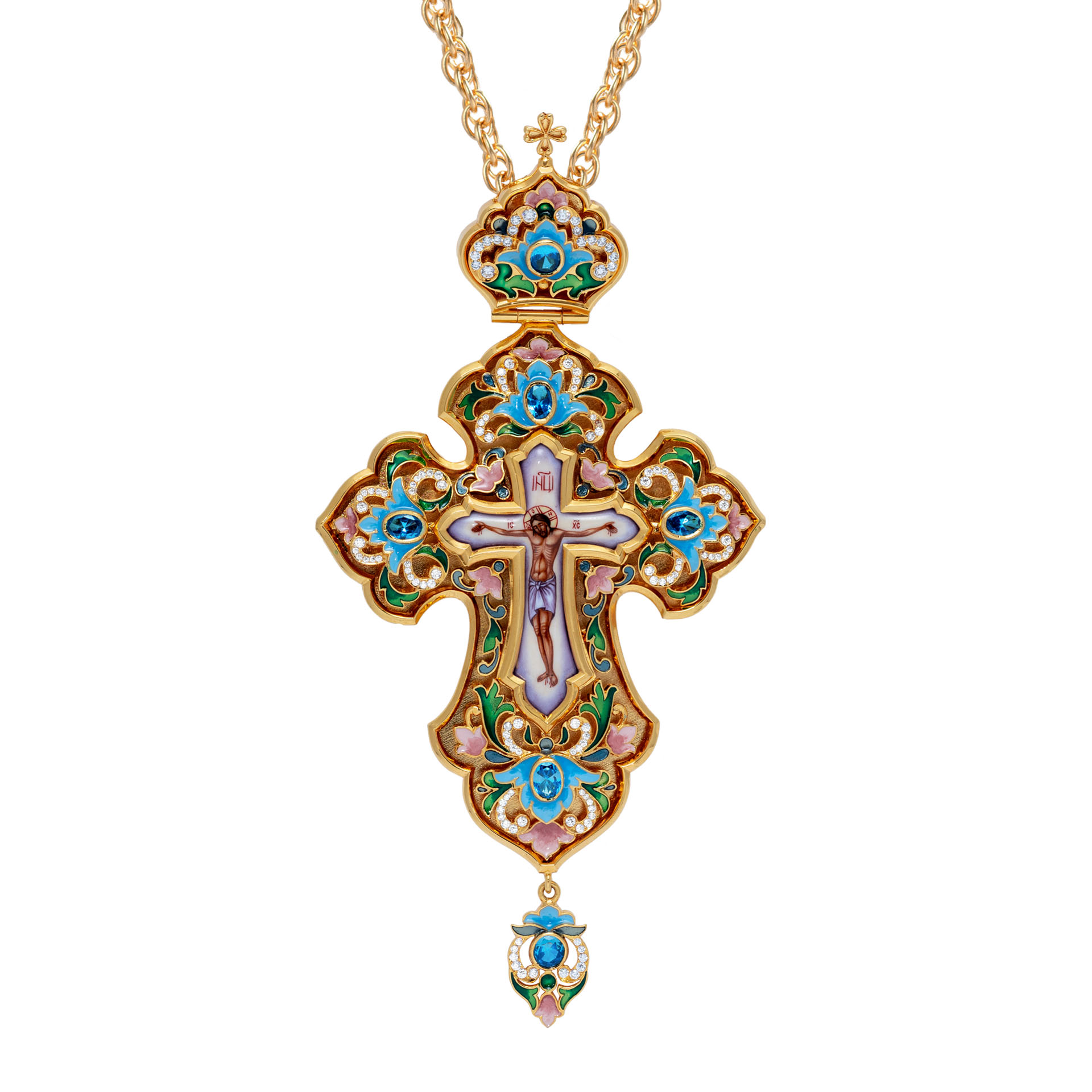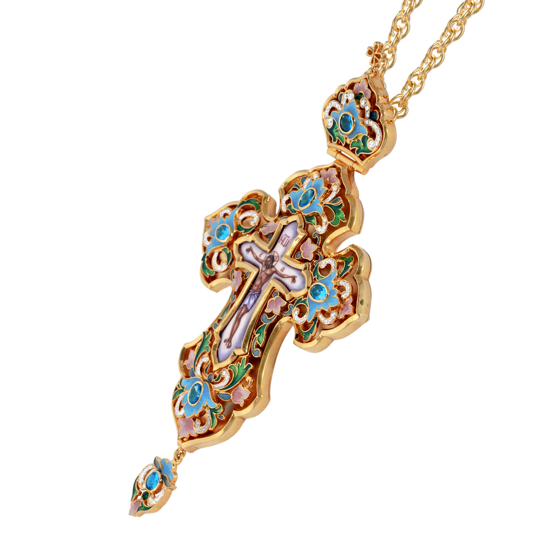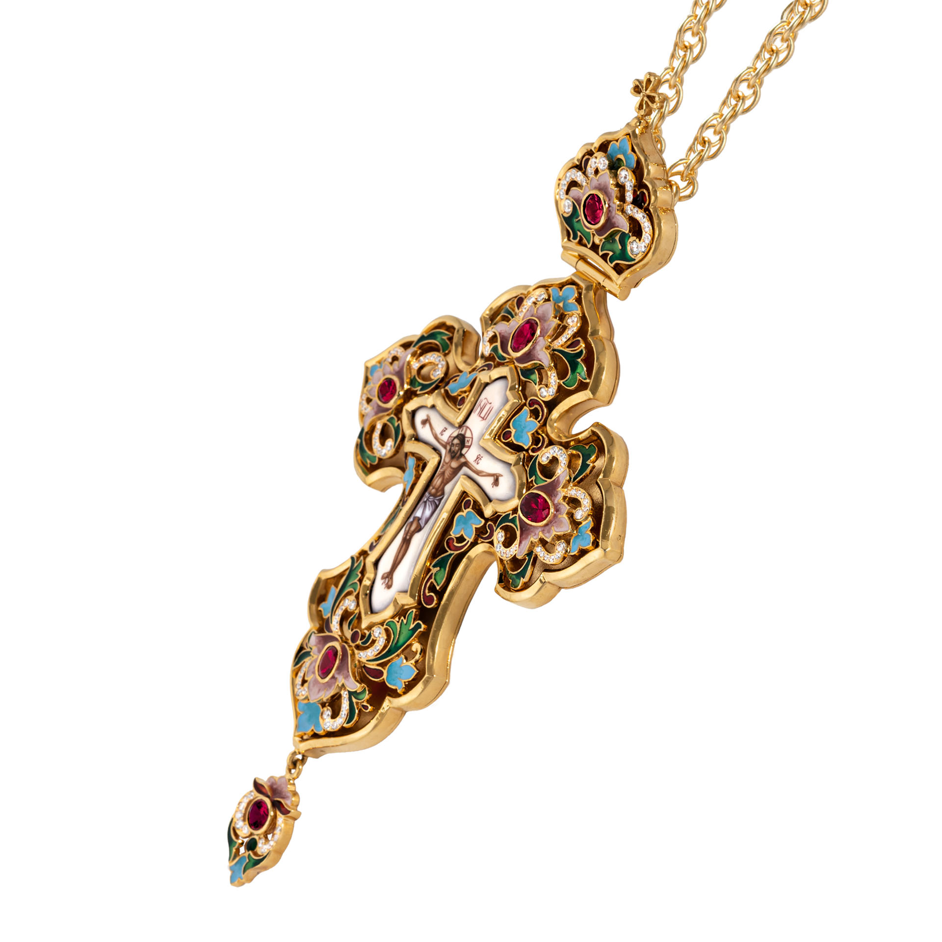 Крест наперсный №201 / Фианиты эмаль / золочение