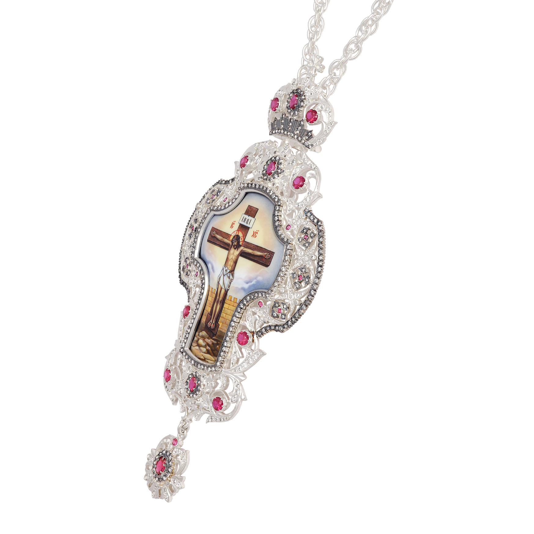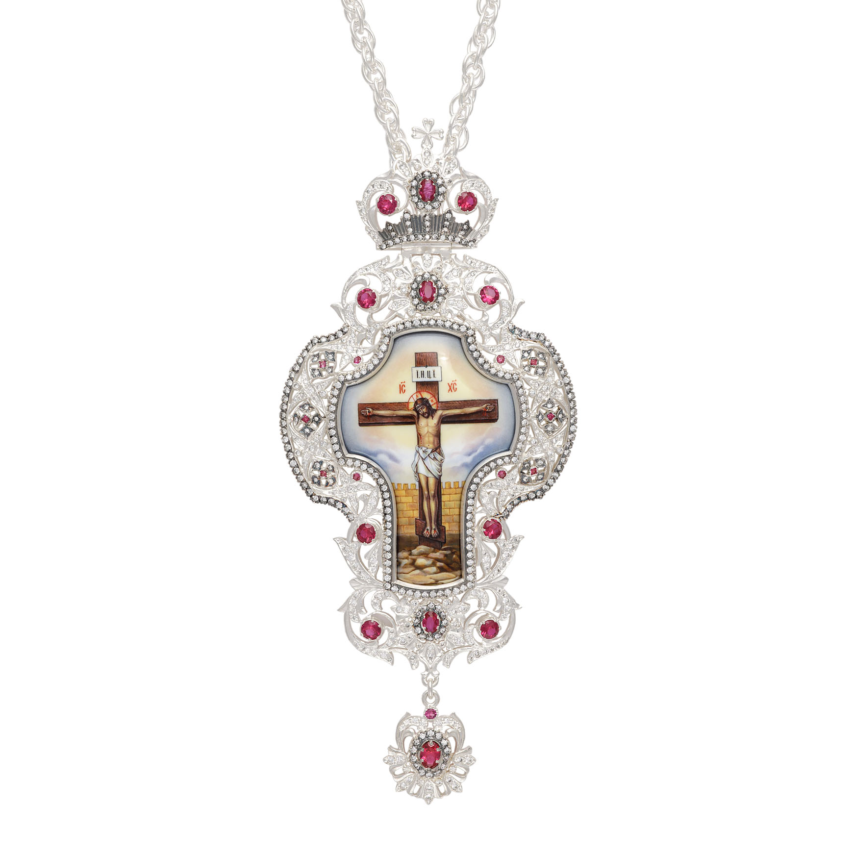 Крест архиерейский №202 / Фианиты / серебрение