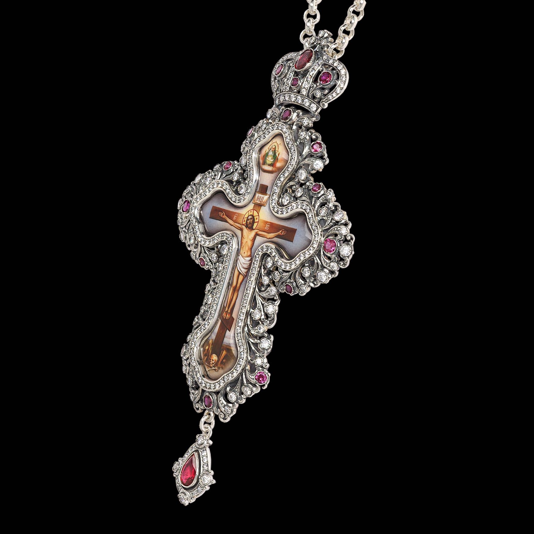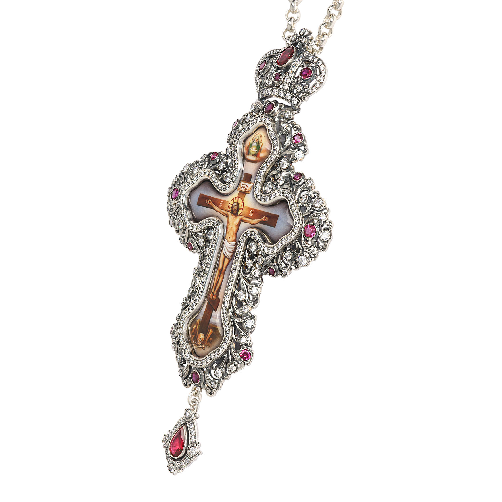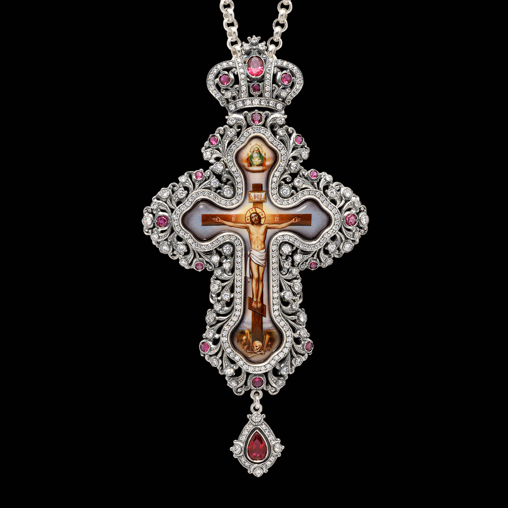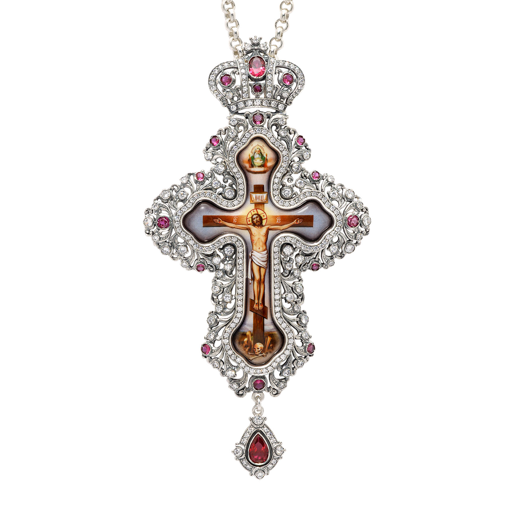 Крест наперсный №208 / Фианиты деколь серебро (УИН)