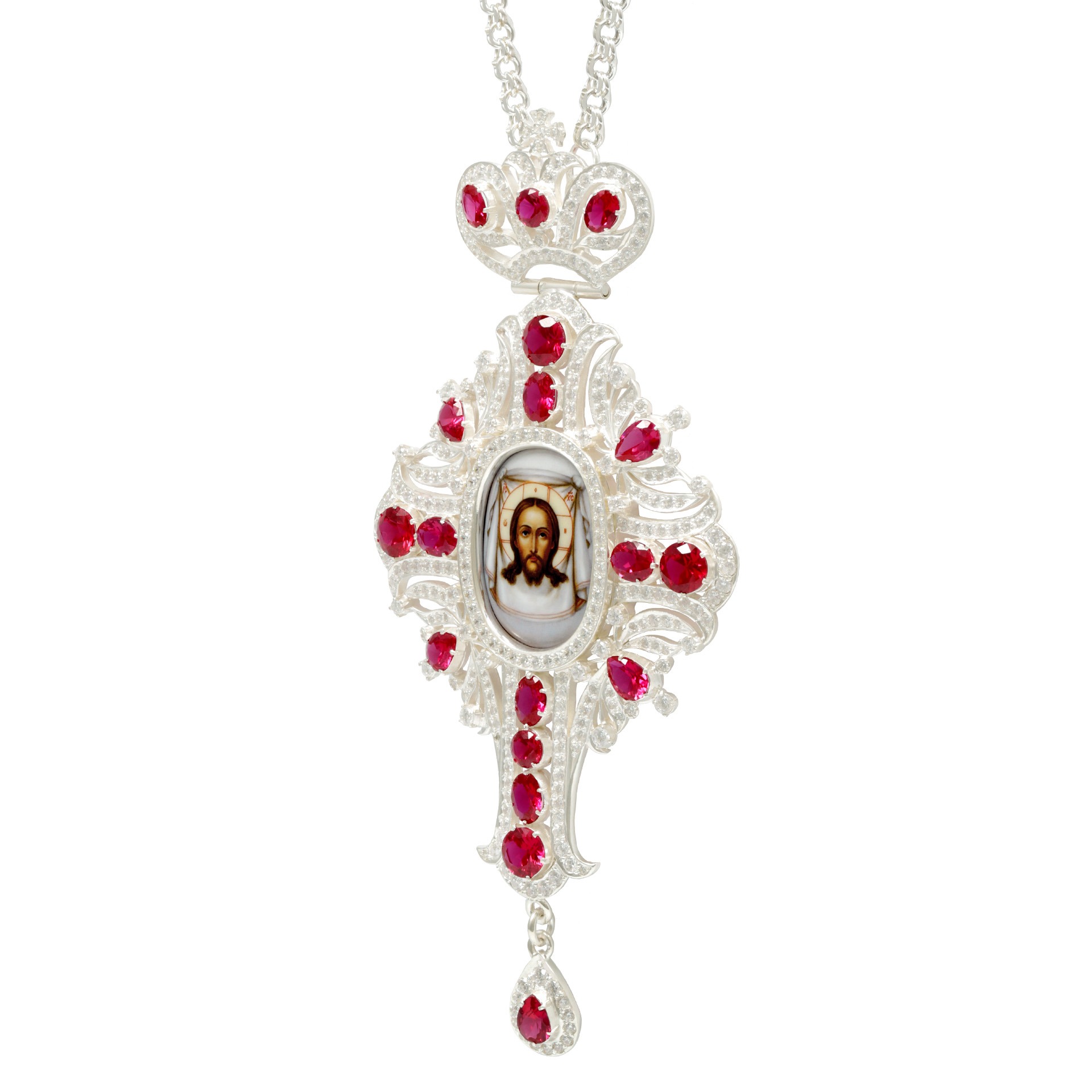 Крест наперсный №210 / Фианиты деколь серебро (УИН)