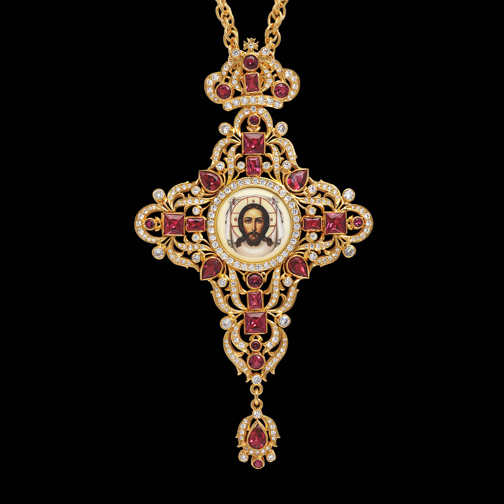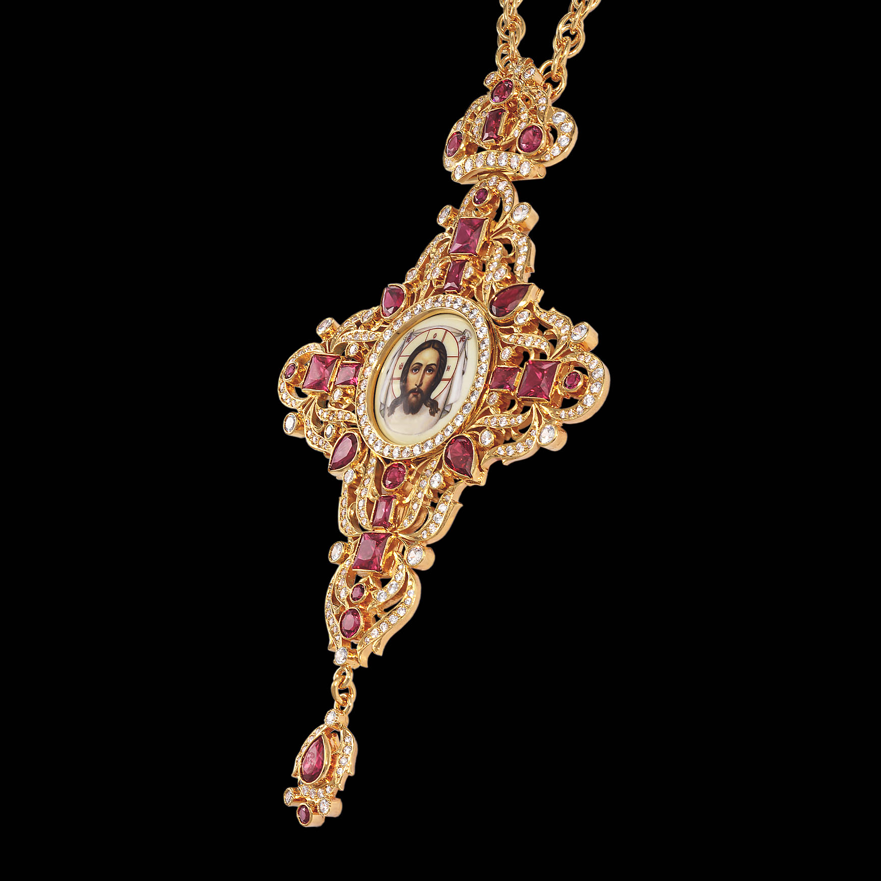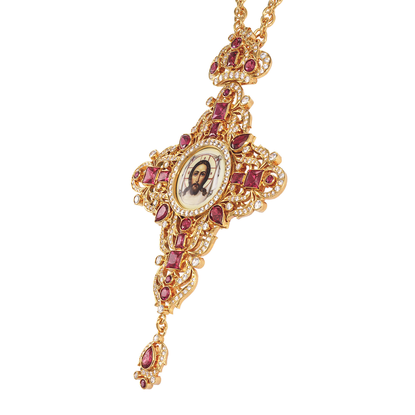 Крест архиерейский №213 / Фианиты деколь / золочение