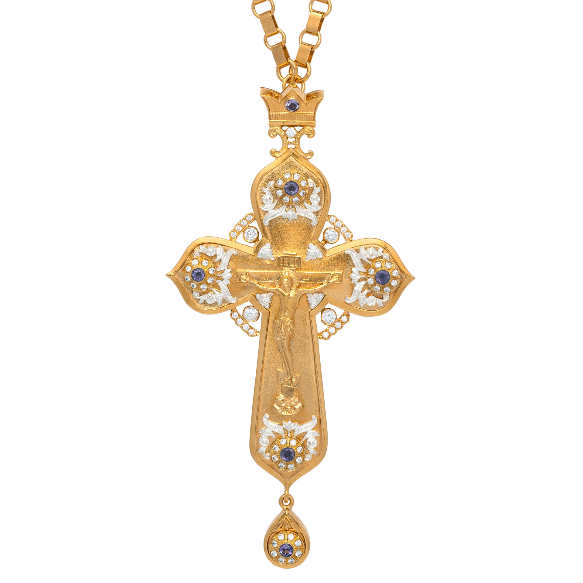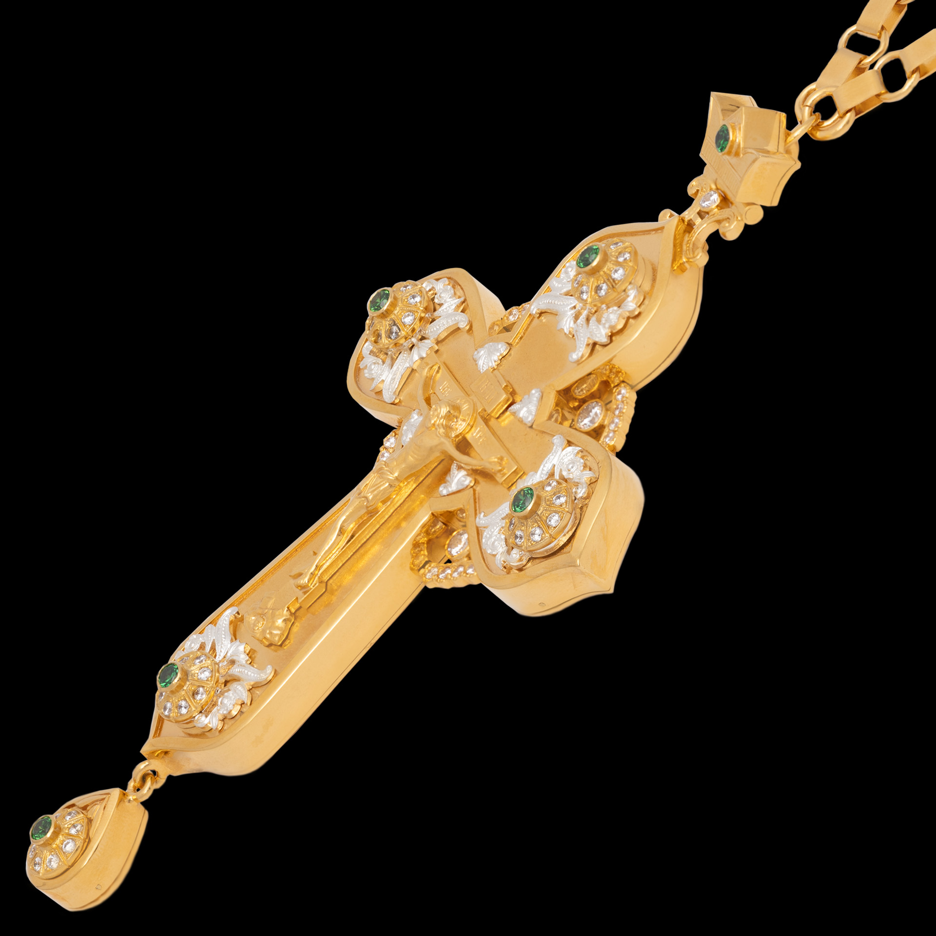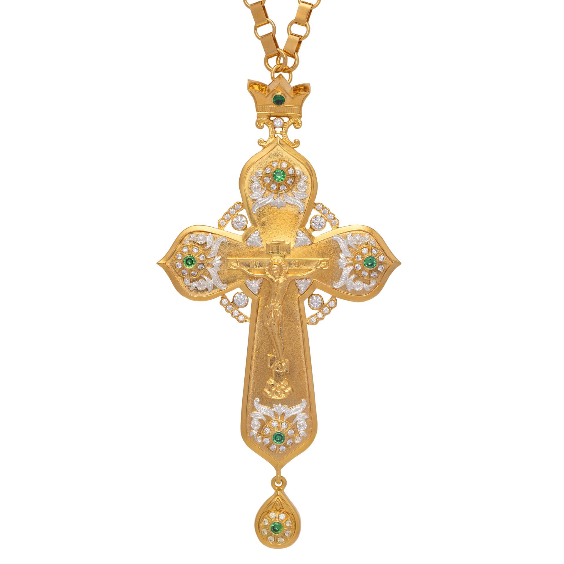 Крест наперсный №216 / Фианиты литьевое распятие / золочение, серебрение