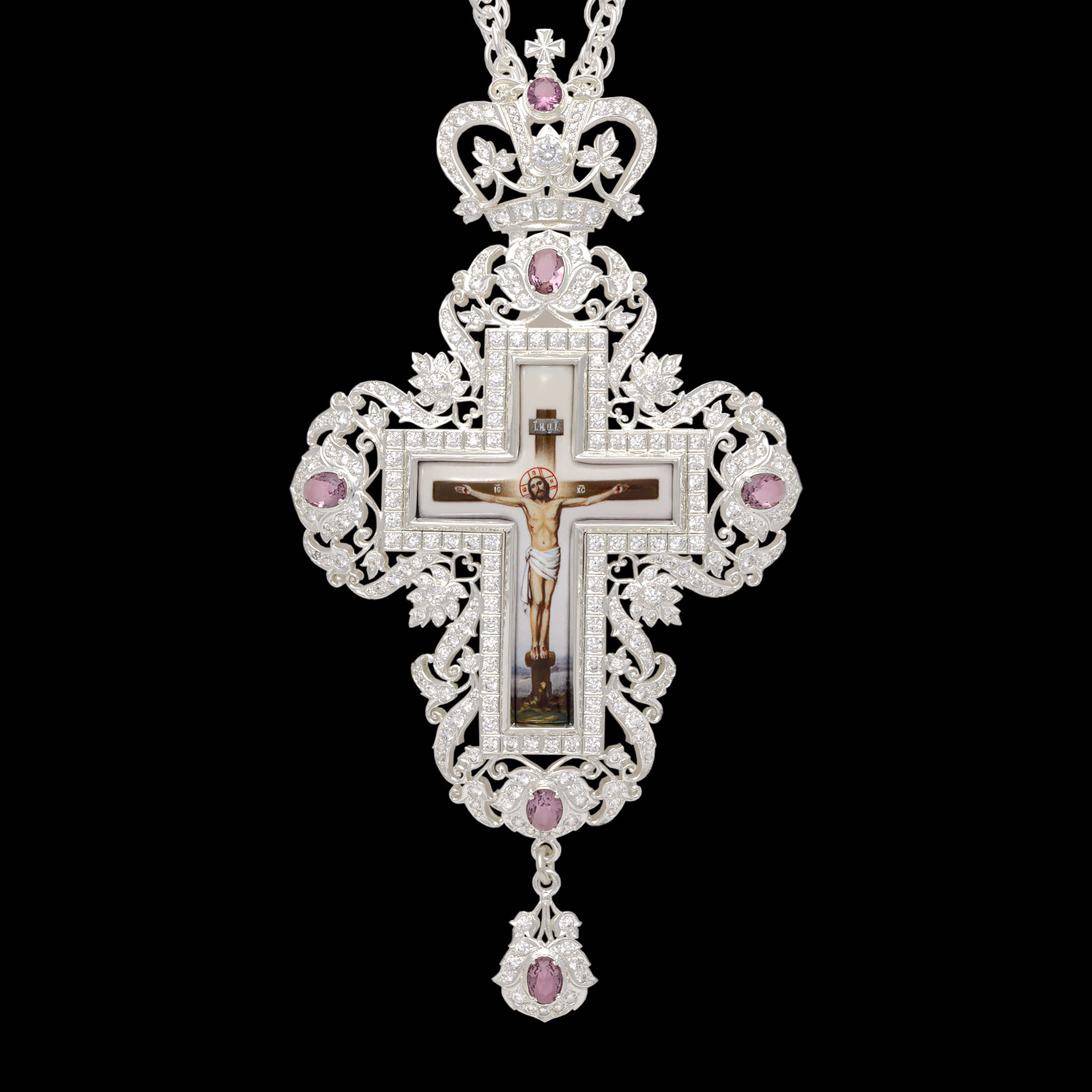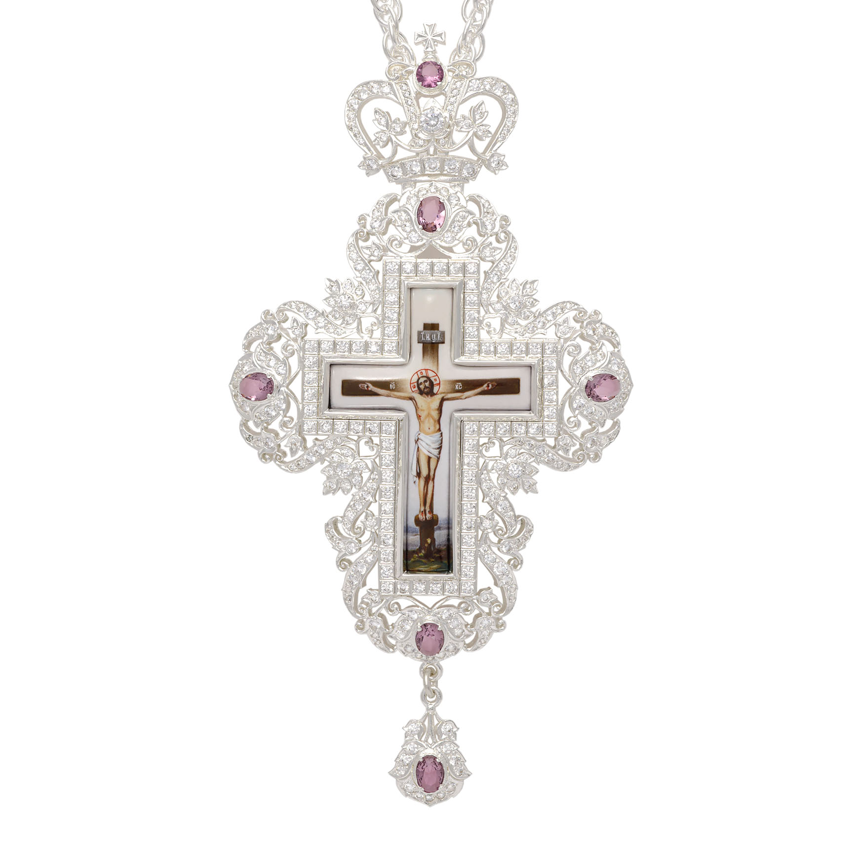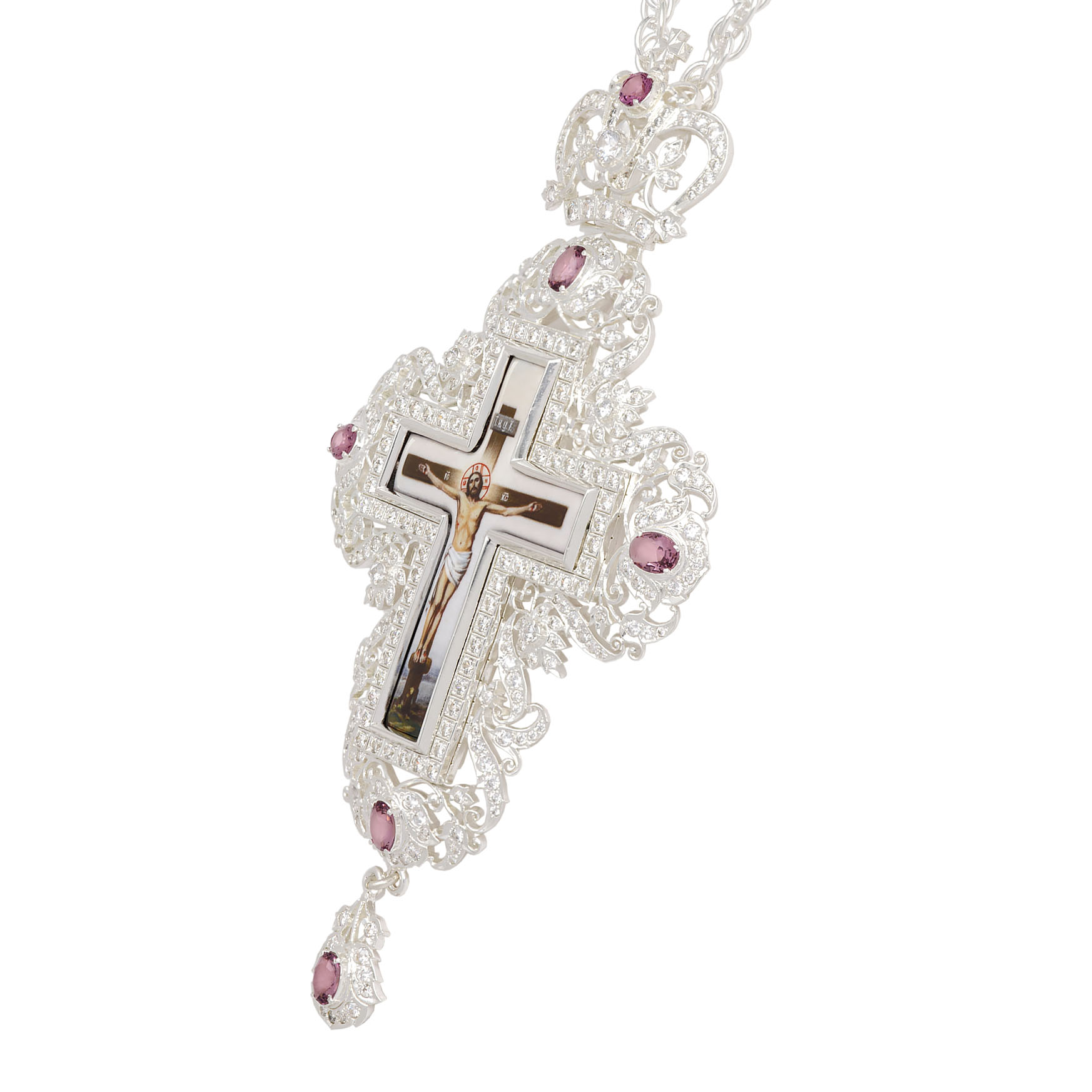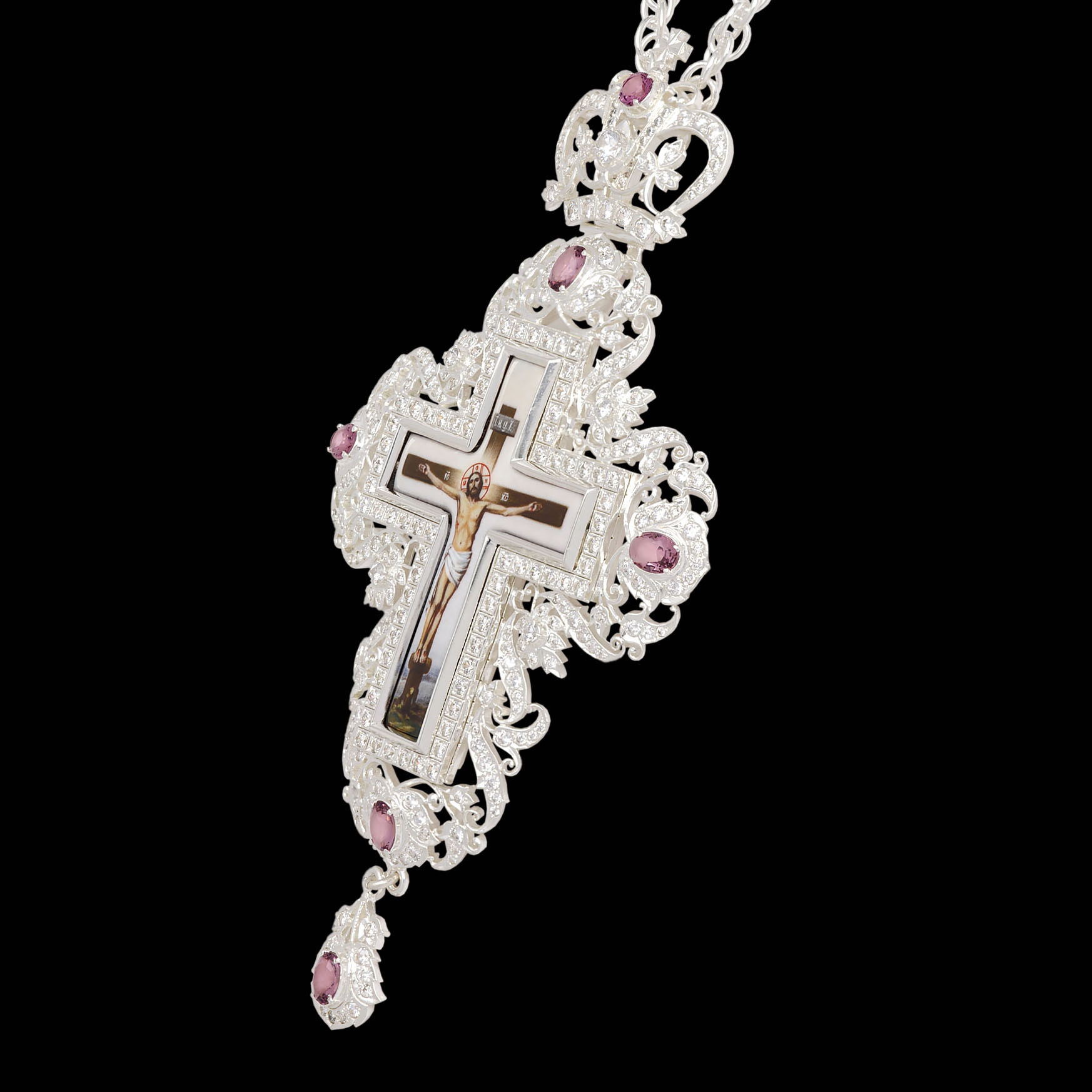 Крест наперсный №222 / Фианиты деколь / серебрение