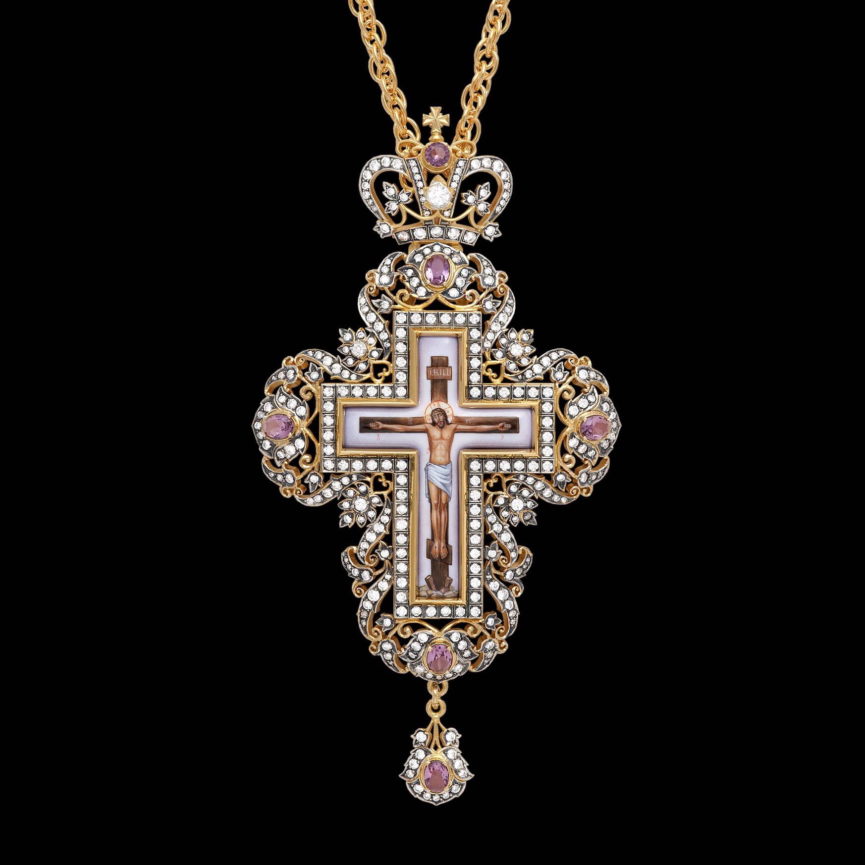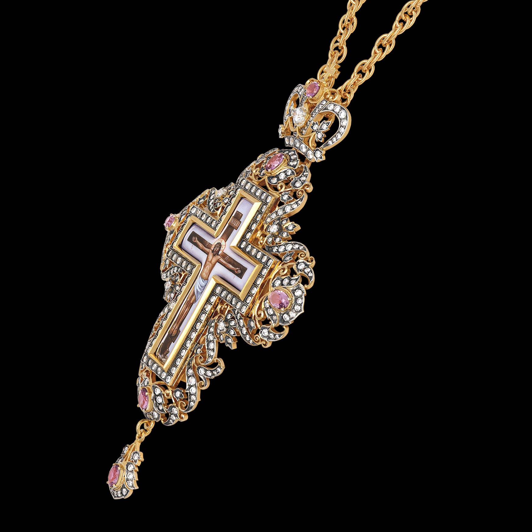 Крест наперсный №222 / Фианиты / золочение / серебро (УИН)