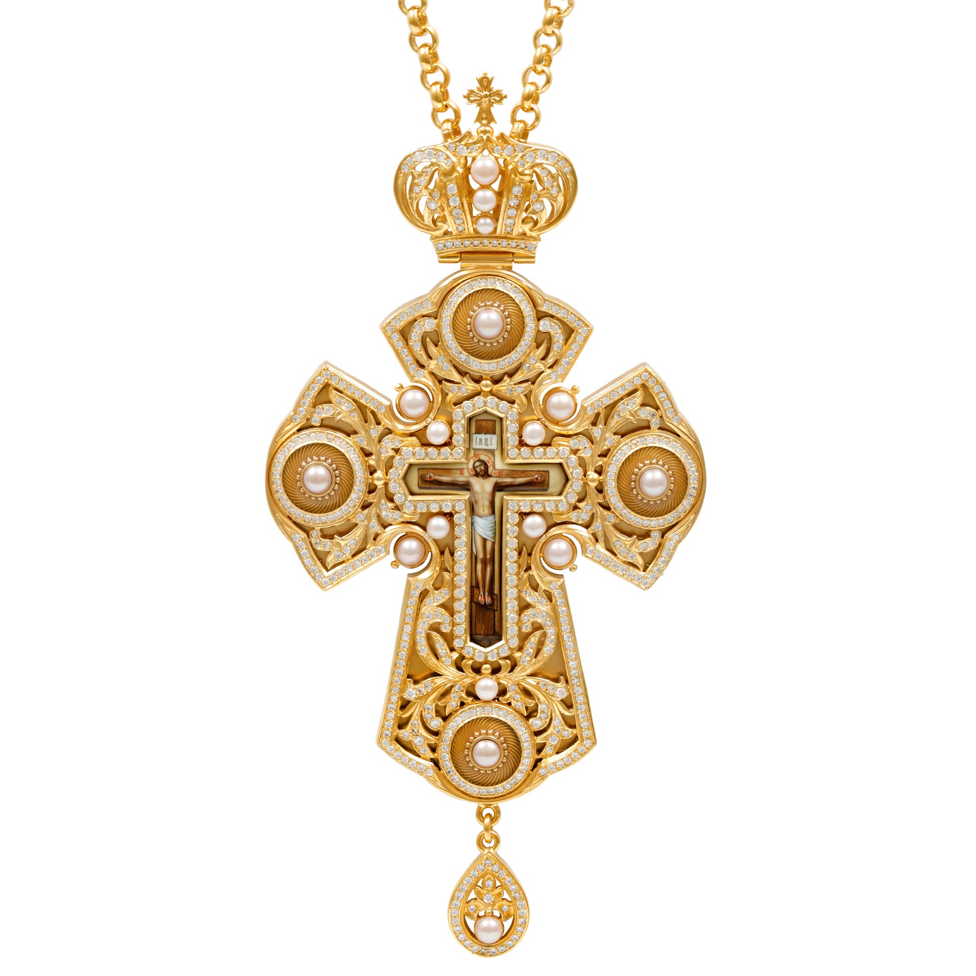Крест наперсный №224 / Фианиты финифть, эмаль / золочение / серебро (УИН)