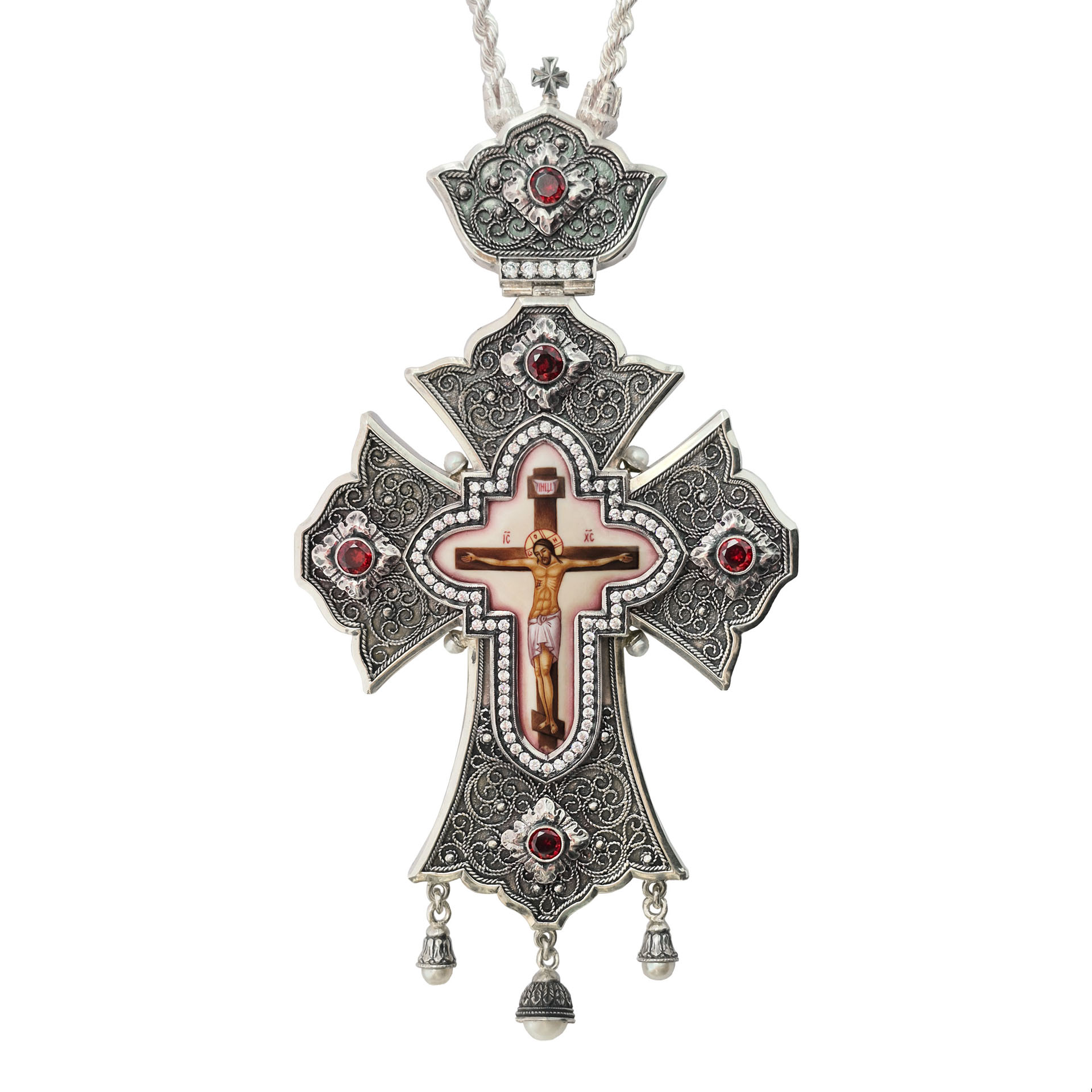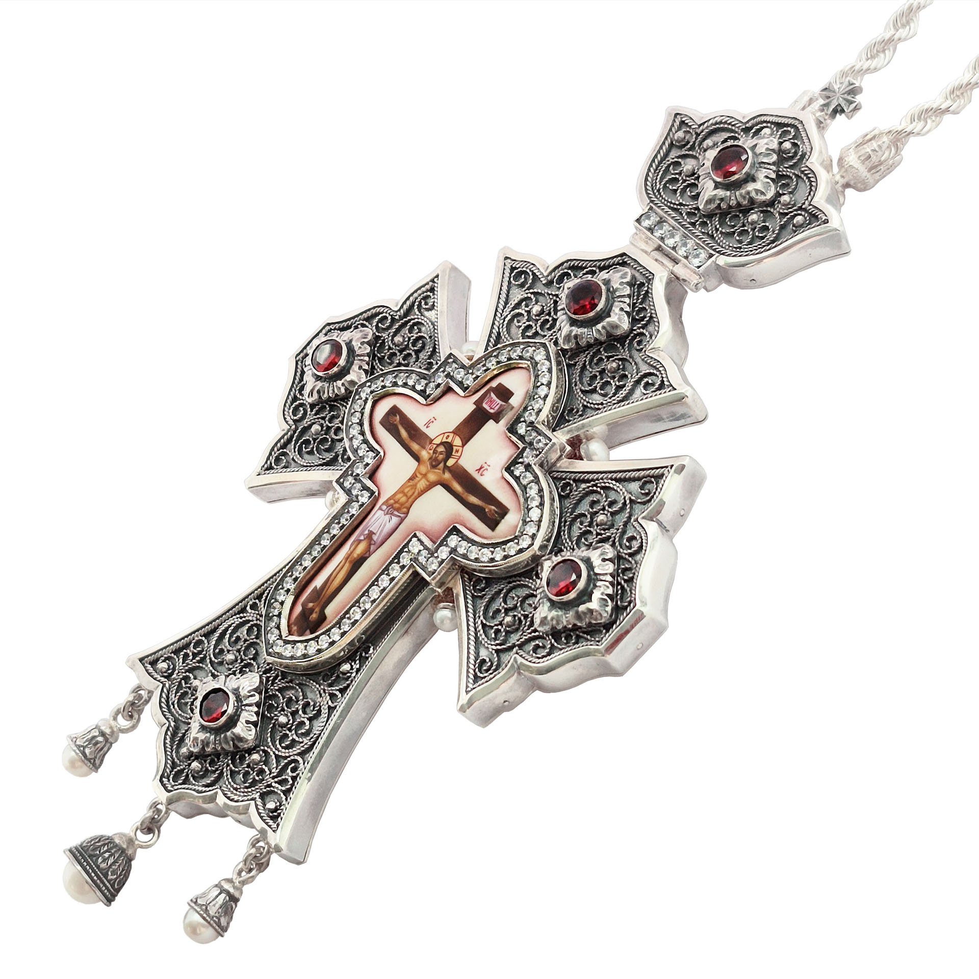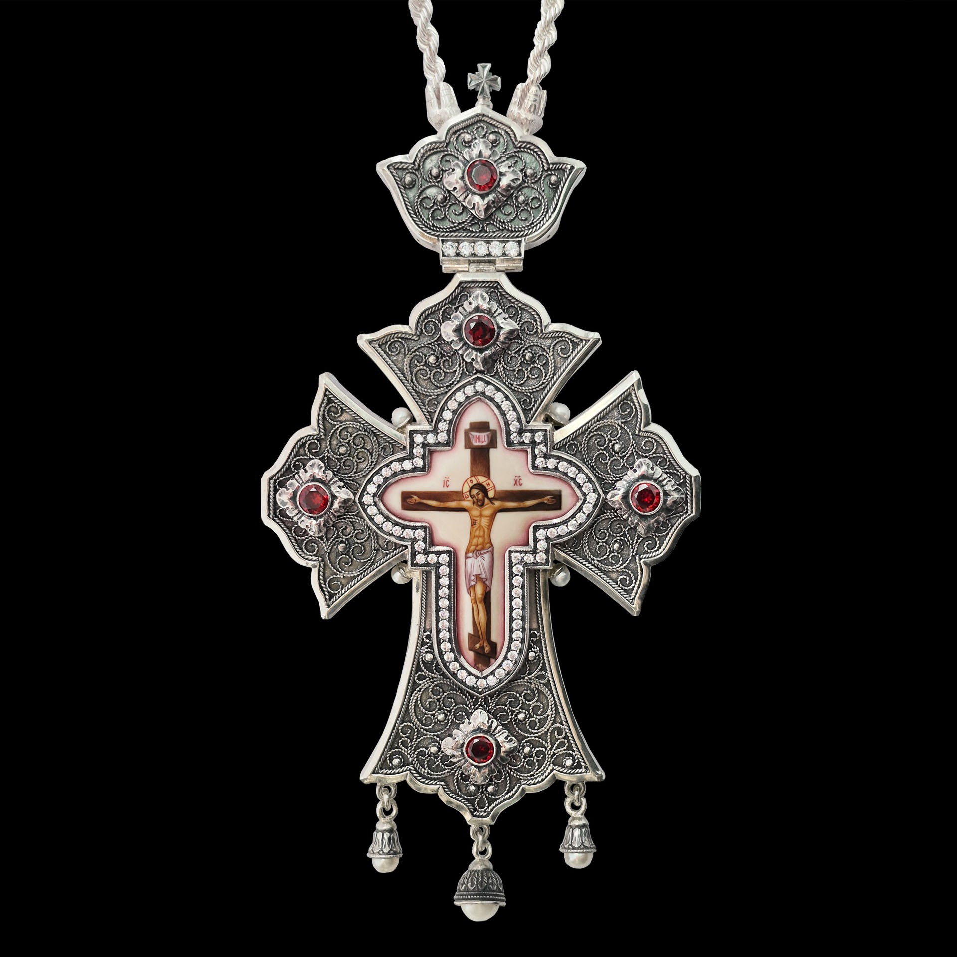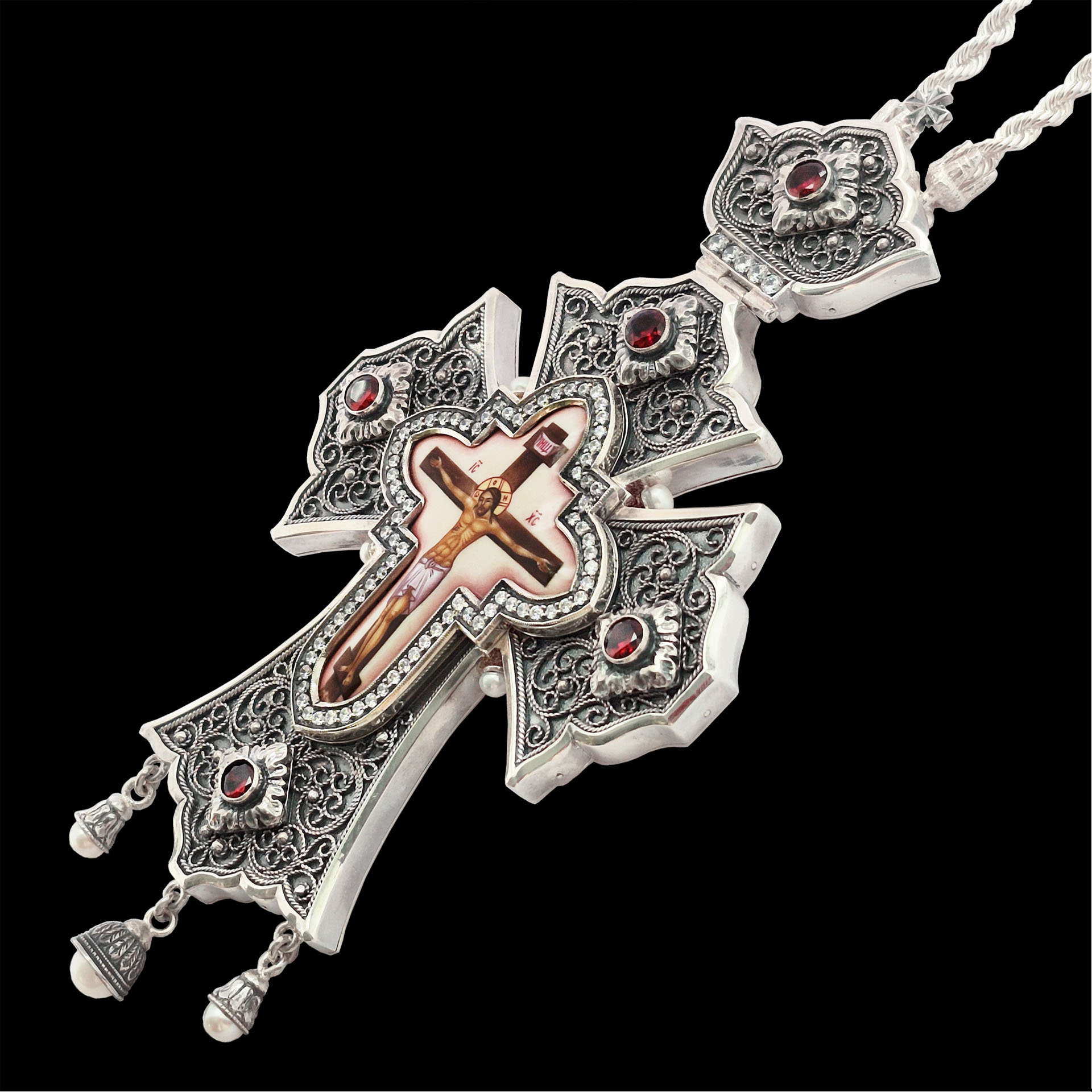 Крест наперсный №227 / Фианиты финифть, филигрань серебро (УИН)
