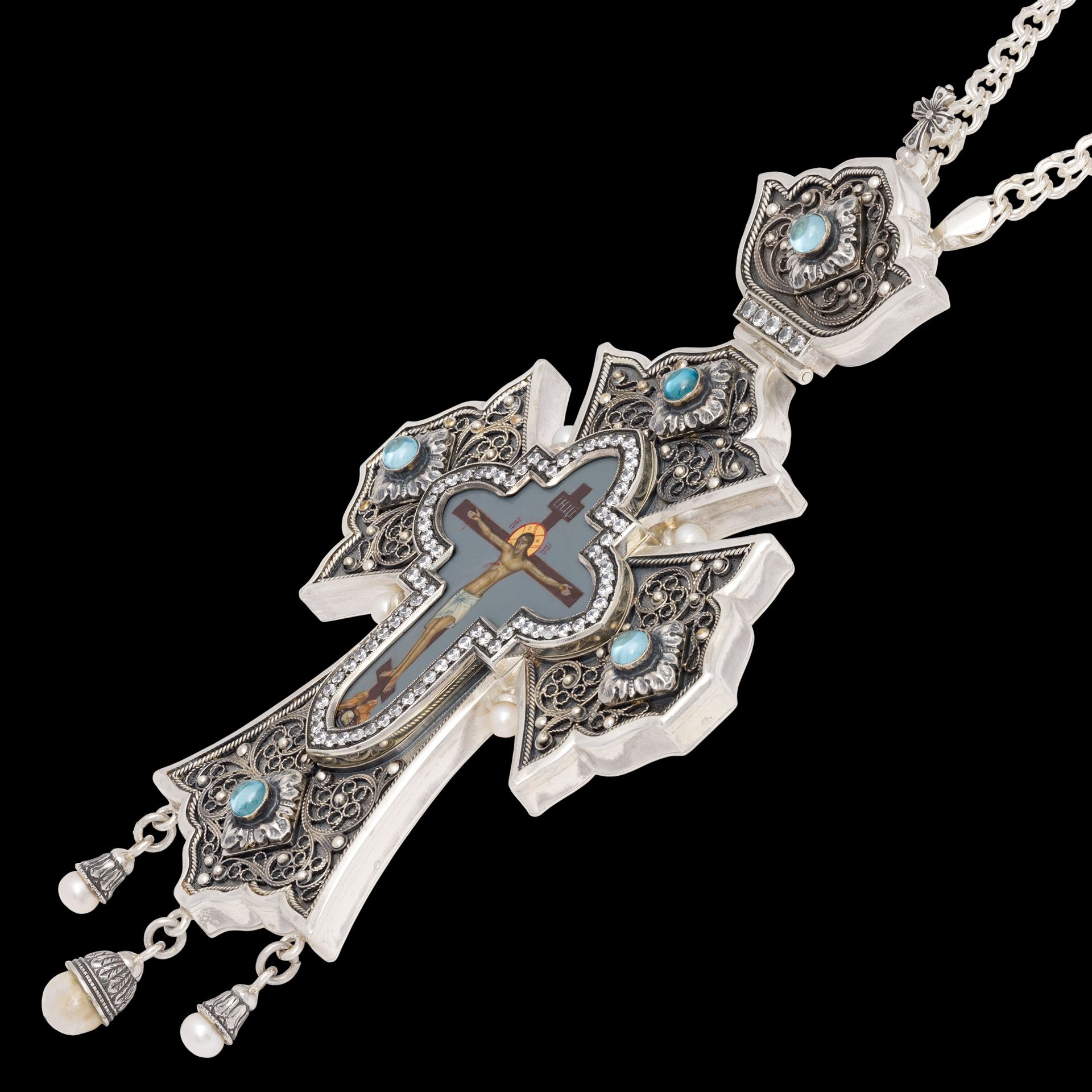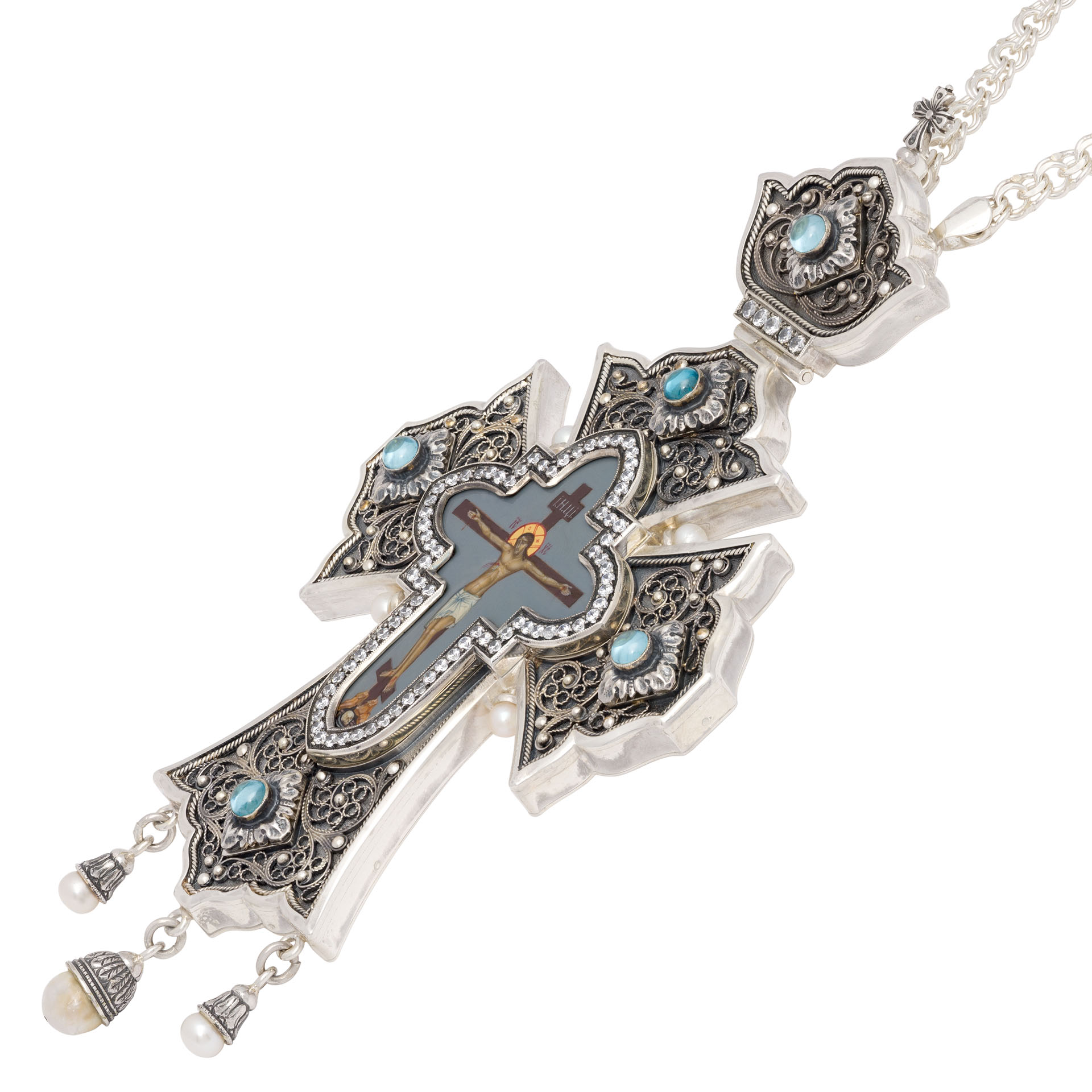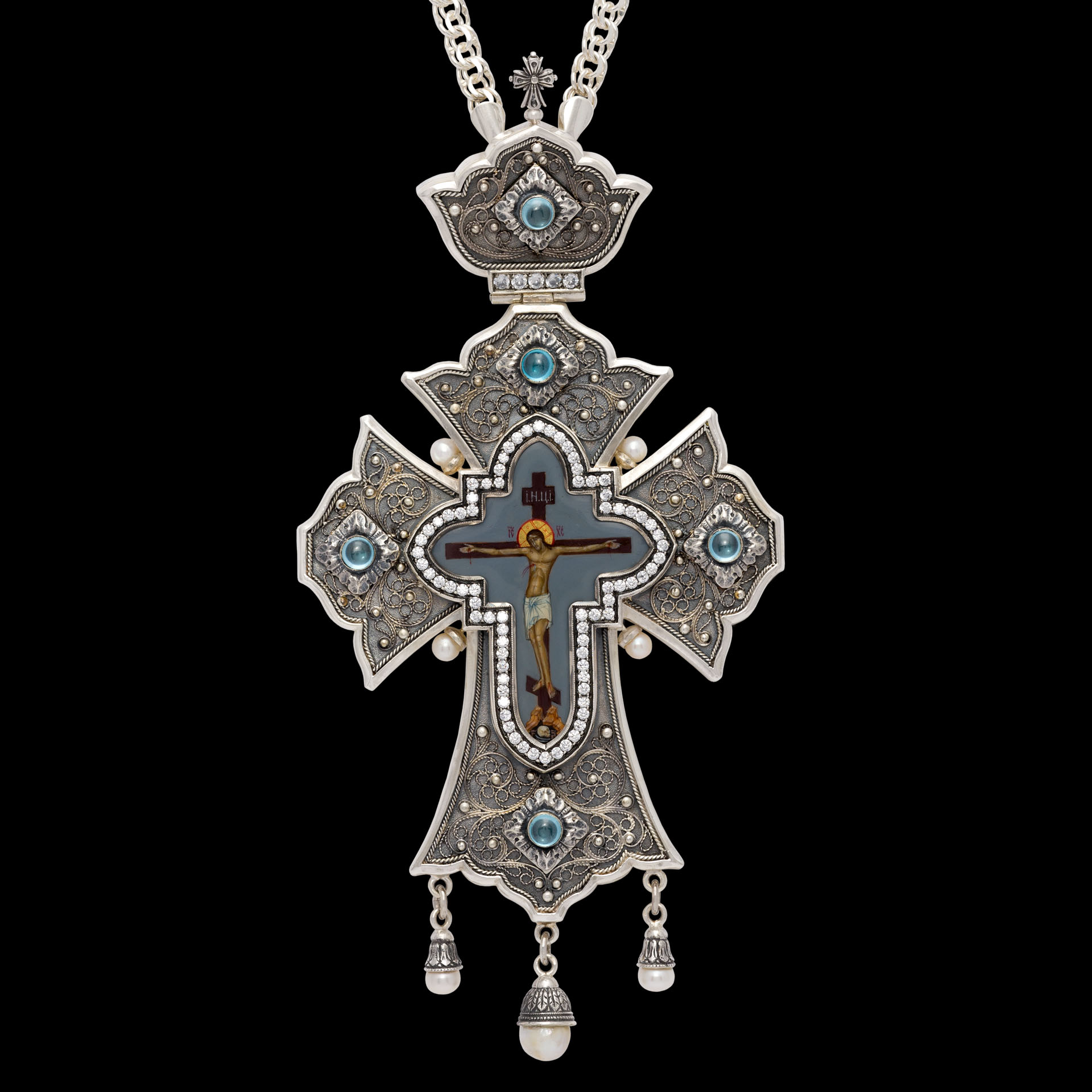 Крест наперсный №227 / Фианиты живопись, филигрань серебро (УИН)