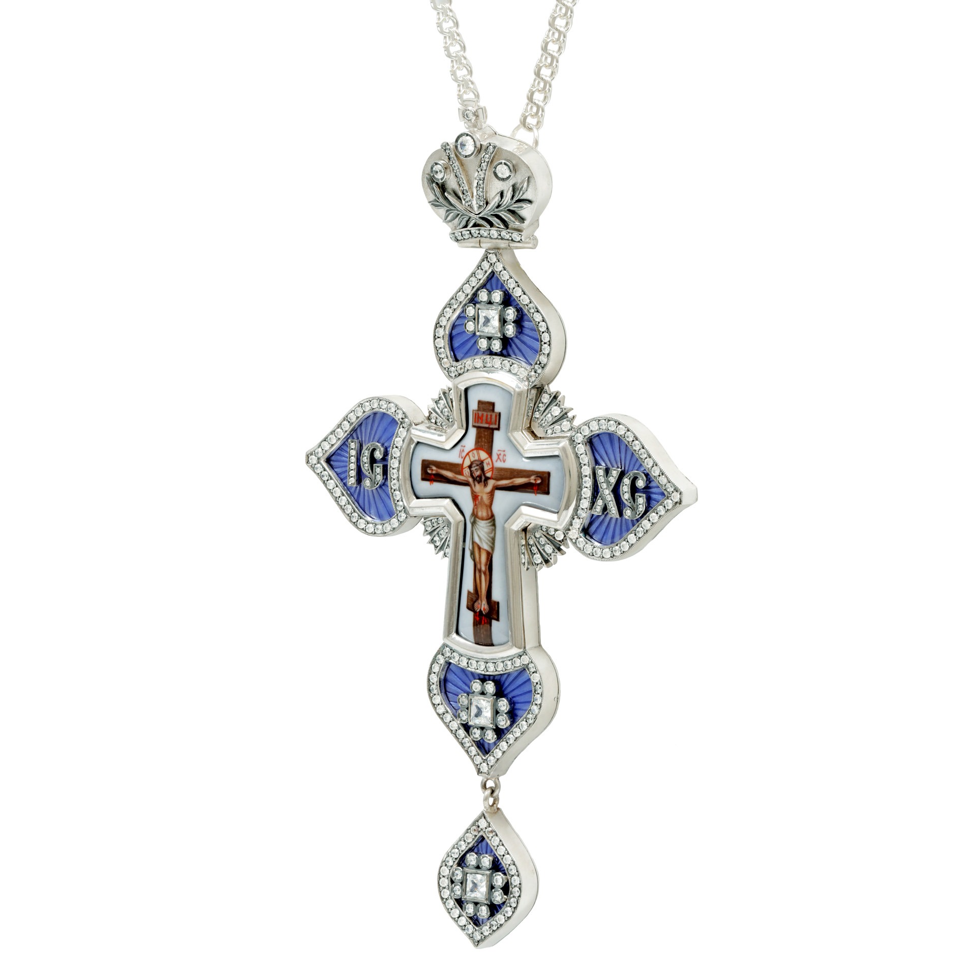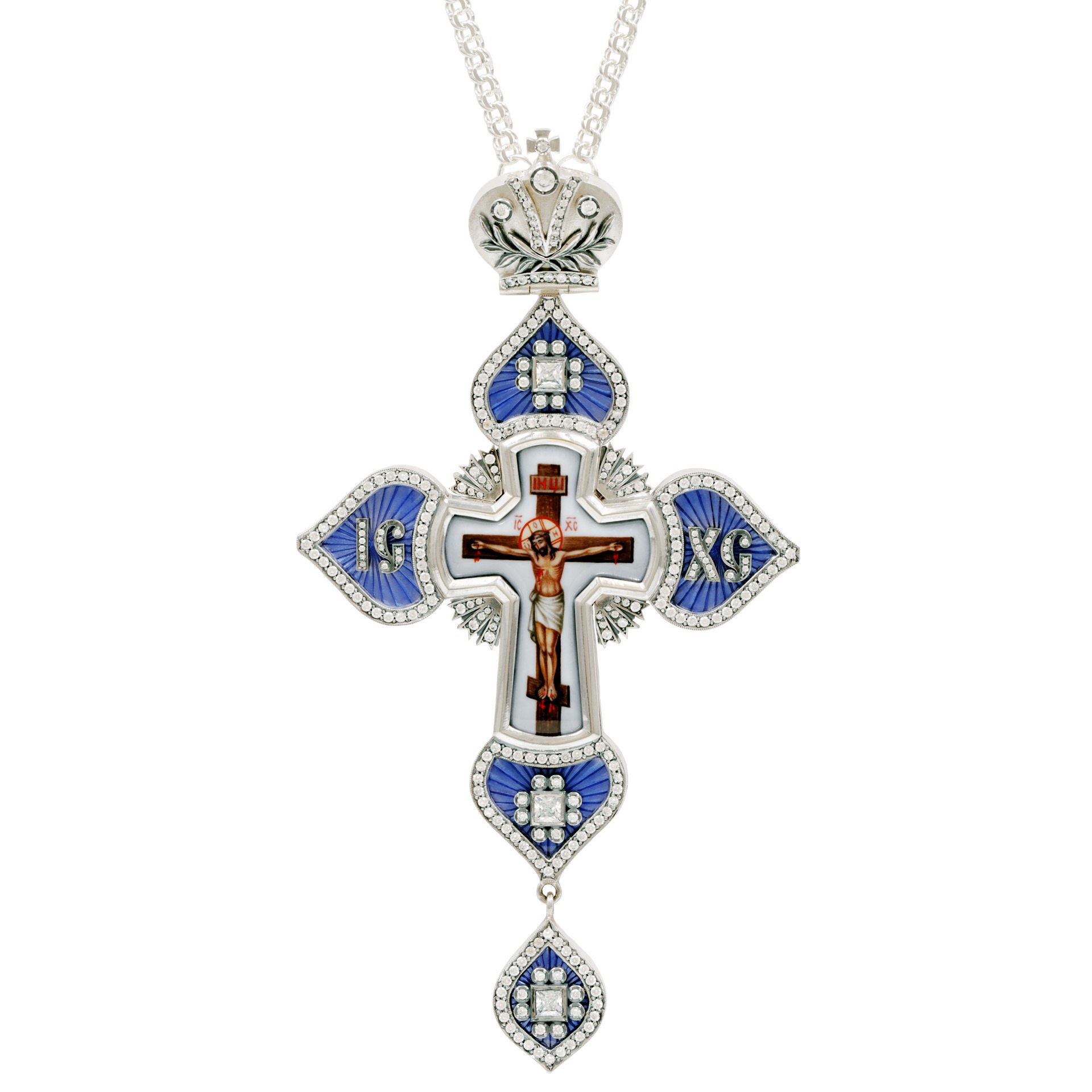 Крест наперсный №230 / Фианиты финифть, эмаль серебро (УИН)