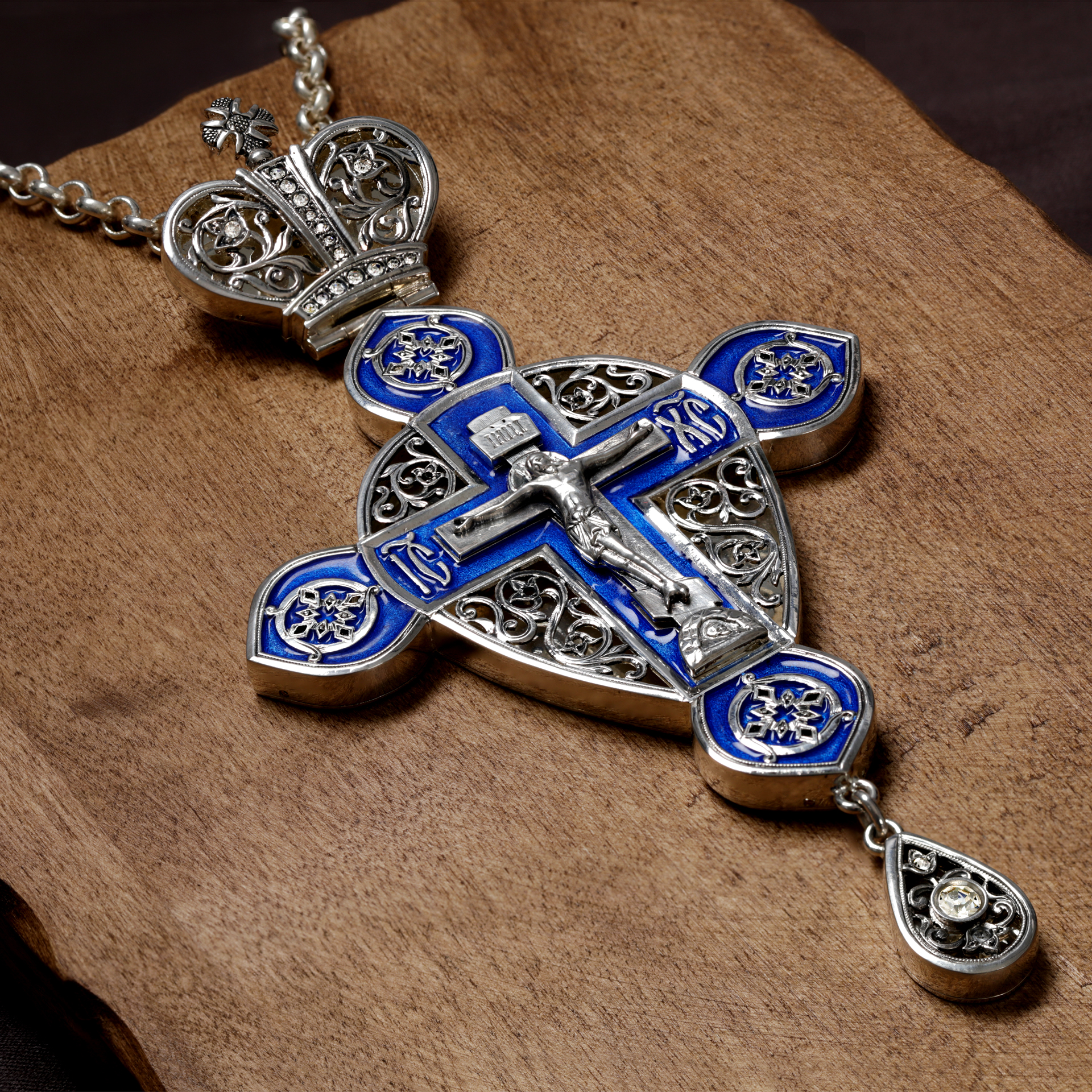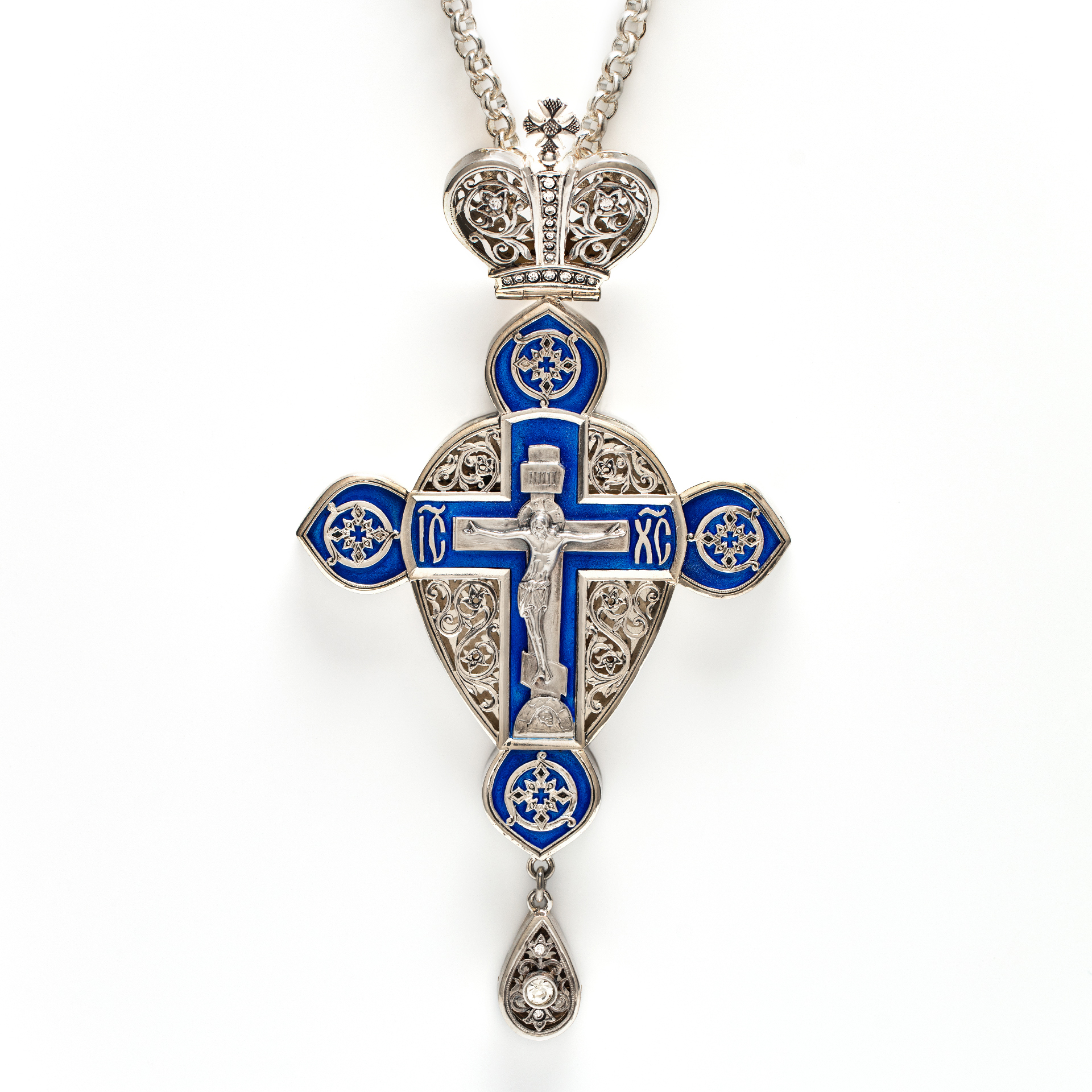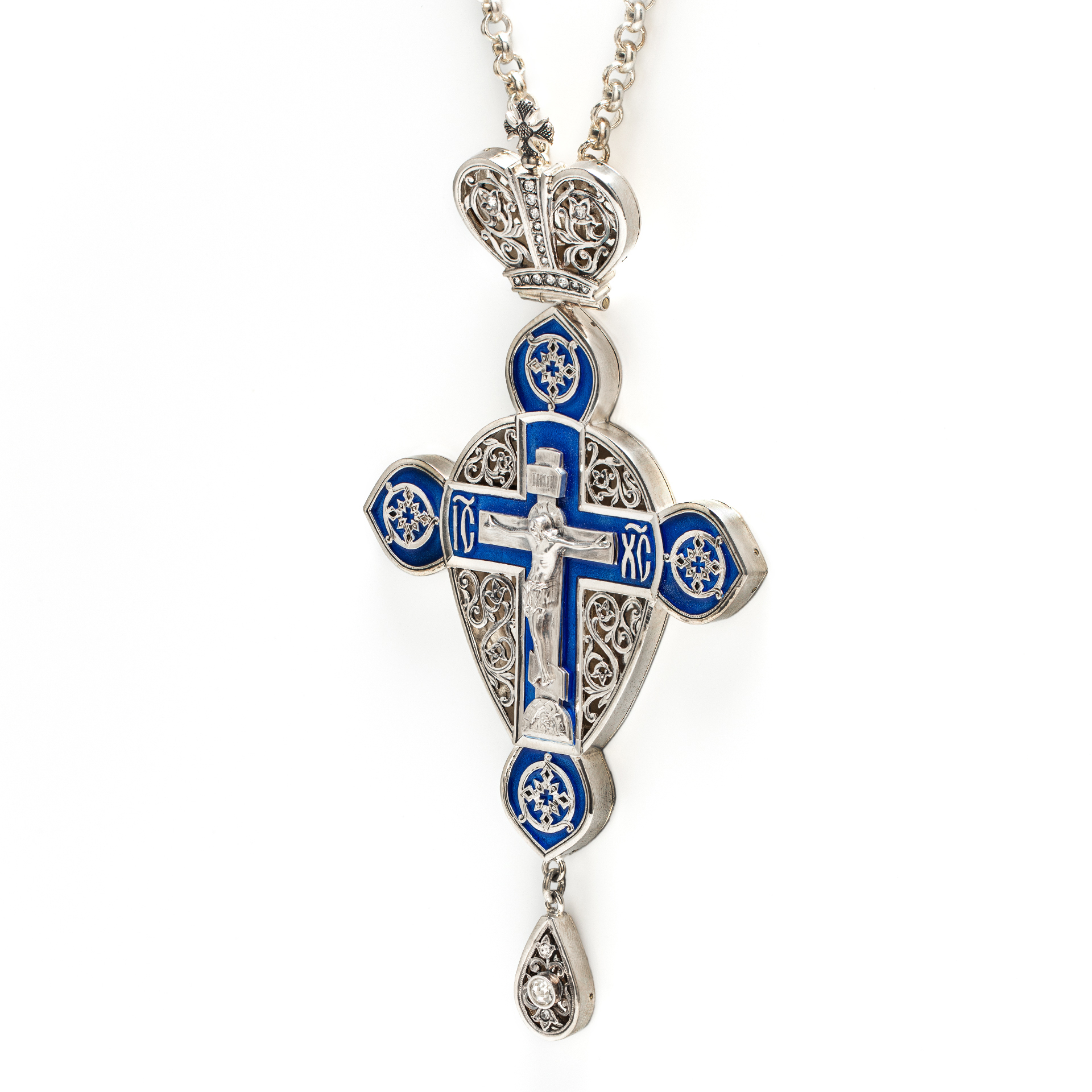 Крест наперсный №232 литьевое распятие эмаль / серебрение
