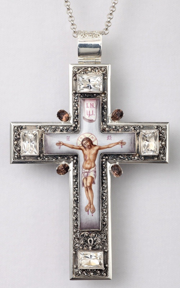 Крест наперсный 4-конечный филигрань на просвет, финифть серебро (УИН)