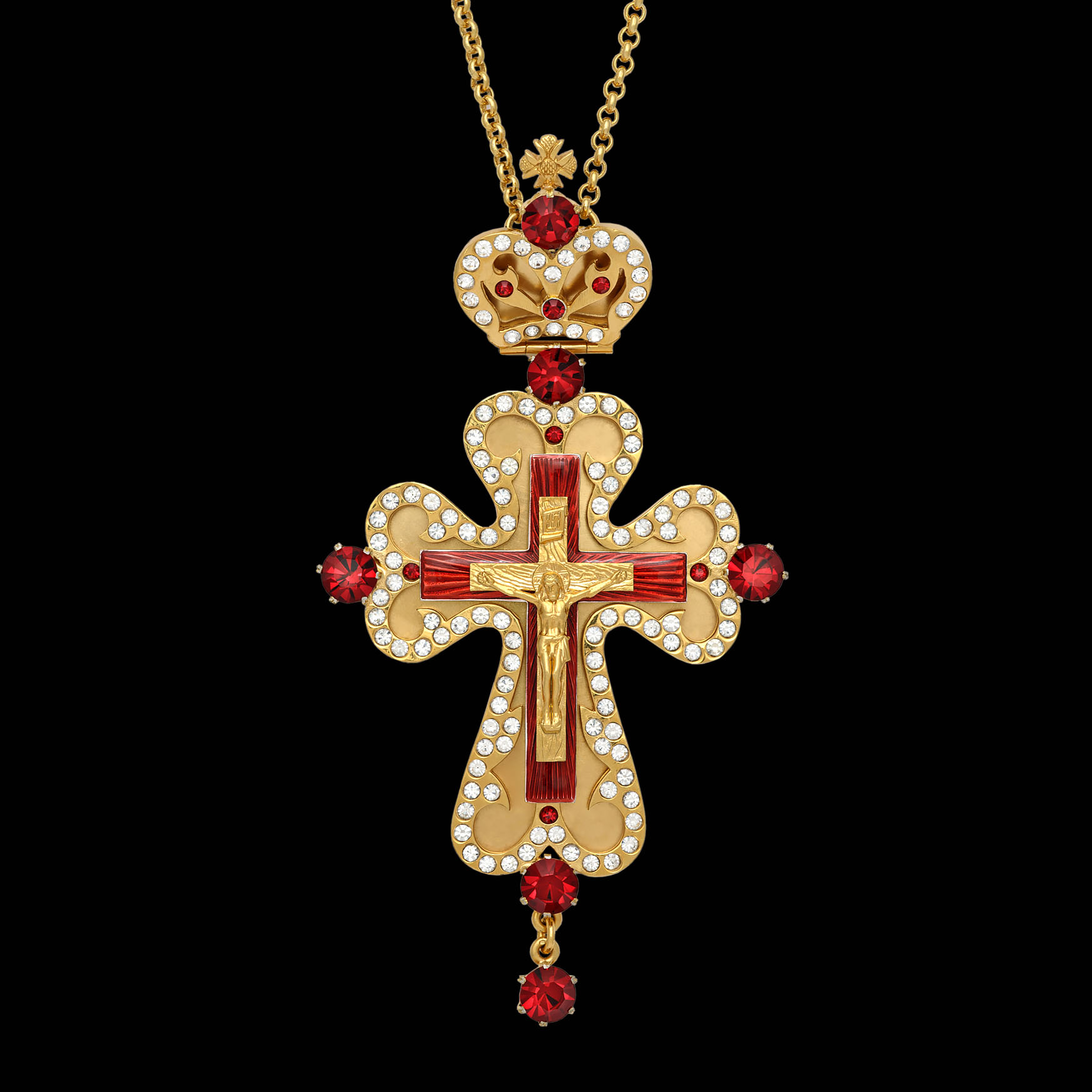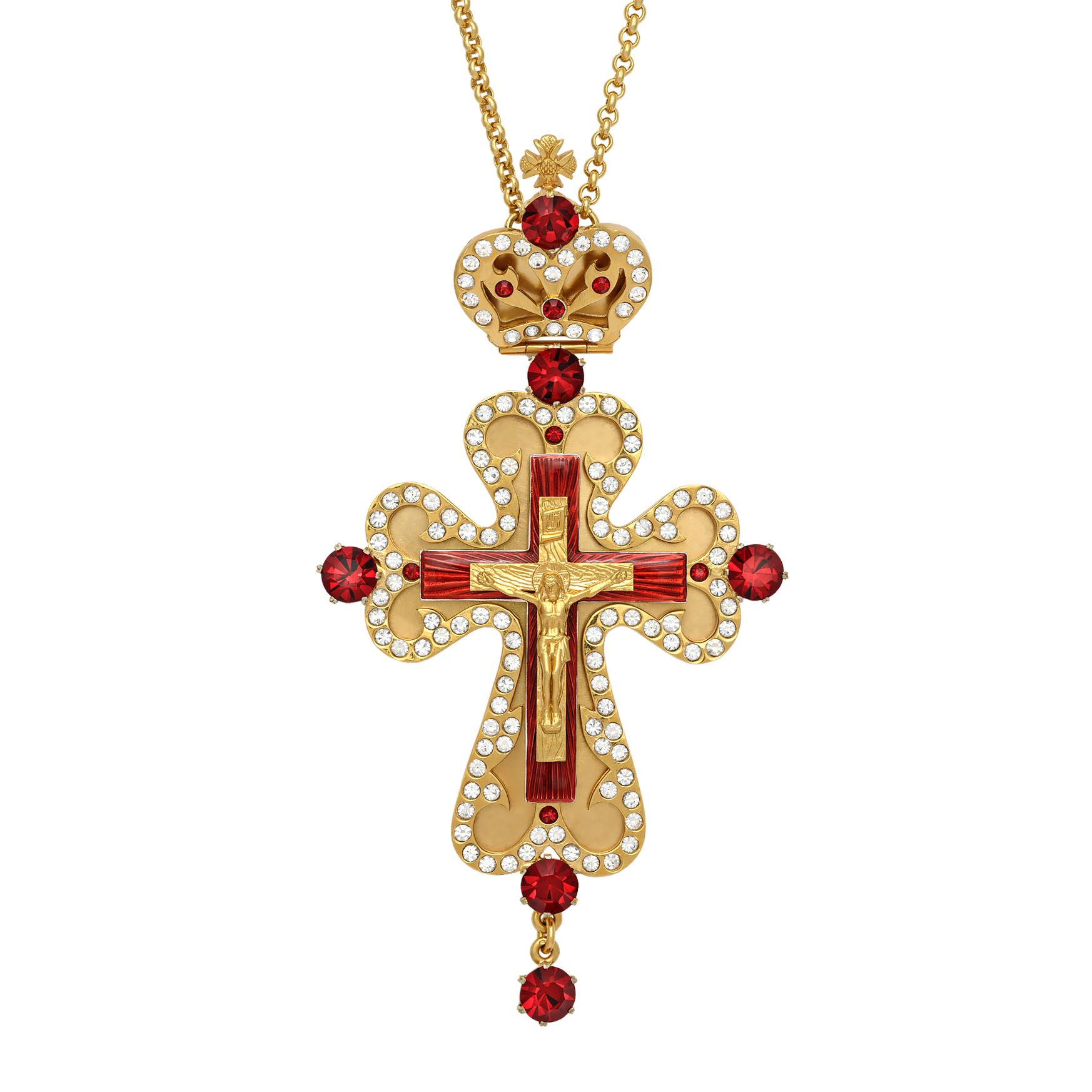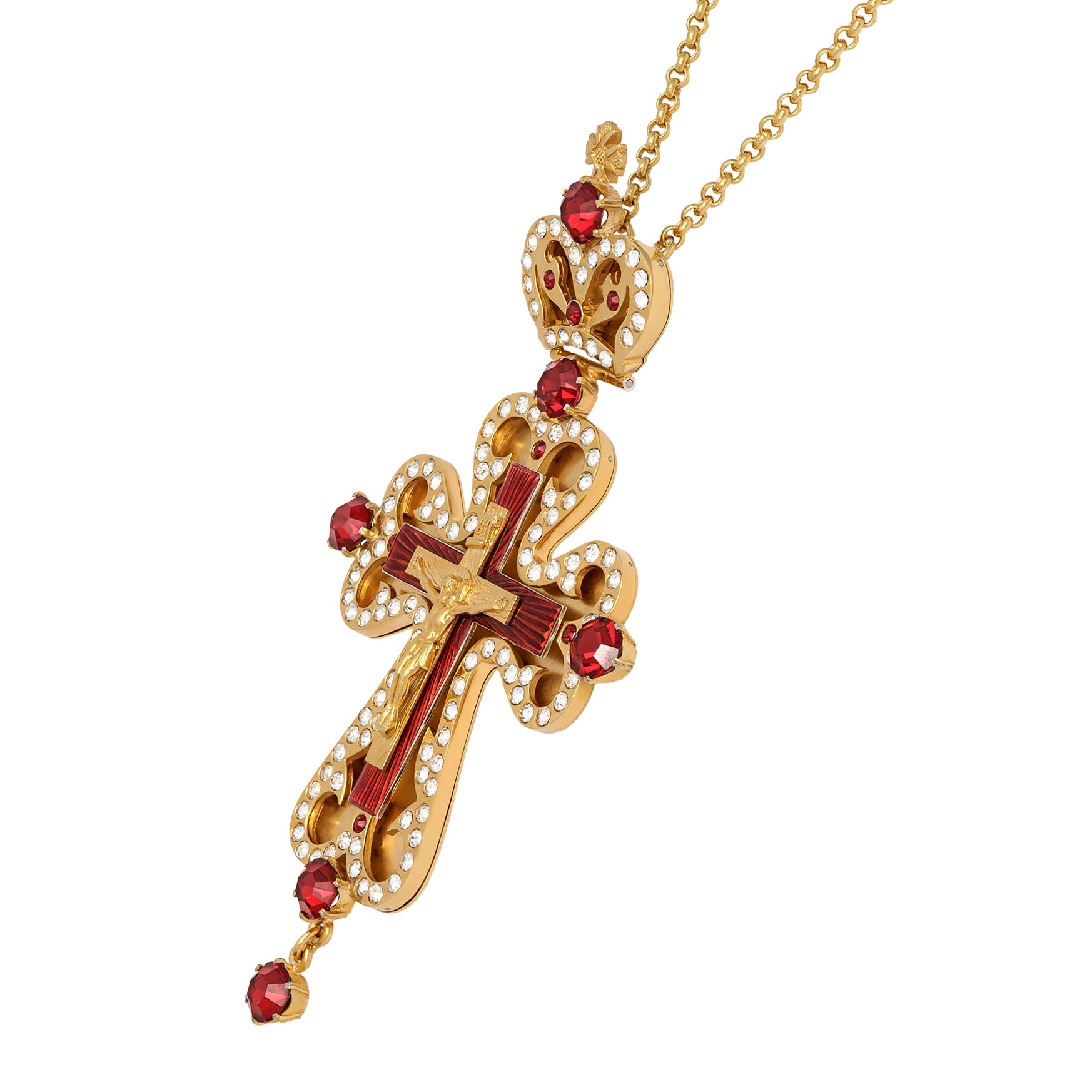 Крест наперсный №49 / золочение / серебро литьевое распятие, эмаль (УИН)