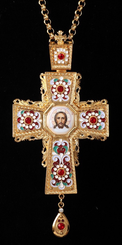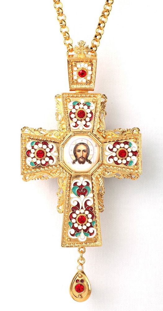 Крест наперсный №53 финифть, филигрань, эмаль / золочение