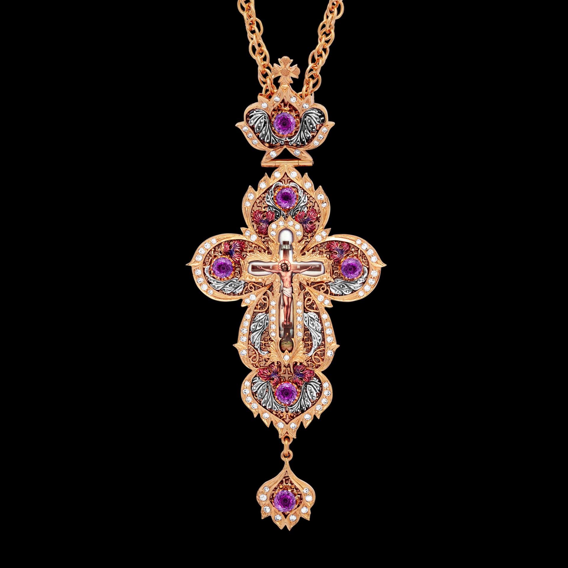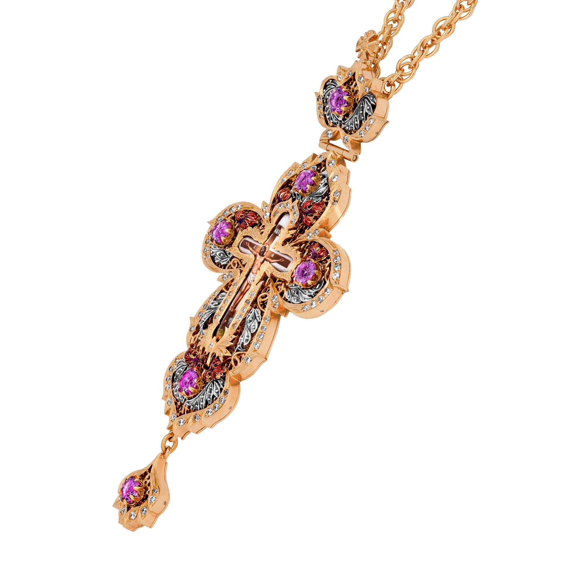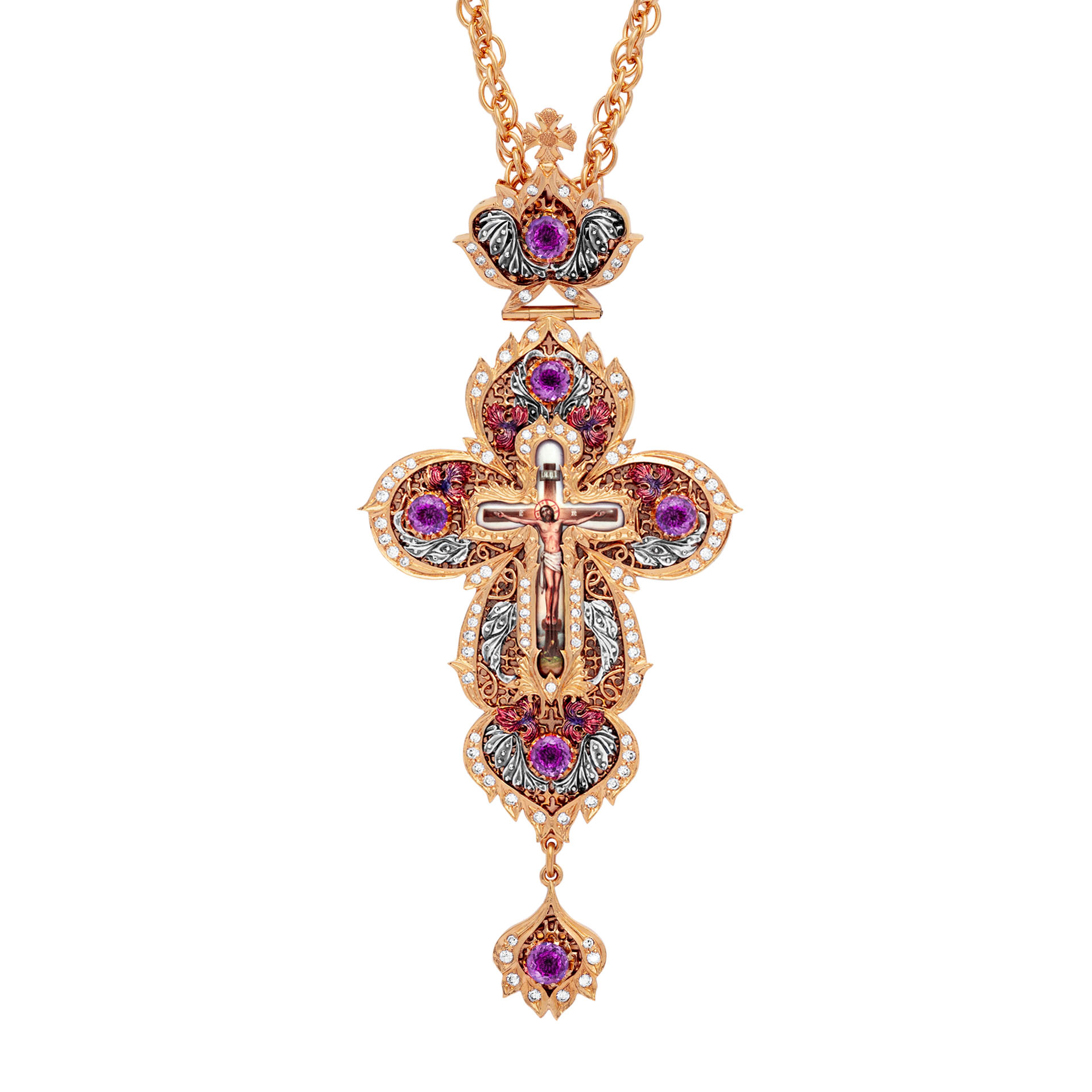 Крест наперсный №7 / Фианиты деколь, эмаль, / золочение, серебрение