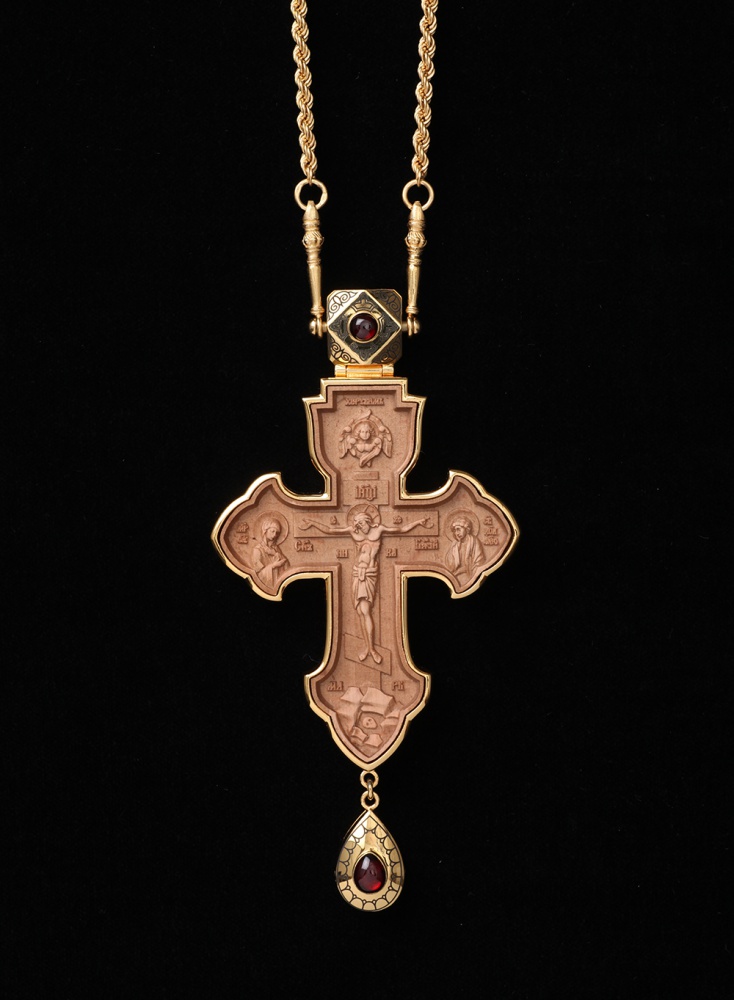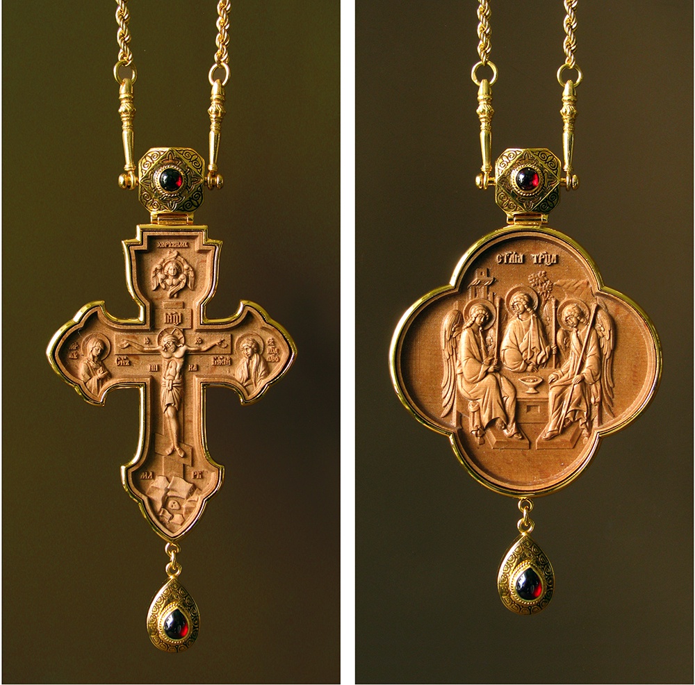 Крест наперсный №700 / золочение / серебро деревянная вставка к 700-летию прп. Сергия (УИН)