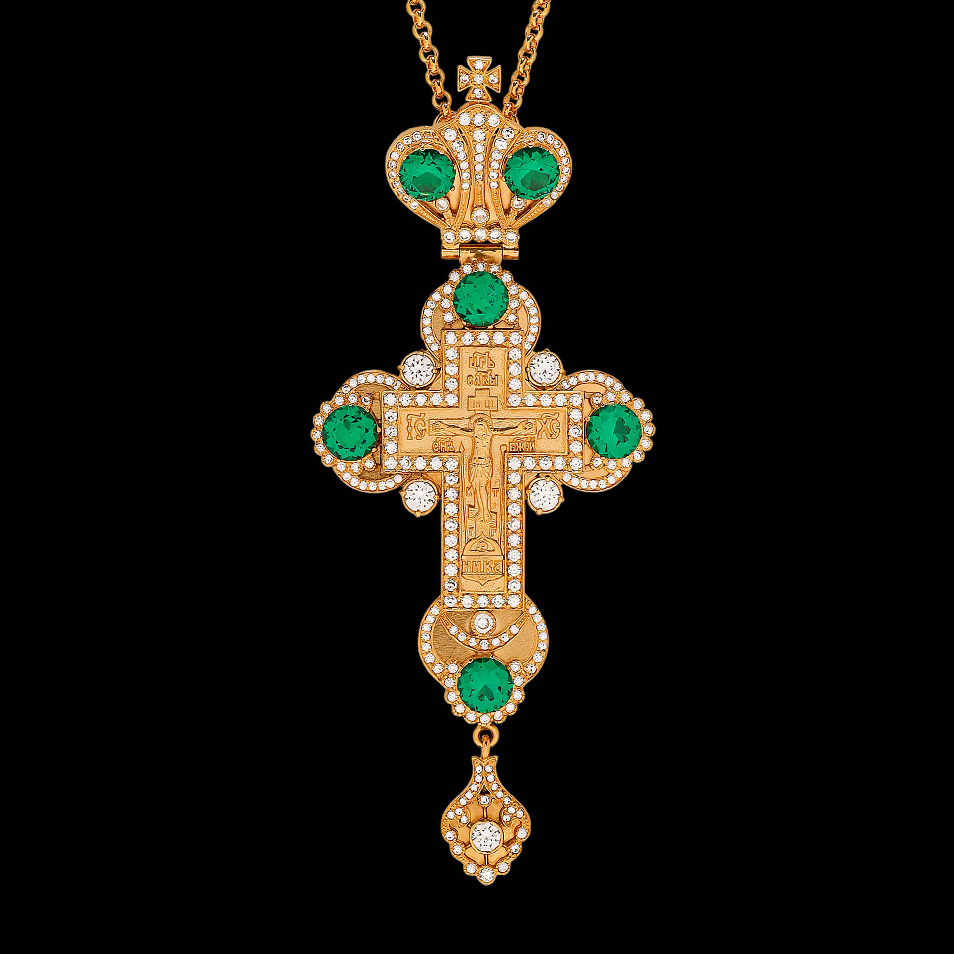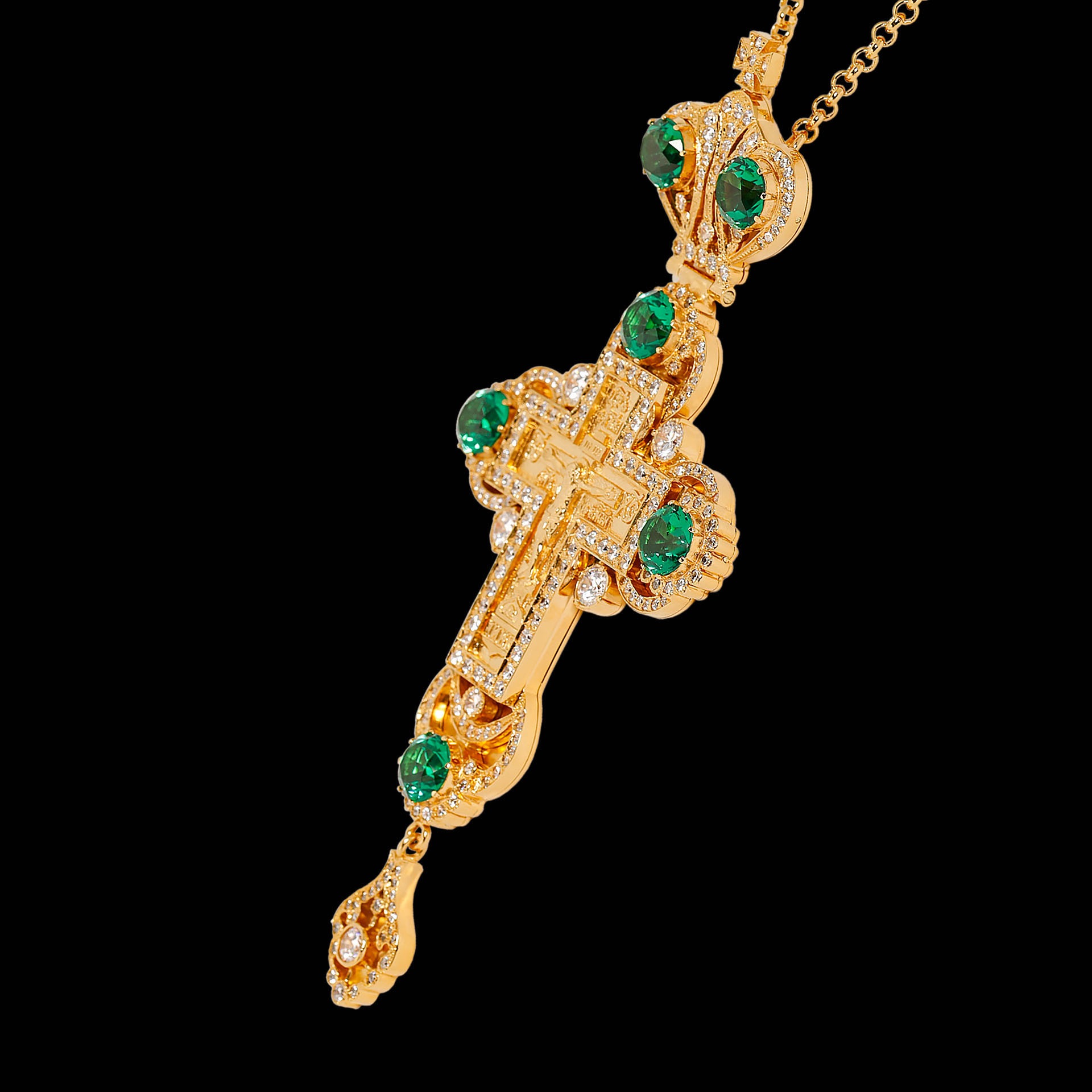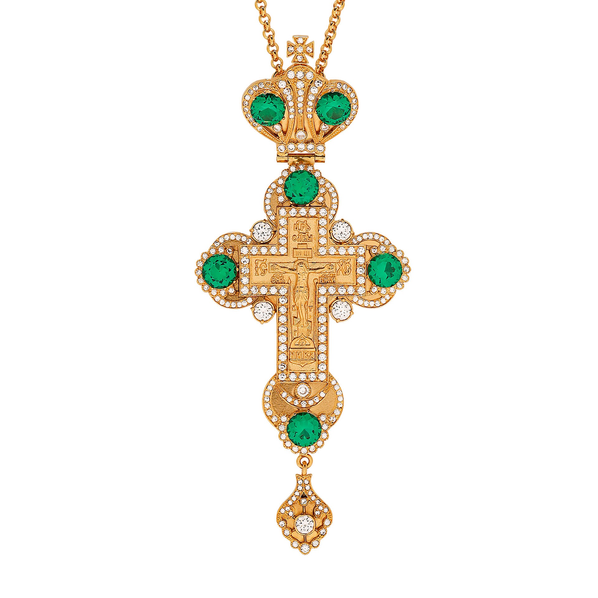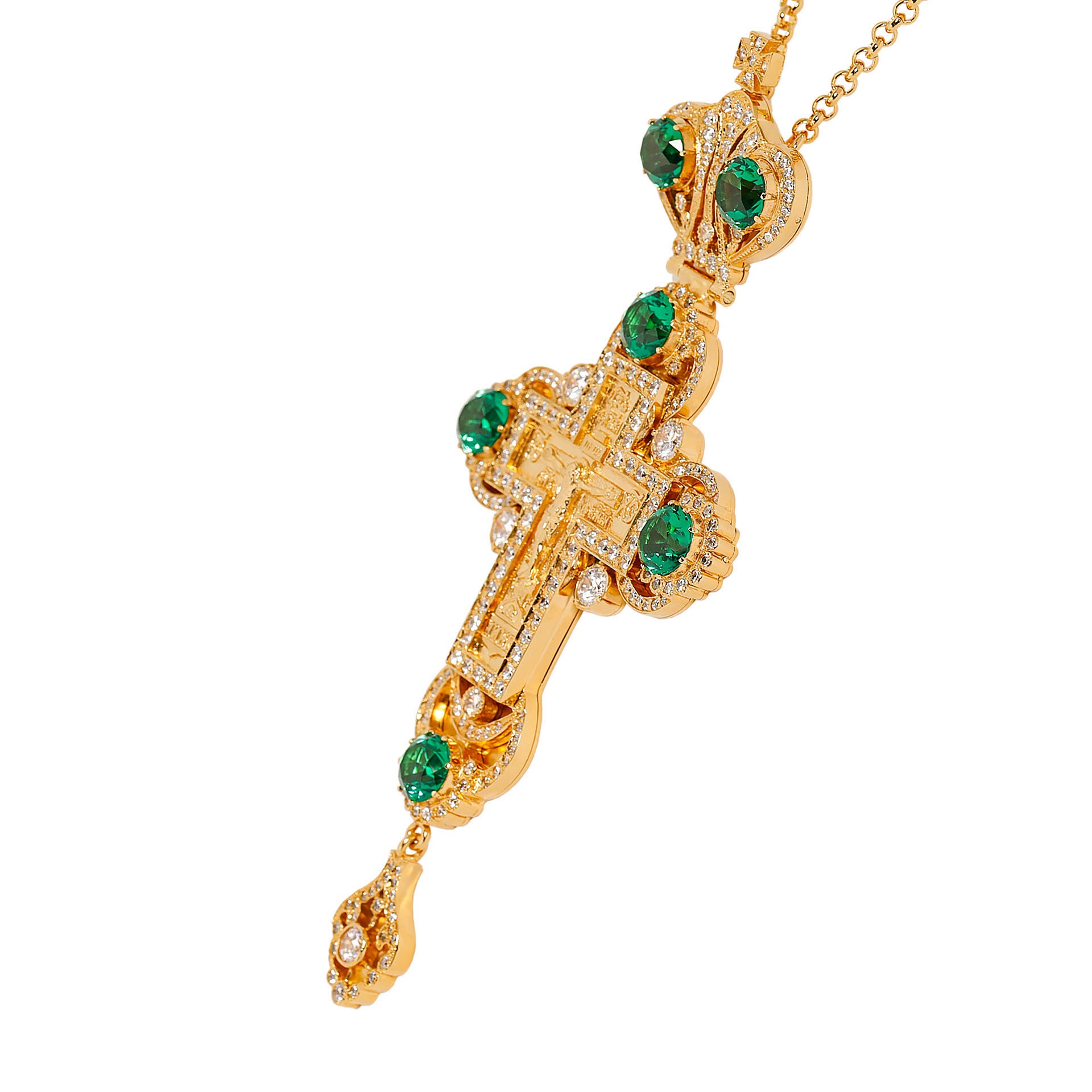 Крест наперсный №84 / Фианиты литьевое распятие / золочение
