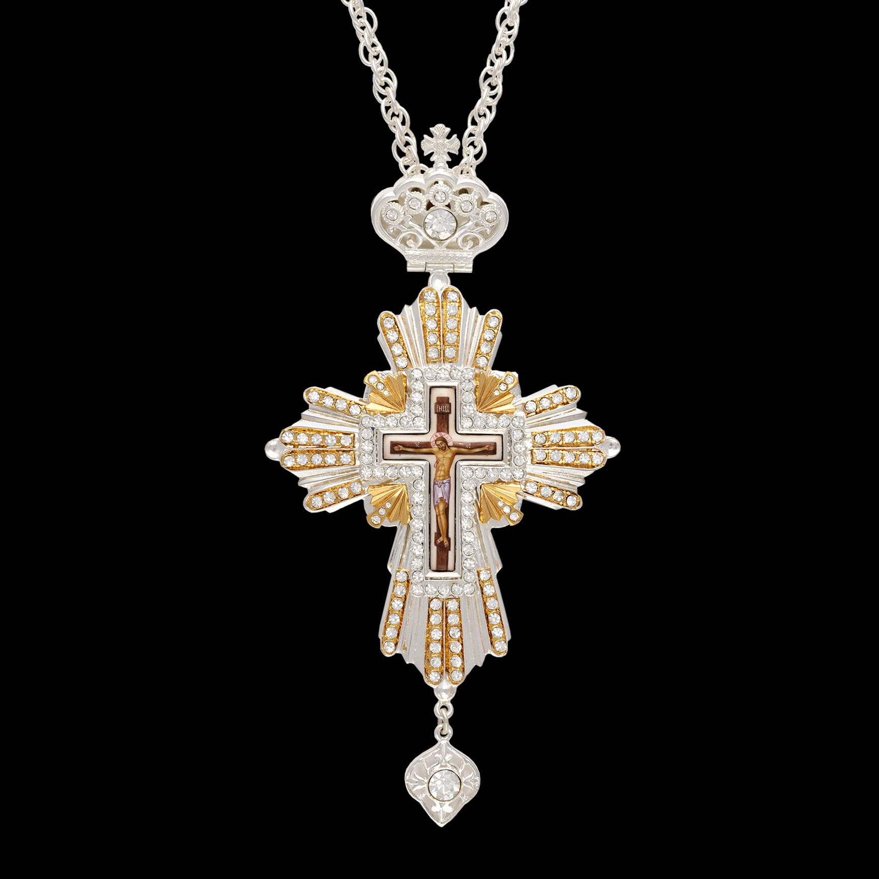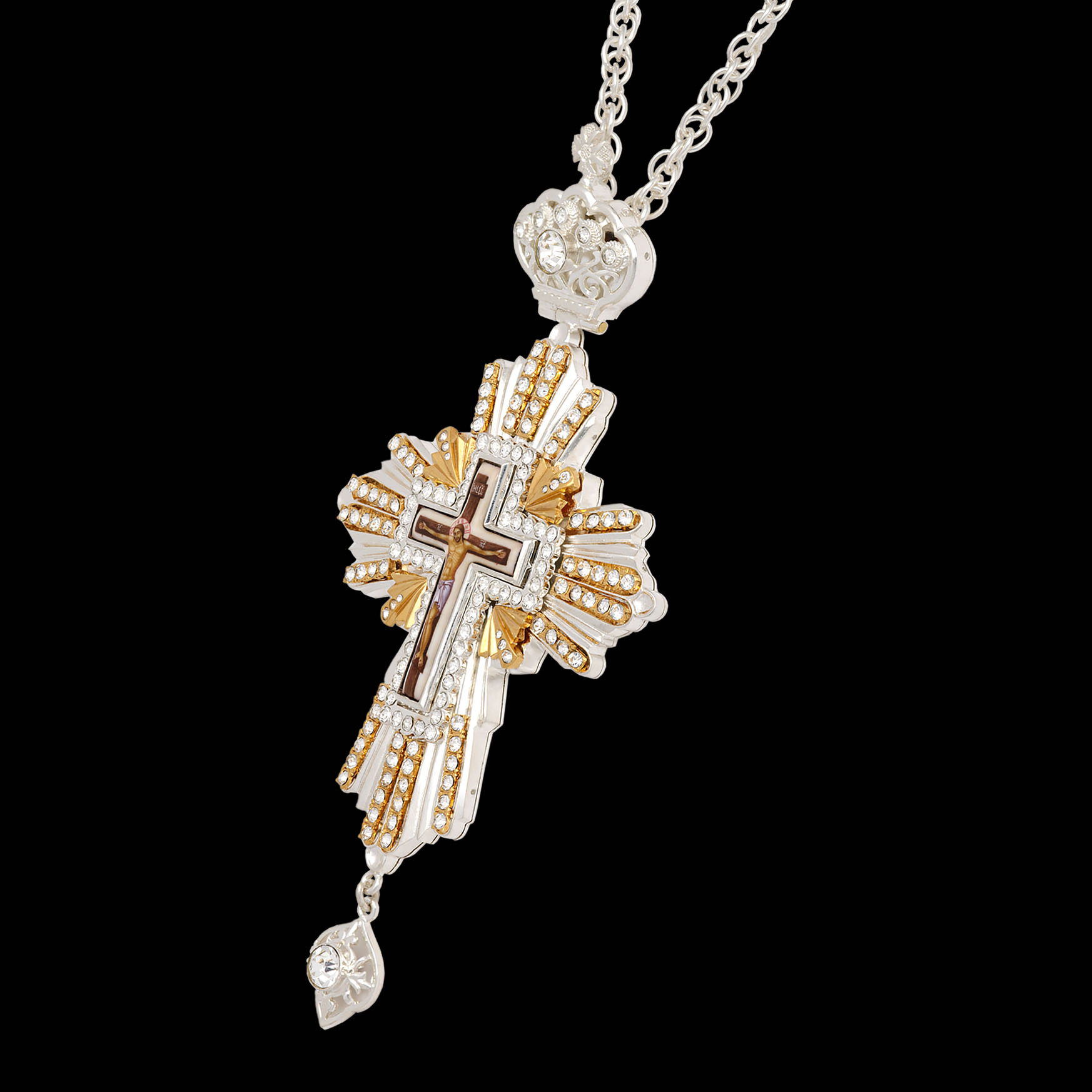 Крест наперсный №92 камни / серебрение, золочение