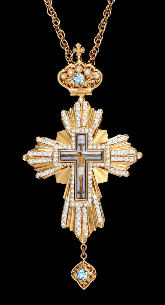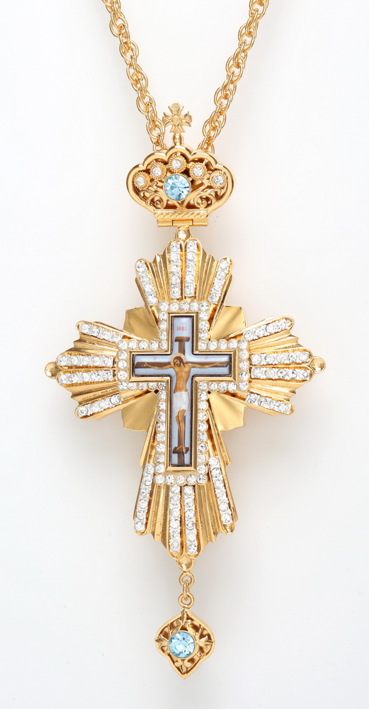 Крест наперсный №92 камни / золочение