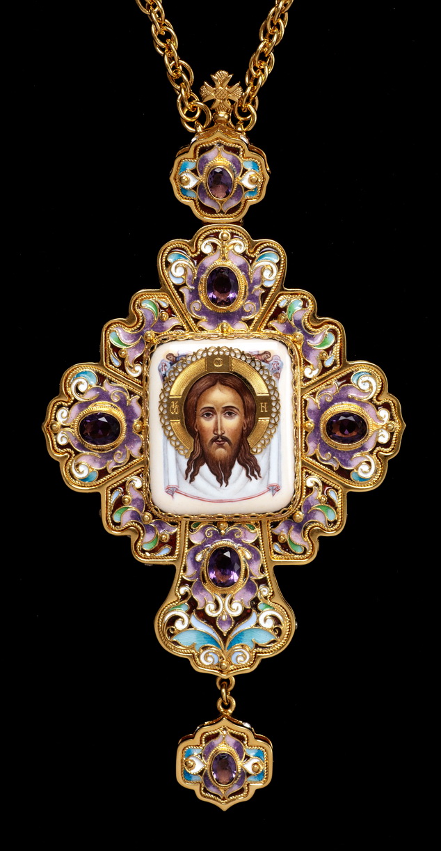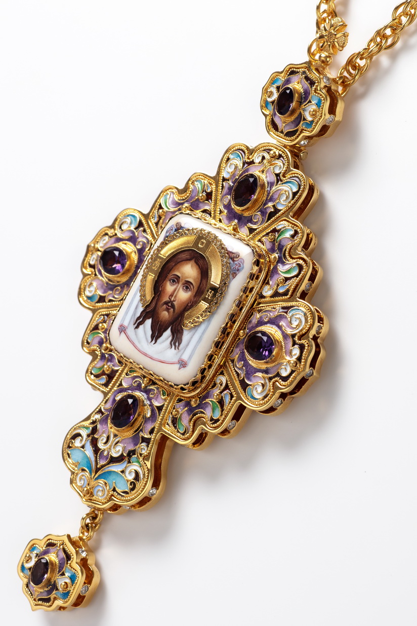 Крест наперсный филигрань №0001 двойной рант финифть, эмаль / золочение