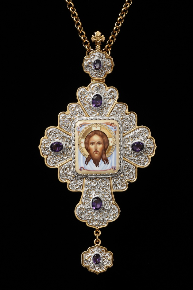 Крест архиерейский филигрань №0001 двойной рант финифть / золочение, серебрение