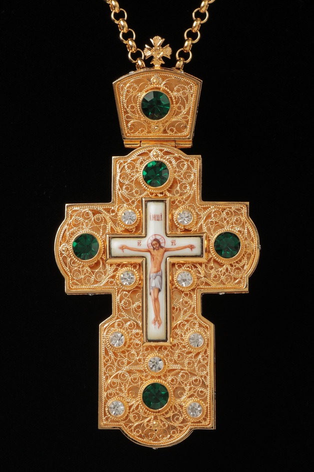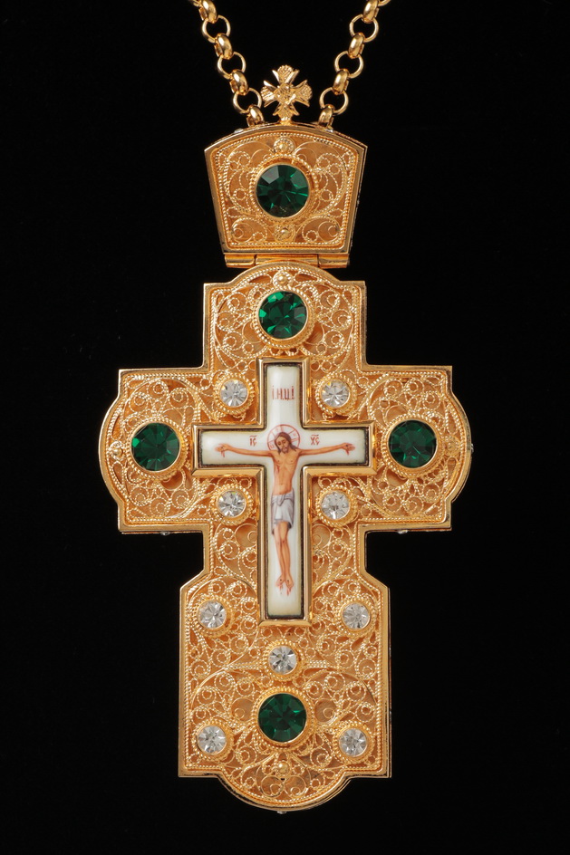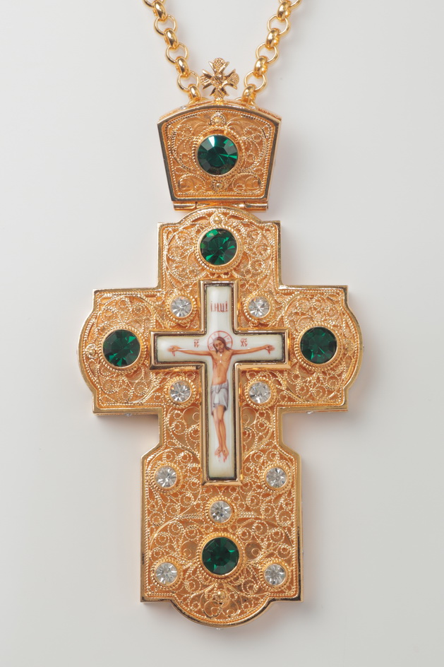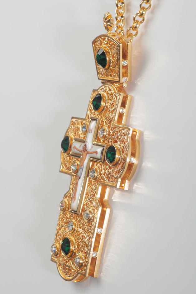 Крест наперсный филигрань №0002 двойной рант финифть / золочение