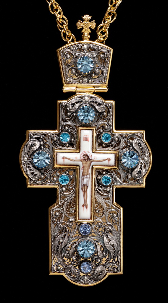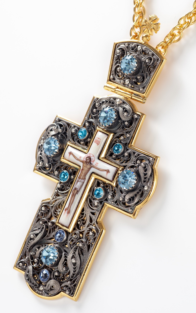 Крест наперсный филигрань №0002 одинарный рант, финифть / золочение, серебрение