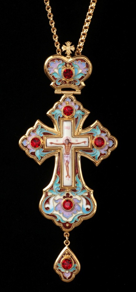 Крест наперсный филигрань №0005 одинарный рант финифть, эмаль / золочение