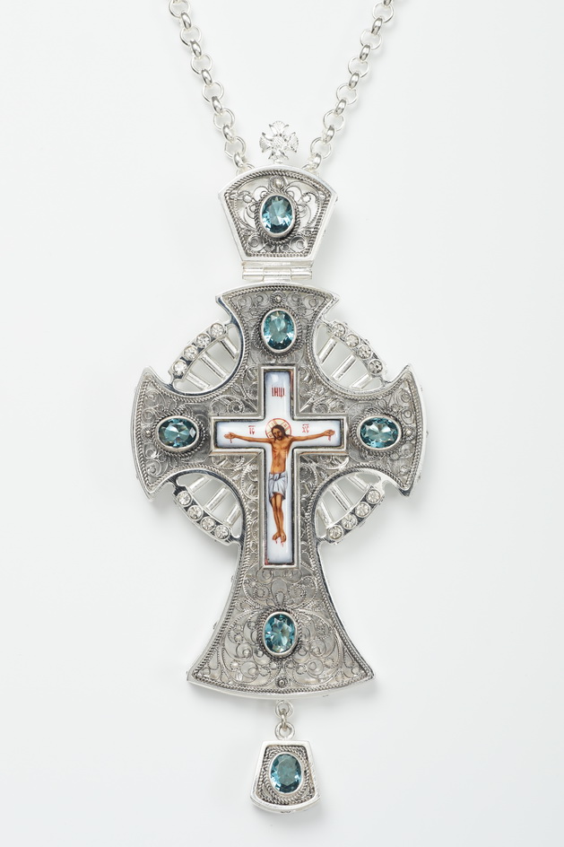 Крест архиерейский филигрань №0007 двойной рант финифть / серебрение