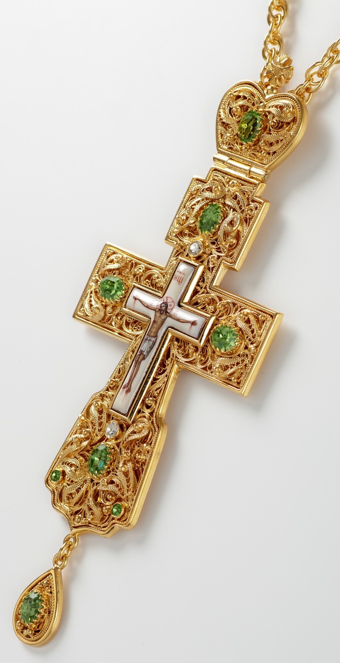 Крест наперсный филигрань №0008 одинарный рант финифть / золочение