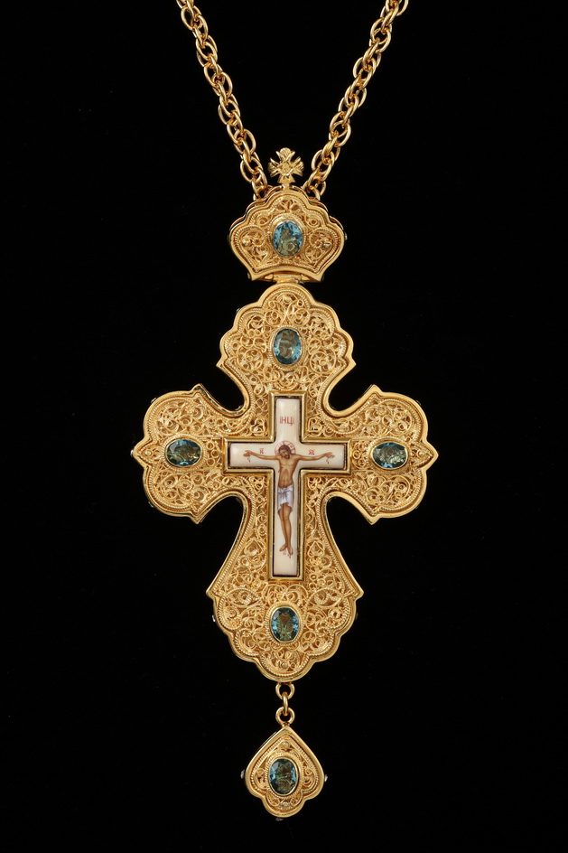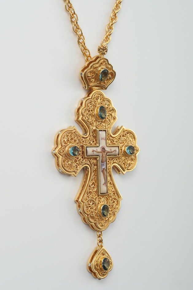 Крест наперсный филигрань №0013 двойной рант финифть / золочение