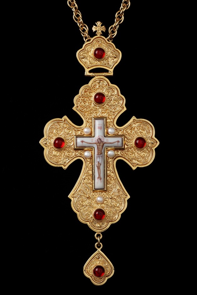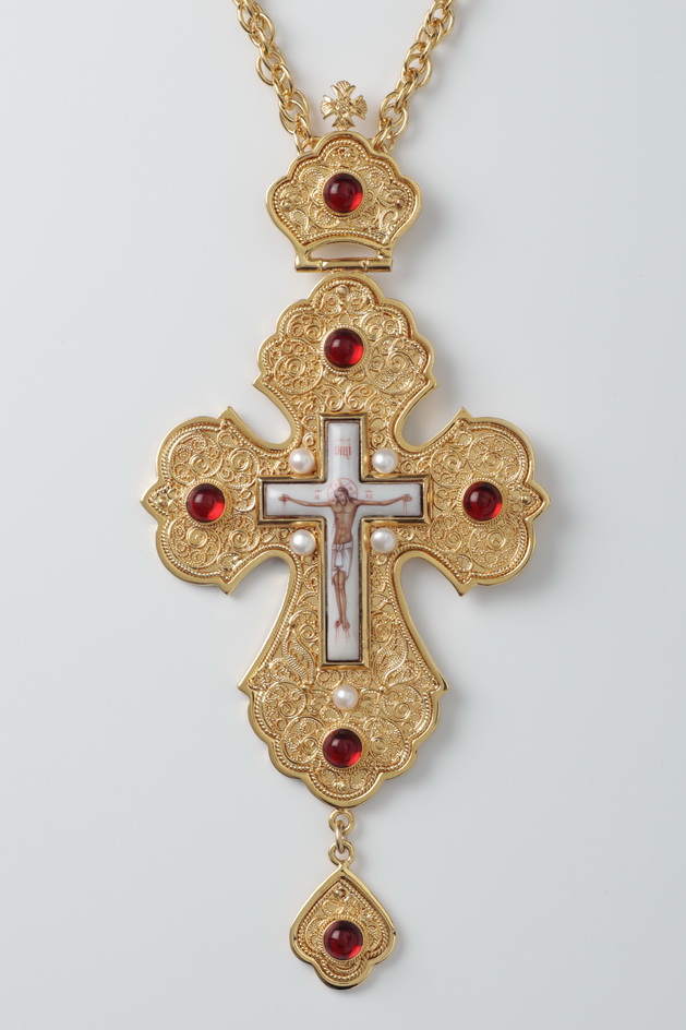 Крест наперсный филигрань №0013 одинарный рант финифть / золочение