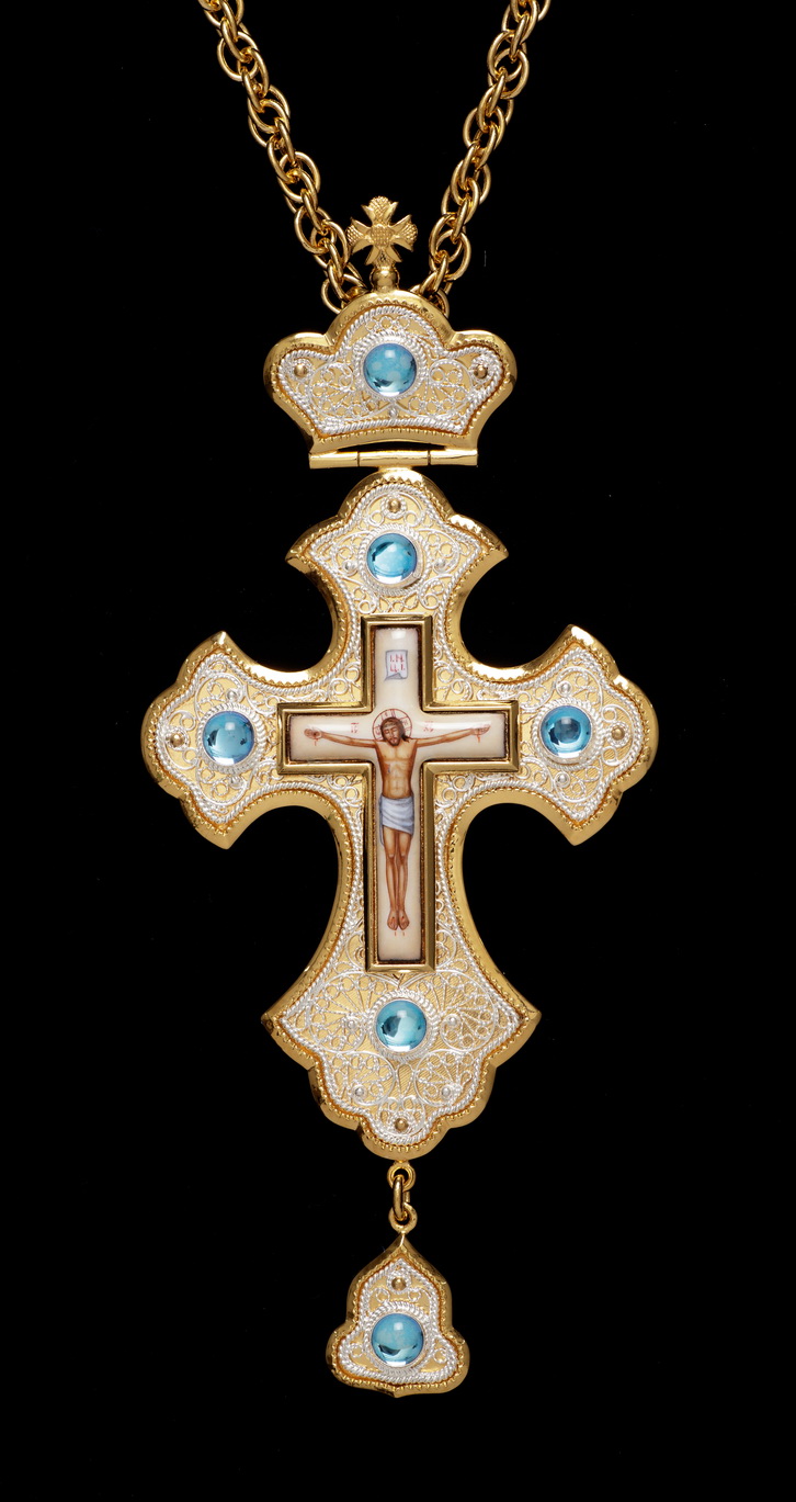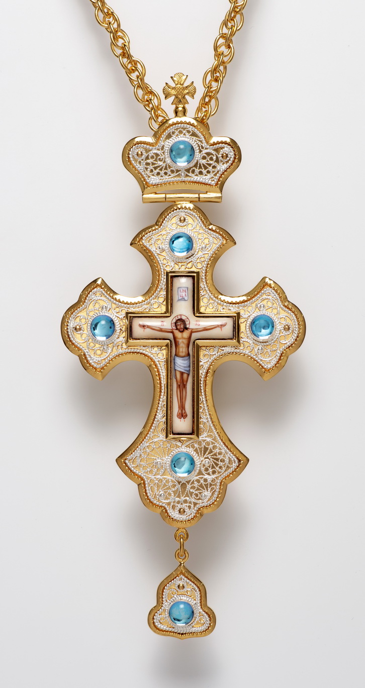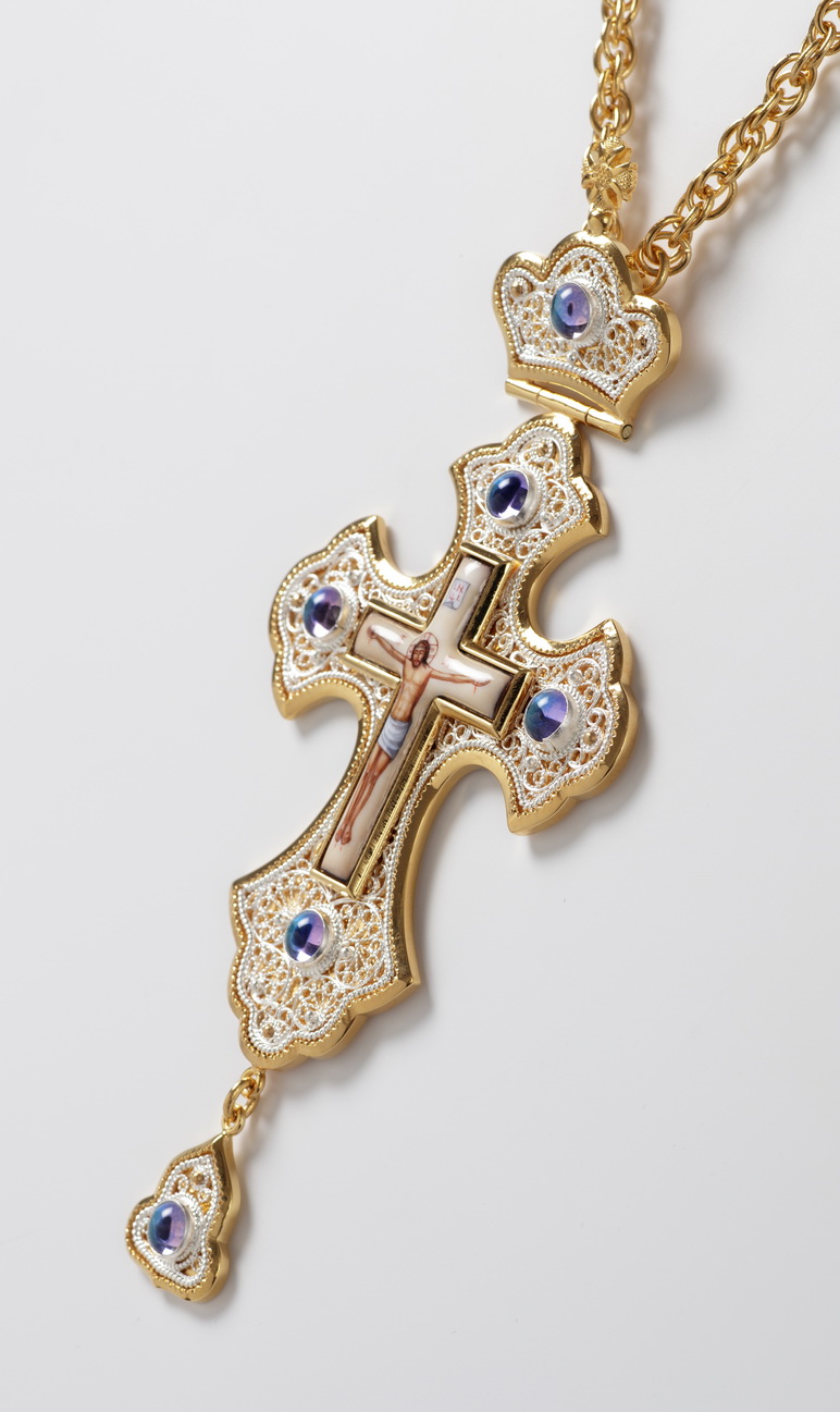 Крест наперсный филигрань №0016 уменьшенный одинарный рант финифть / золочение, серебрение