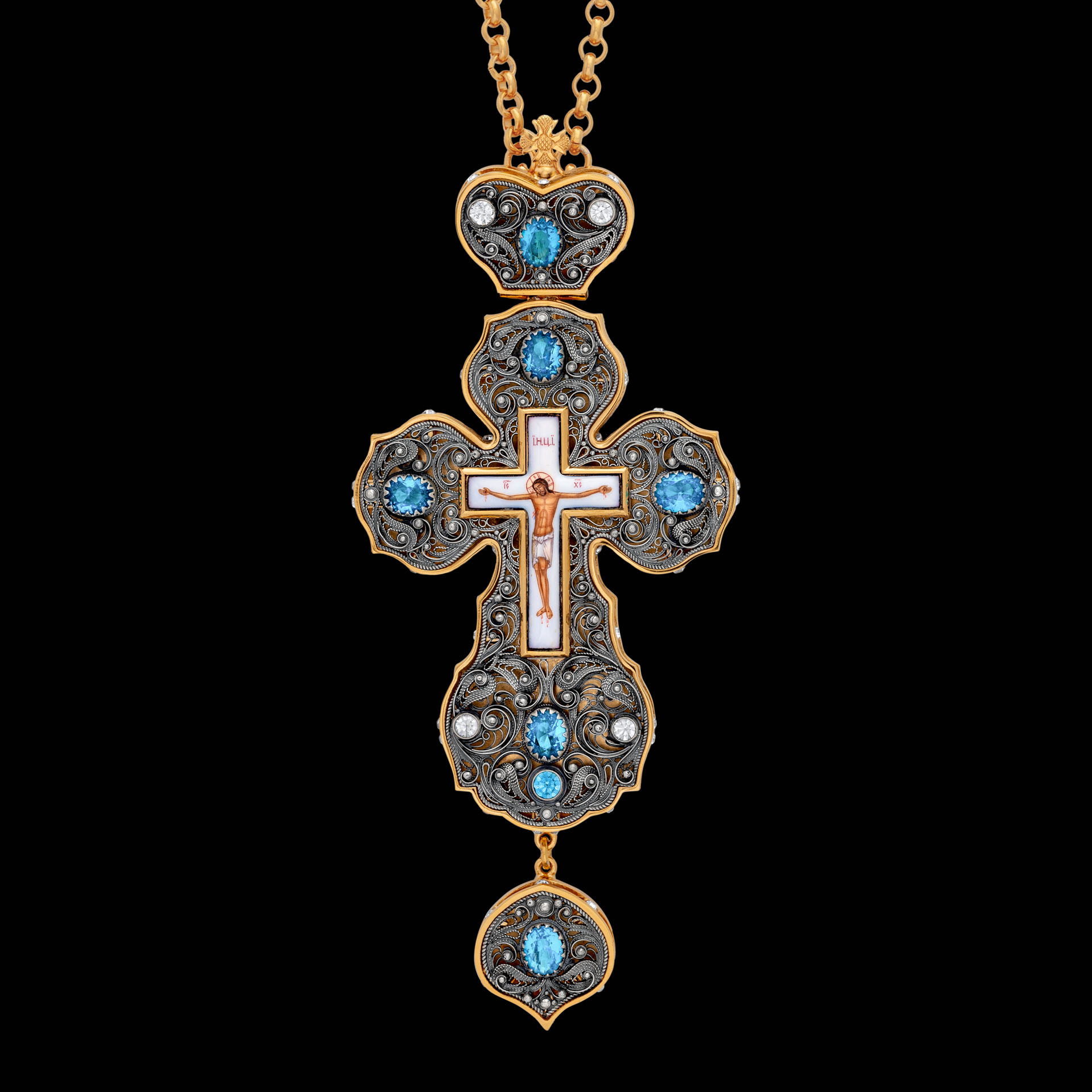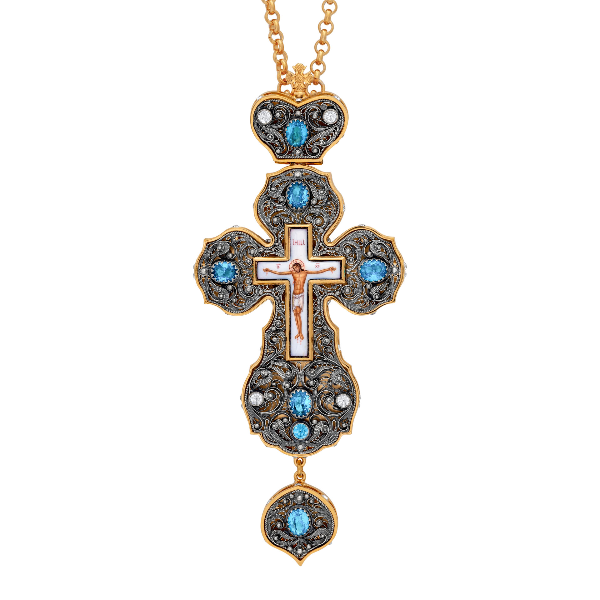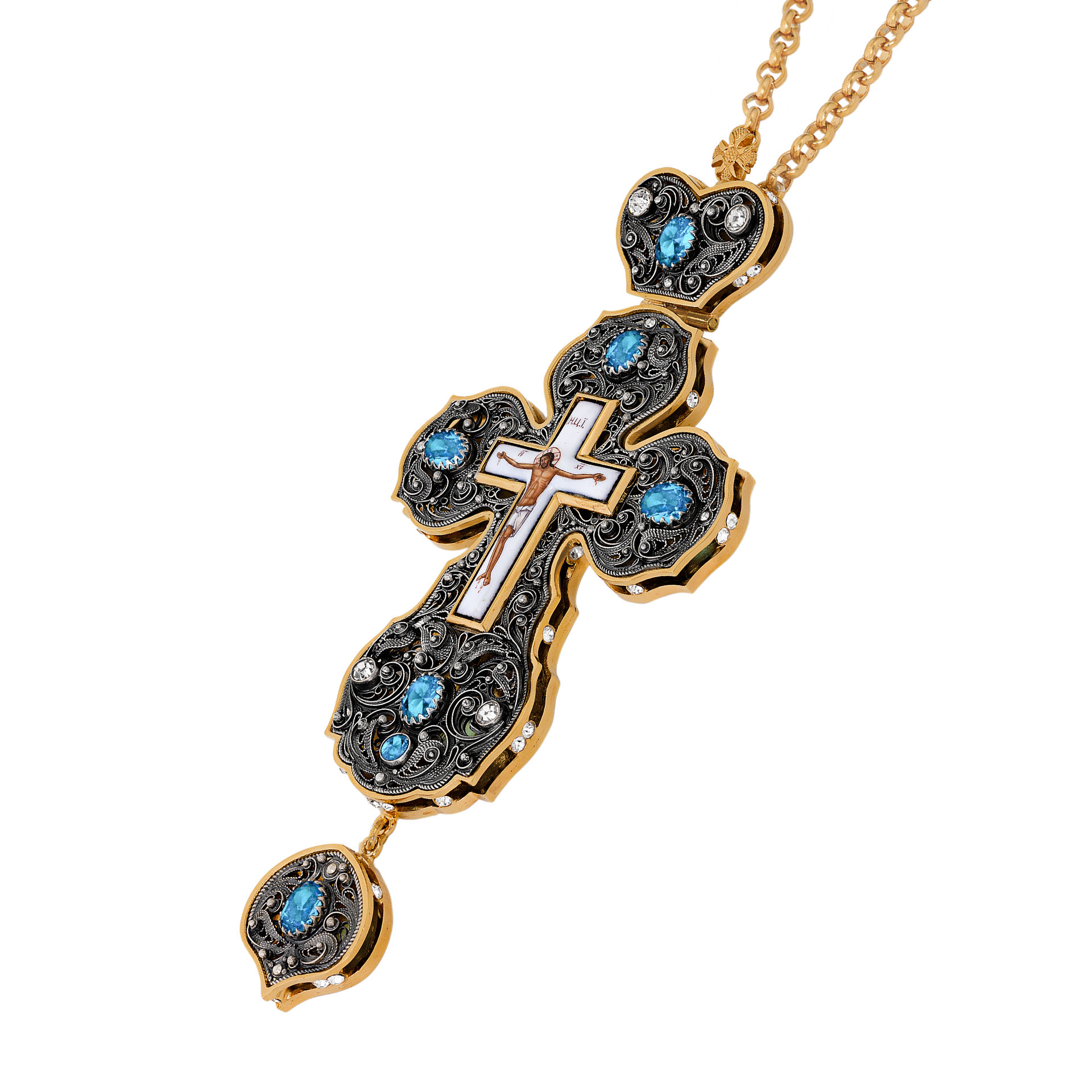 Крест наперсный филигрань №0017 двойной рант финифть / золочение, серебрение