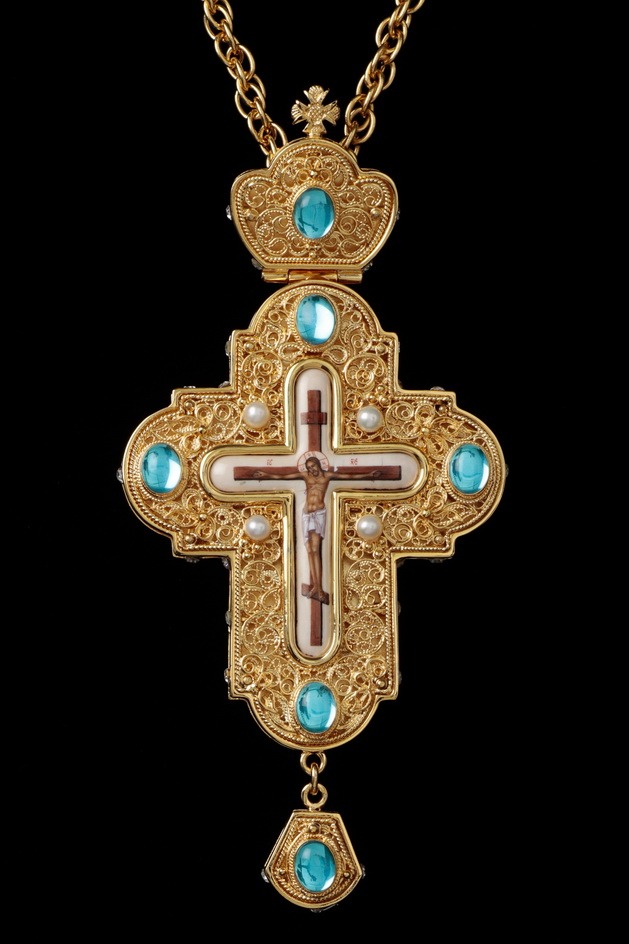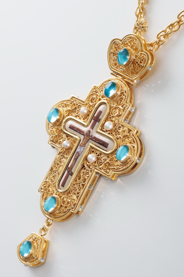 Крест наперсный филигрань №0018 коробка финифть / золочение
