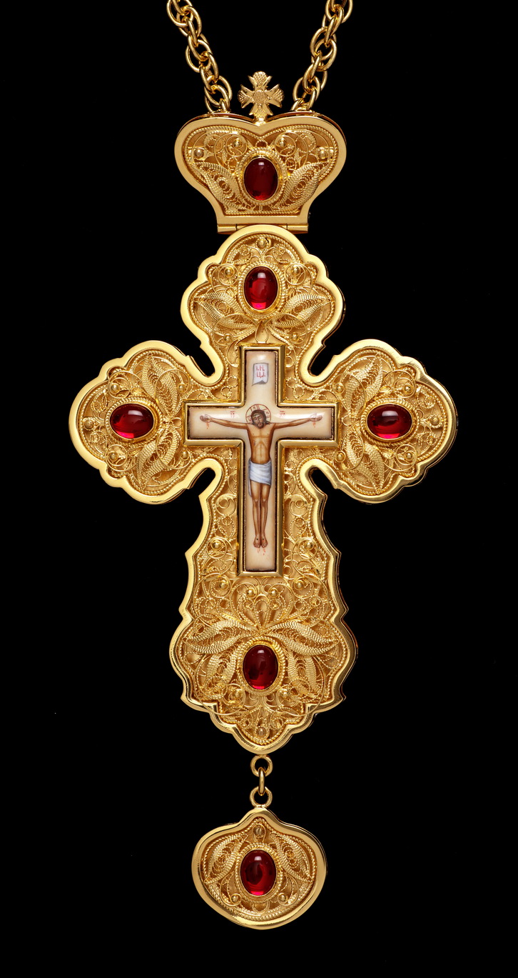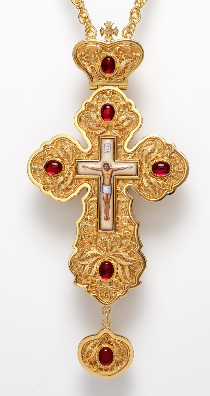 Крест наперсный филигрань №0022 двойной рант финифть / золочение
