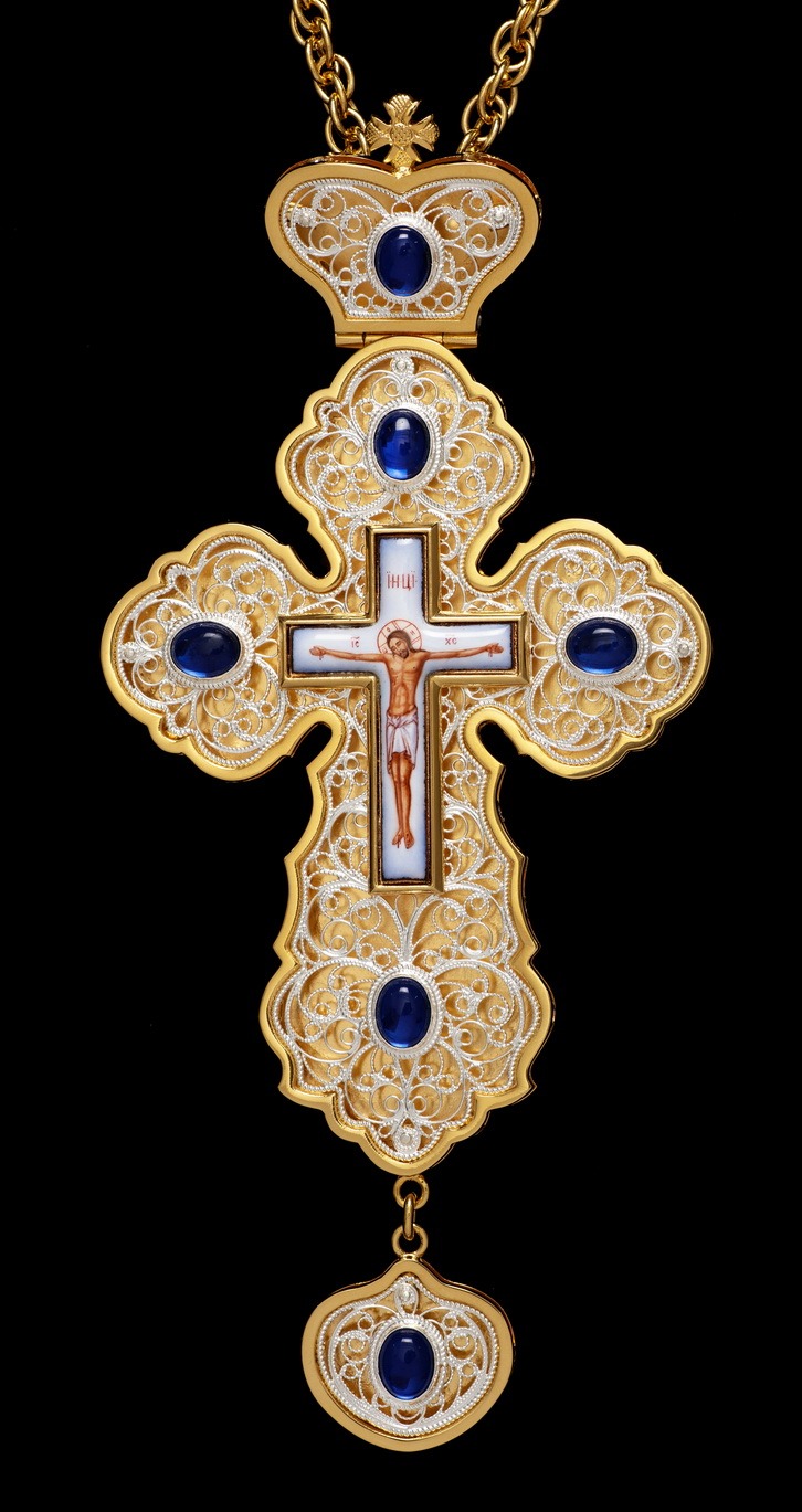 Крест наперсный филигрань №0022 двойной рант финифть / золочение, серебрение