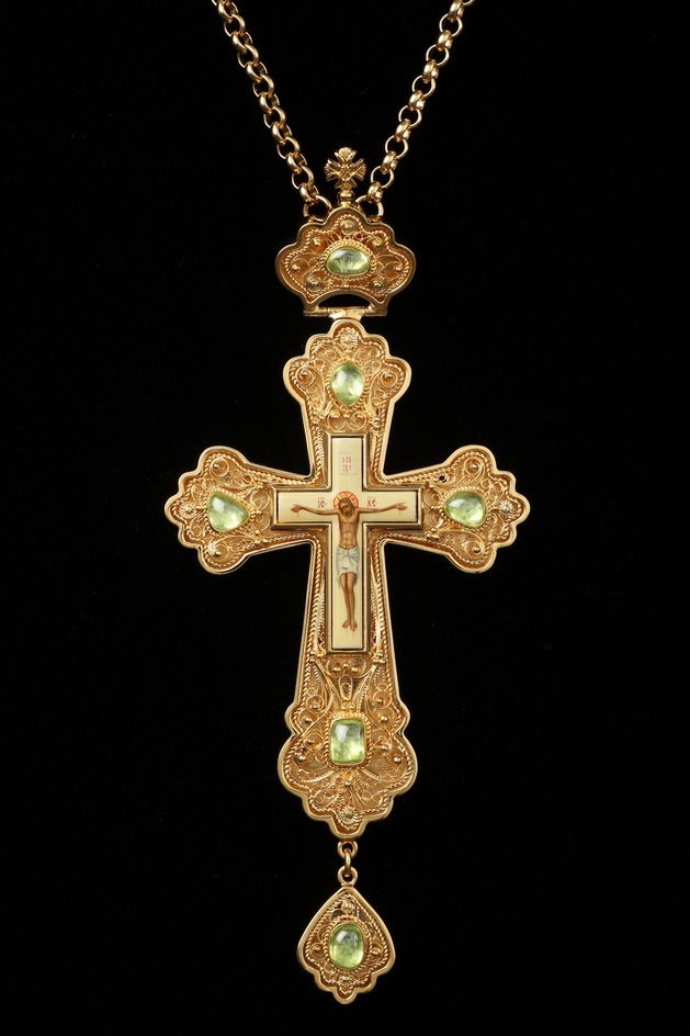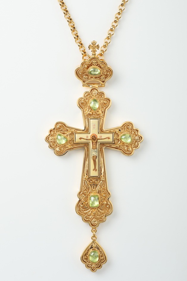 Крест наперсный филигрань №0023 / Фианиты коробка, живопись / золочение
