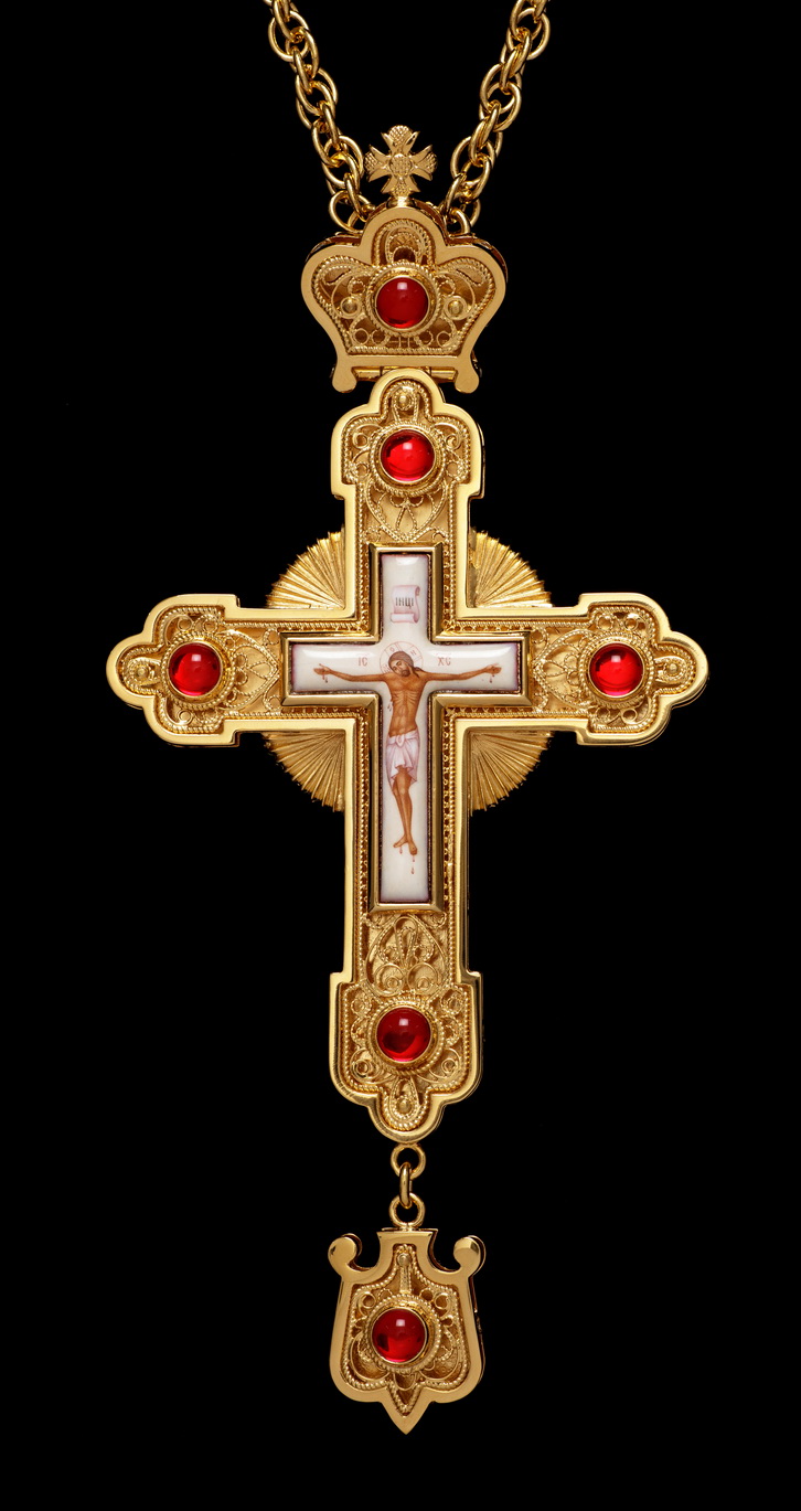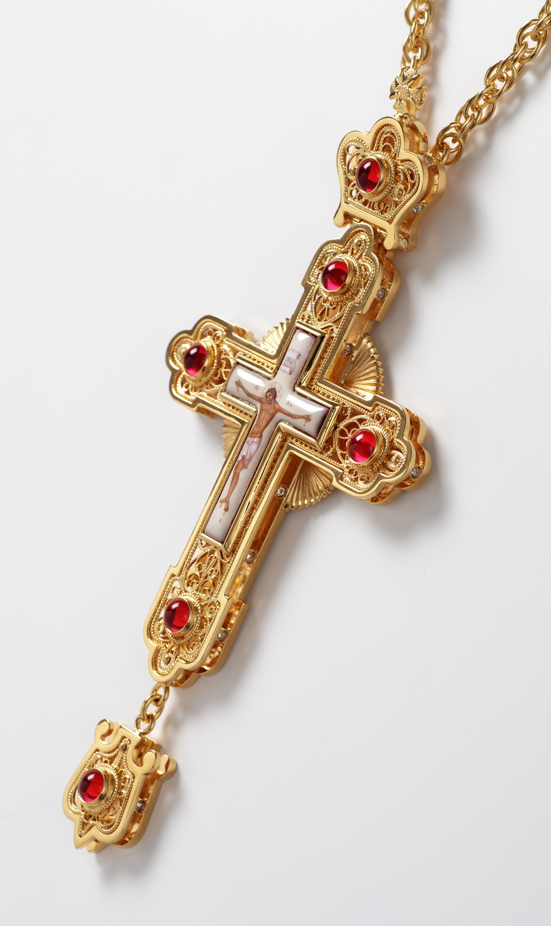 Крест наперсный филигрань №0025 трифоновский двойной рант, финифть / золочение