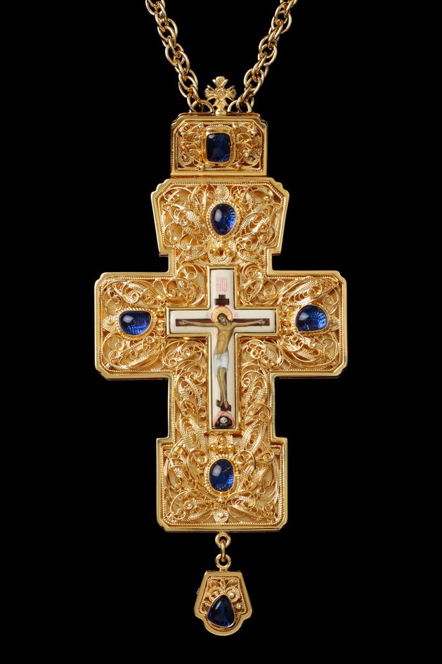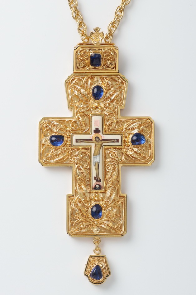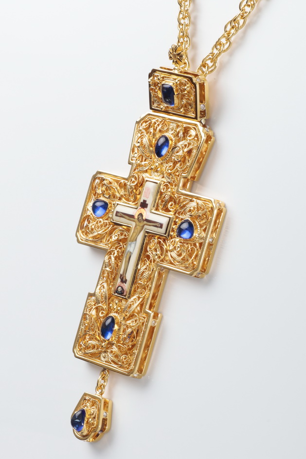 Крест наперсный филигрань №0026 / Фианиты двойной рант живопись / золочение