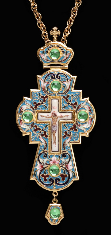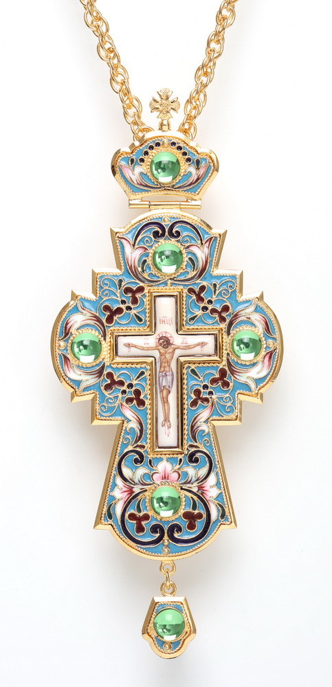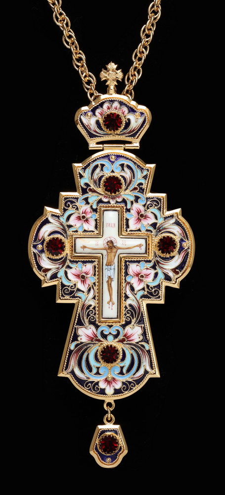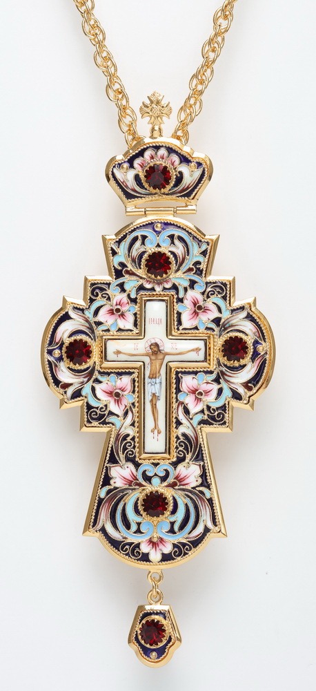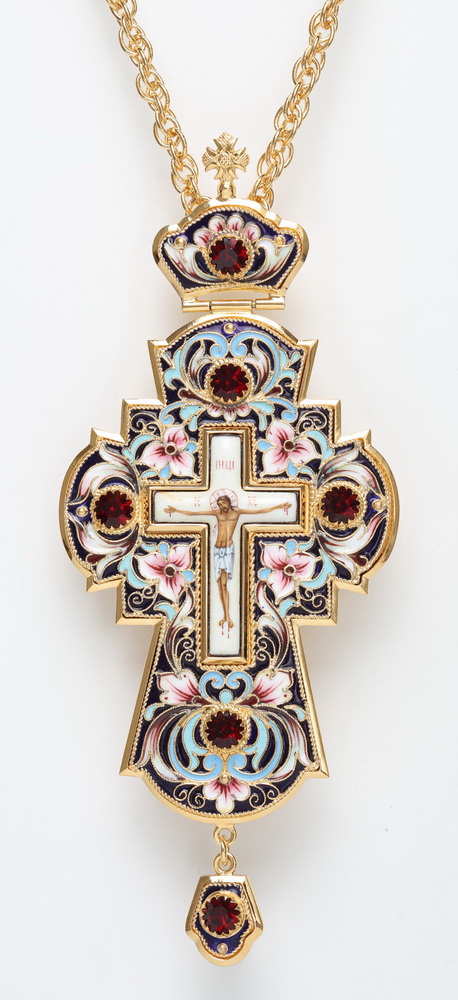 Крест наперсный филигрань №0027 одинарный рант, узор, финифть, роспись / золочение