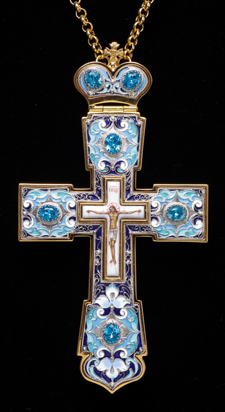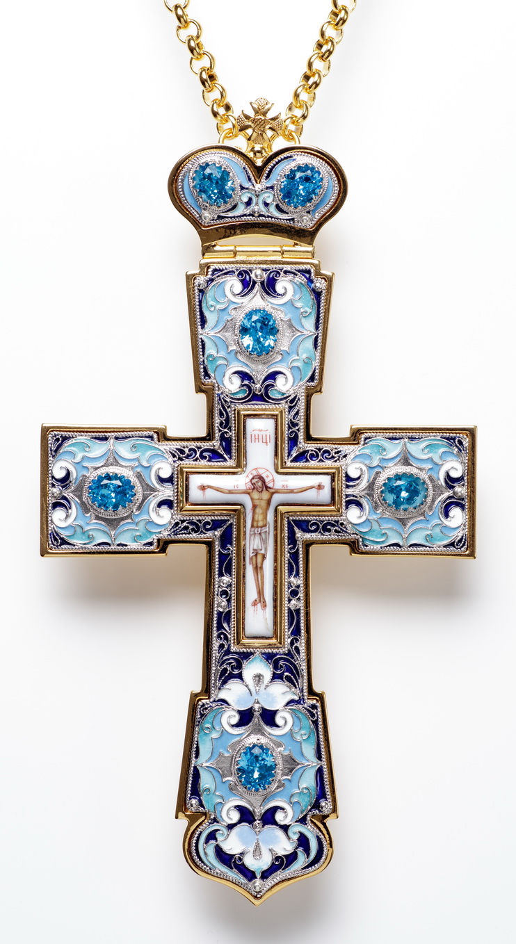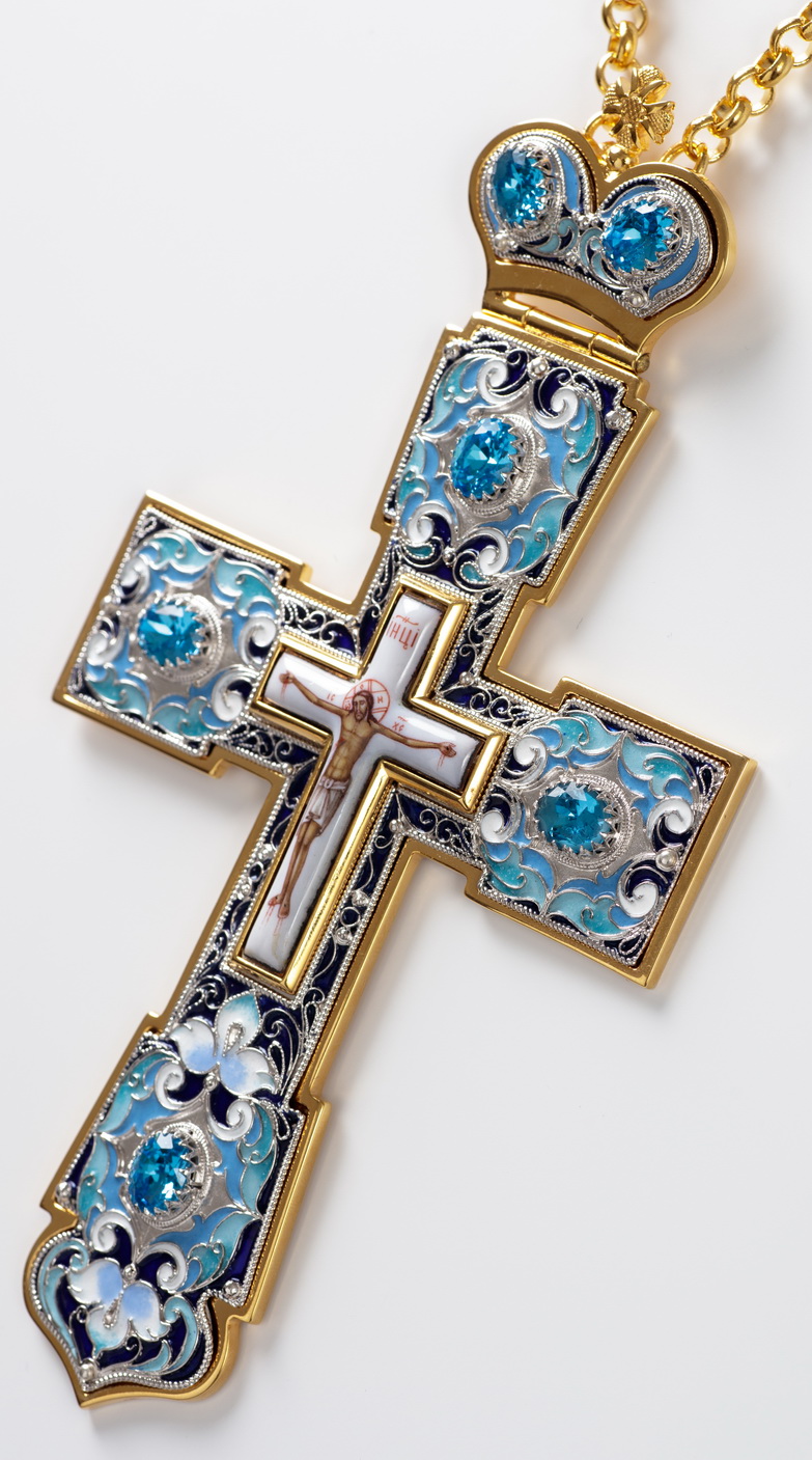 Крест наперсный филигрань №0028 одинарный рант финифть, эмаль / золочение, серебрение